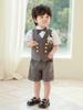 Chaleco de traje para niño Traje de manga corta Verano Estilo británico Vestido de actuación Cumpleaños del bebé Vestido de un año Niño de las flores