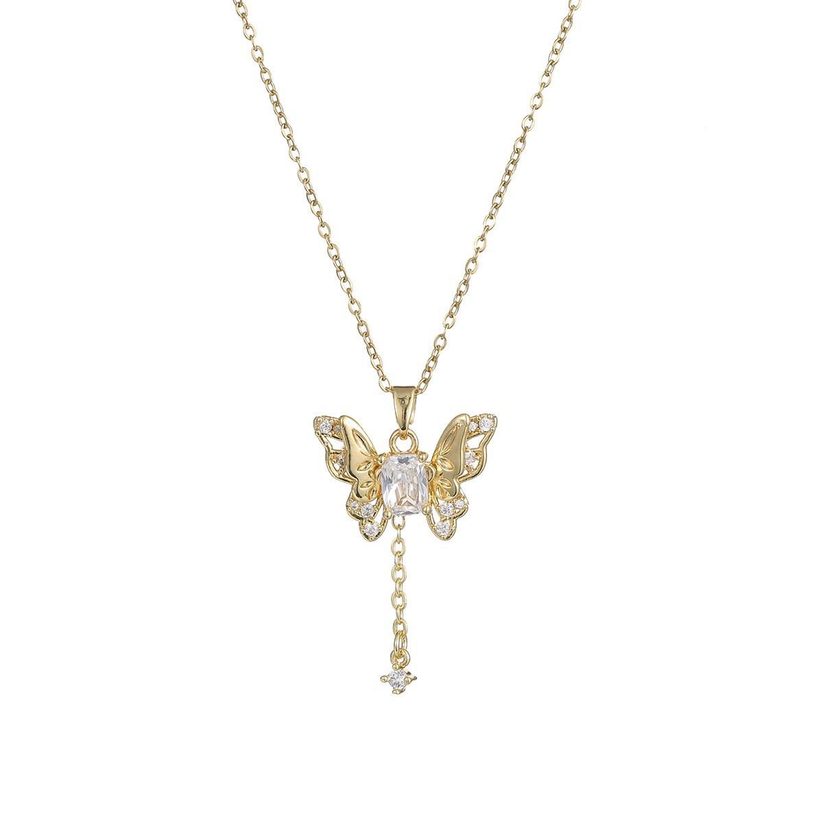 Collar para Mujer Moda Transfronteriza Flor Amor Mariposa Colgante Personalizado Simple Versátil Collar Joyería Venta al por Mayor
