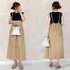 071206 Verano Nuevo Estilo Dama Elegante Estilo Preppy Chica Diseño de Cincha con Cordón Contrastante Look Adelgazante Falda Plisada