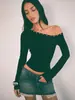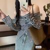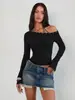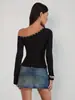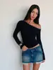 Y2K Hot Girl Remache Pedrería Sexy Asimétrica Manga Larga Camiseta para Mujer Primavera Estilo Ins Fruncido Cintura Adelgazante Top