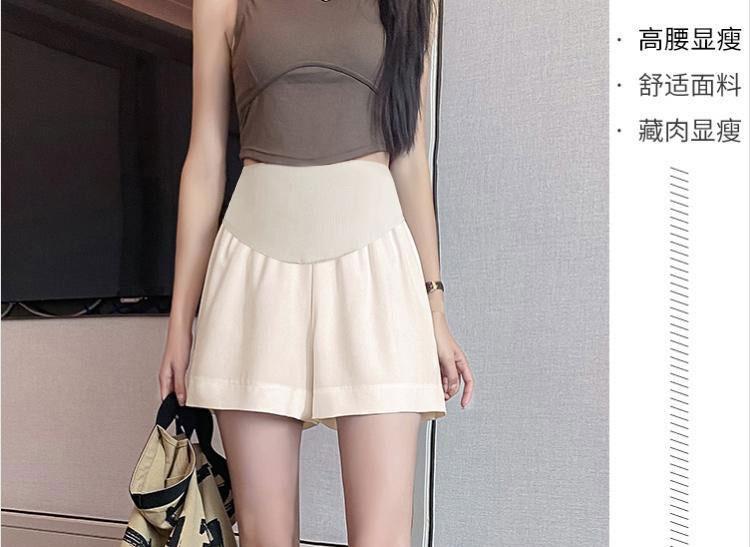 Shorts de Maternidad para Verano para Ropa Exterior, Traje Delgado Casual de Verano con Soporte para el Vientre de Chifón, Shorts de Tres Puntos de Pierna Ancha, Pantalones de Seguridad