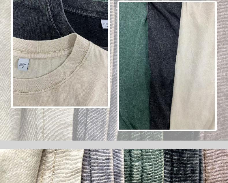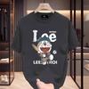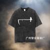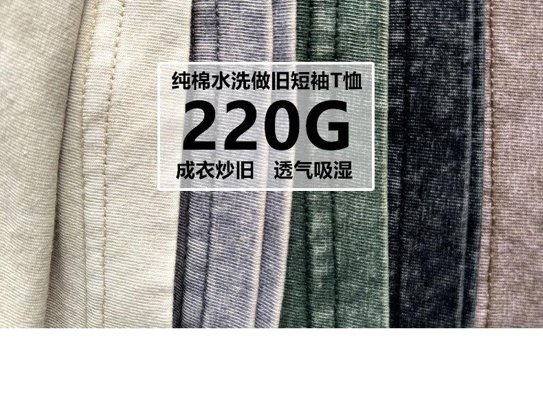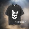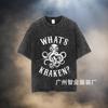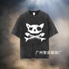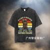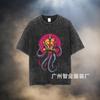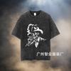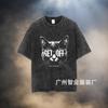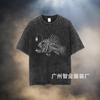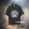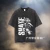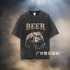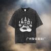 220g 2025 Exportación Transfronteriza Nueva Camiseta Retro Lavada para Hombre Patrón de Estampado de Oso del Bosque Manga Corta a la Moda