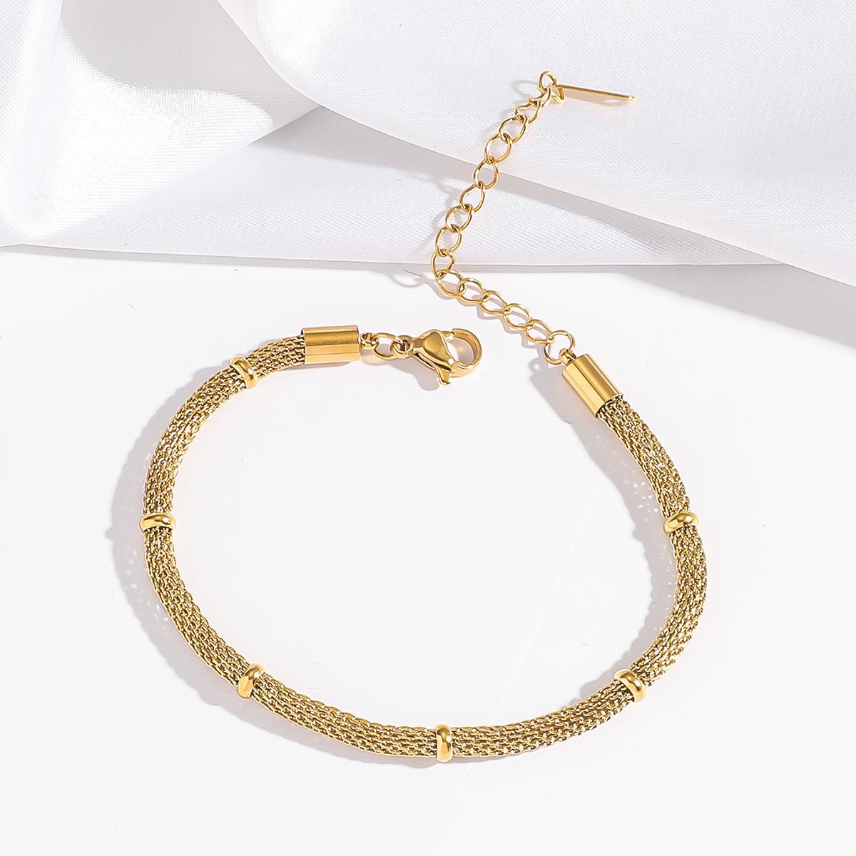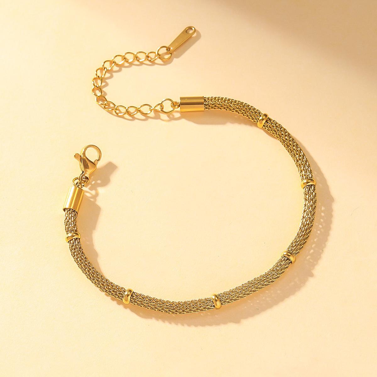 Pulsera para Mujer Transfronteriza Moda Europea y Americana Nicho Pulsera Simple Malla Metálica Redonda Cadena Elegante Joyería Vintage