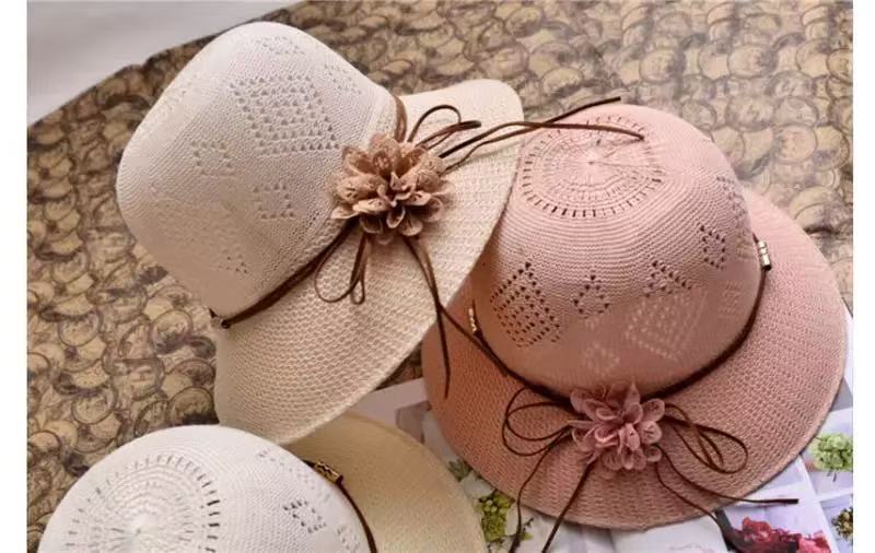Sombrero de Mujer Protección Solar Sombrero de Sol Verano 2025 Moda Versátil Sombrero de Paja Ala Grande Exterior Puesto Punto Escénico Sol