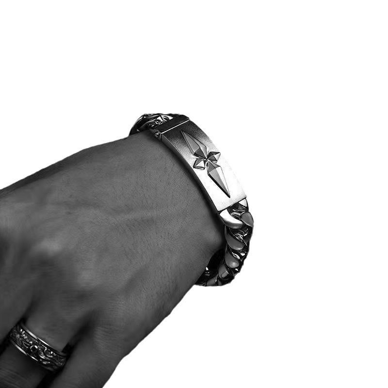 Brazalete Cubano de Niebla Lin para Hombre Sencillo Versátil Personalidad Brazalete Dominante Diseño Nicho Grueso Pesado Explosiones Transfronterizas
