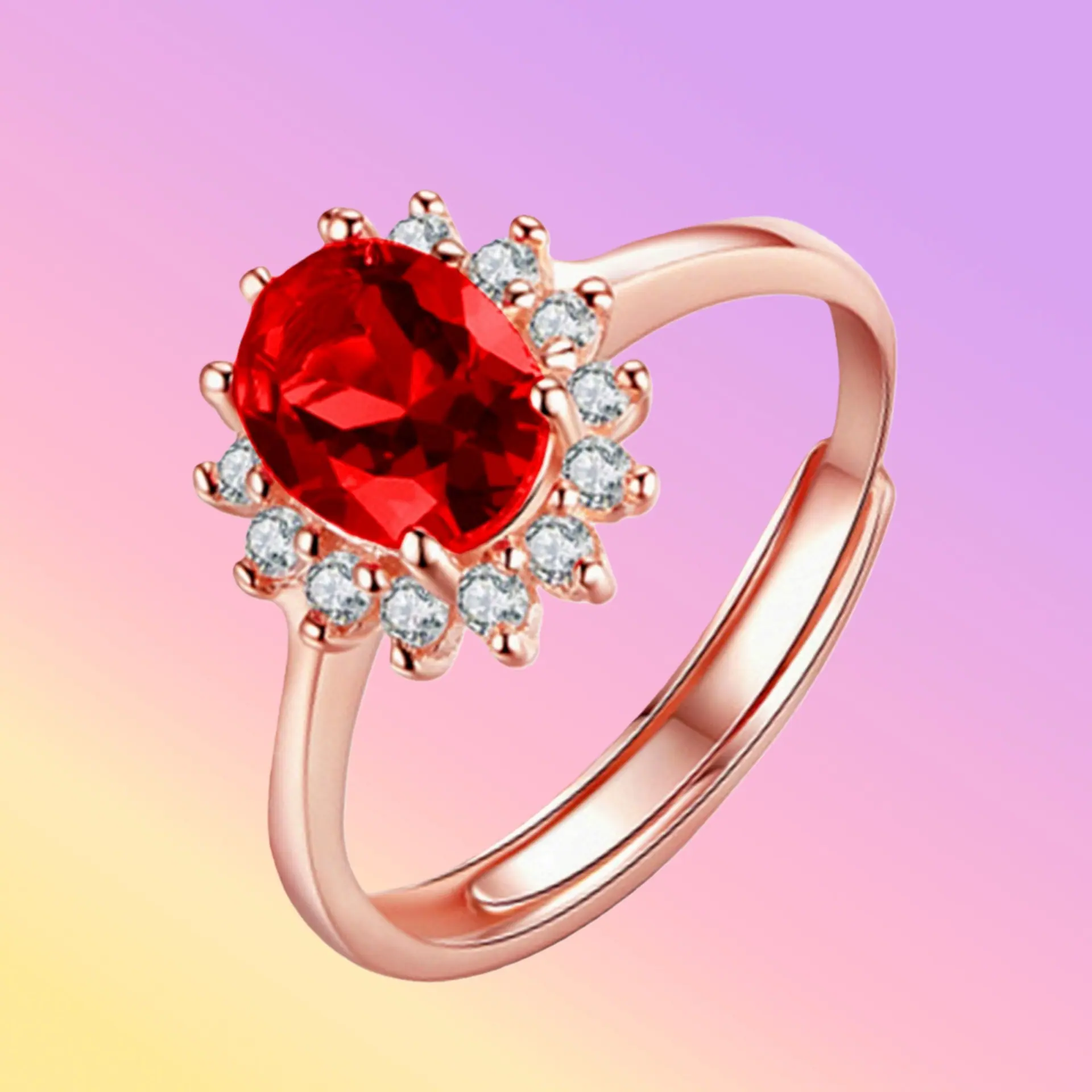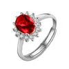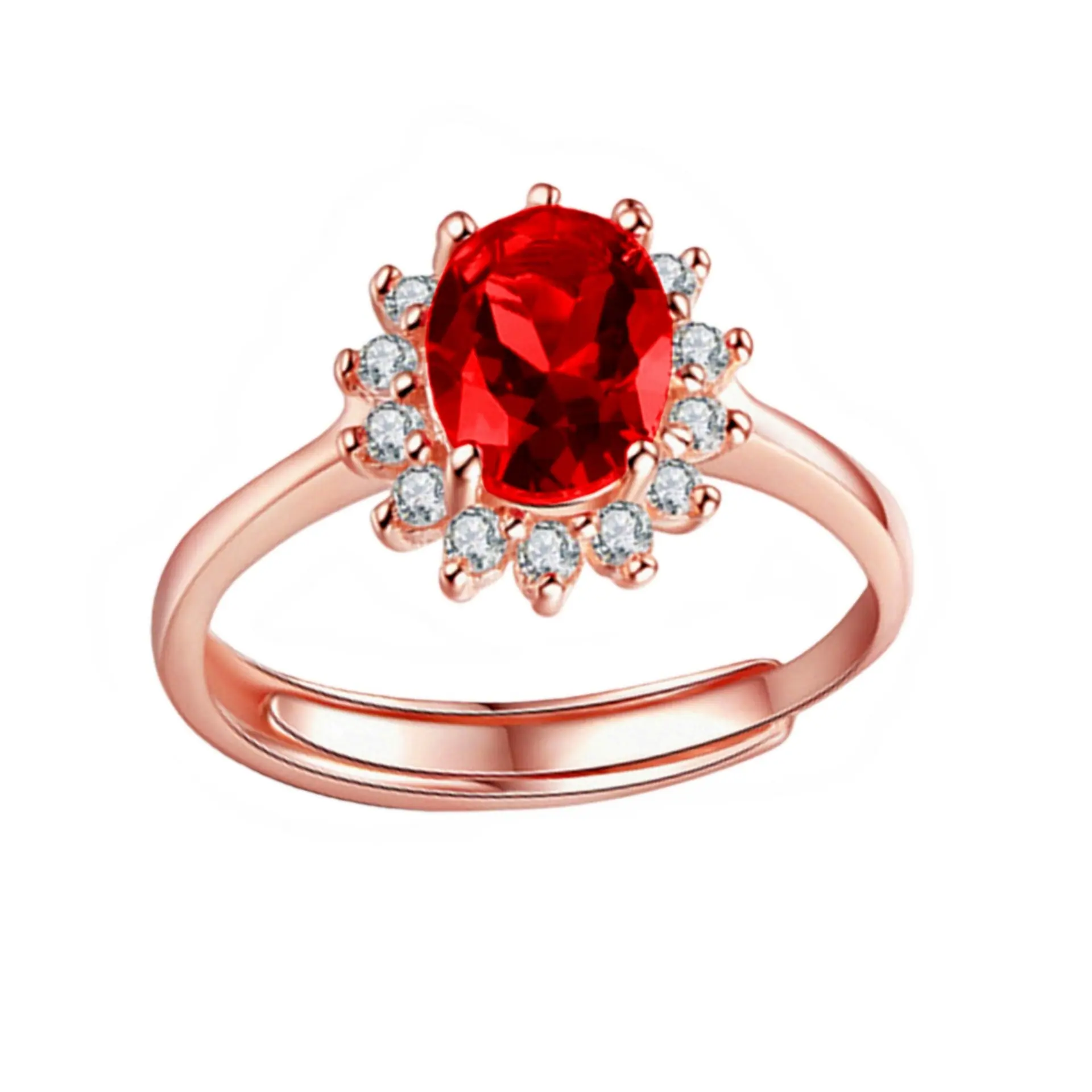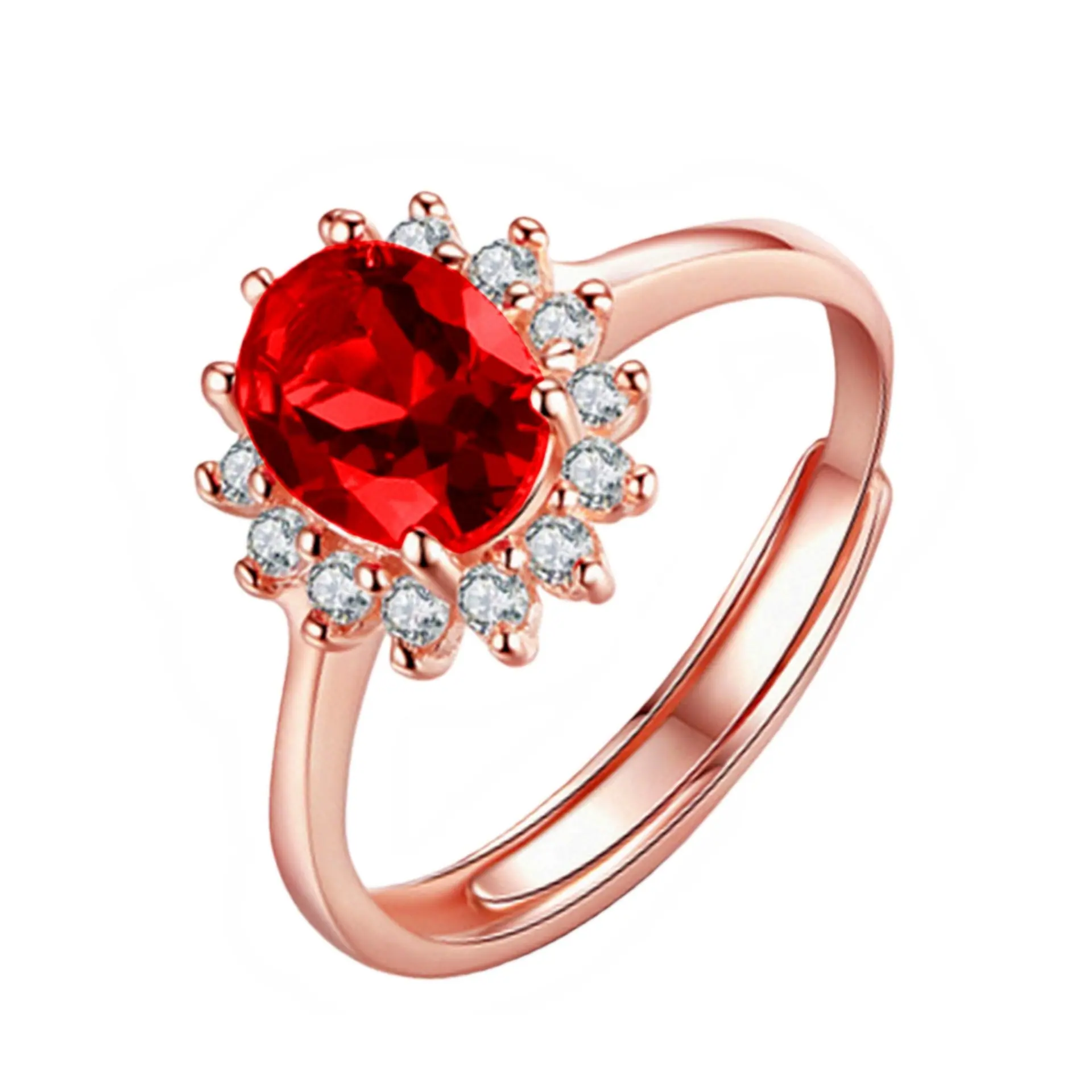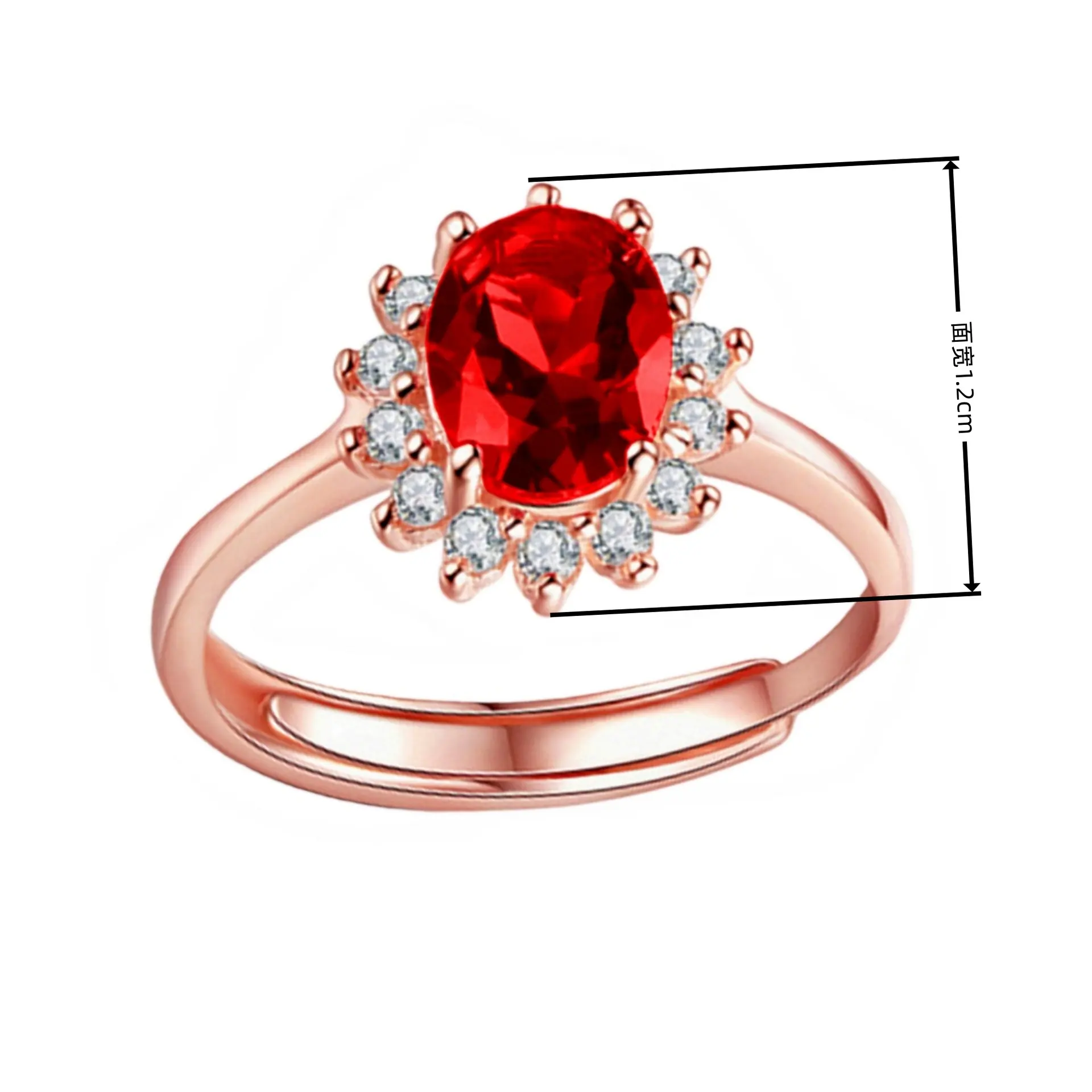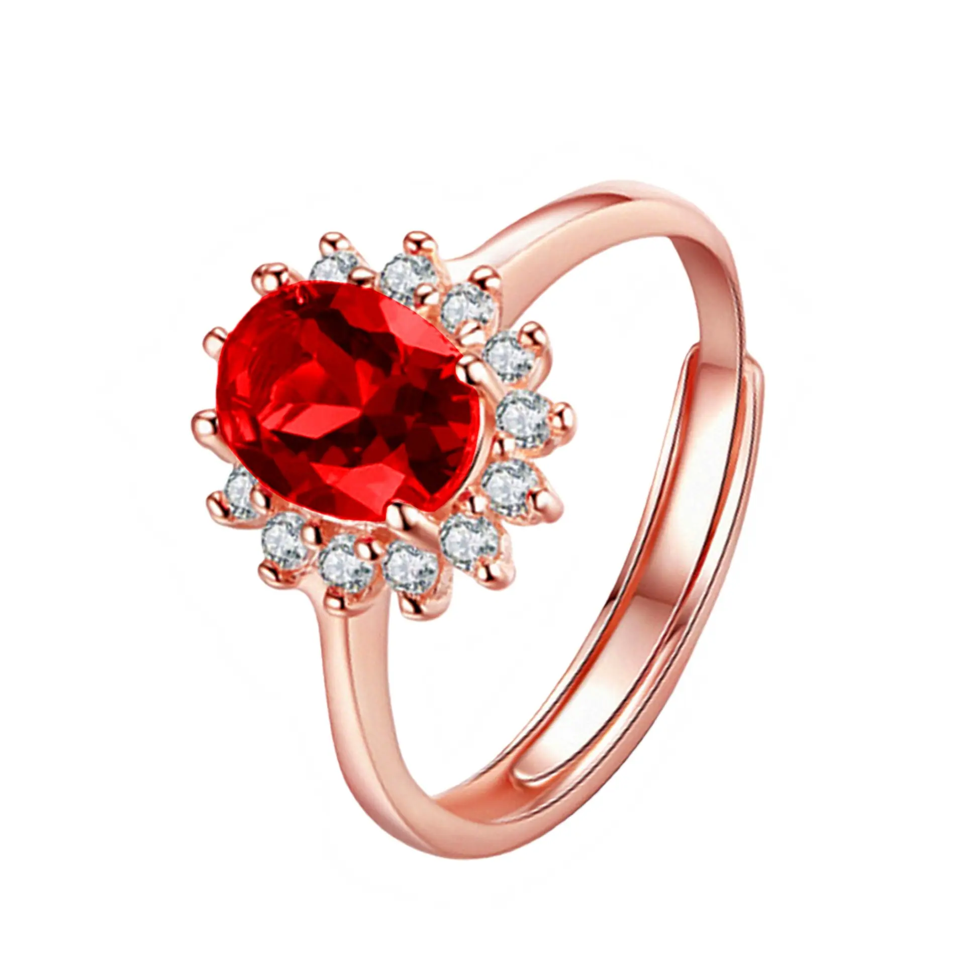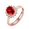 Anillo de Girasol Floreciente Estilo Coreano para Pareja, Anillo Abierto para el Dedo Índice, Estilo Europeo y Americano, Chapado en Oro Rosa, Anillo de Diamante Rojo al por Mayor
