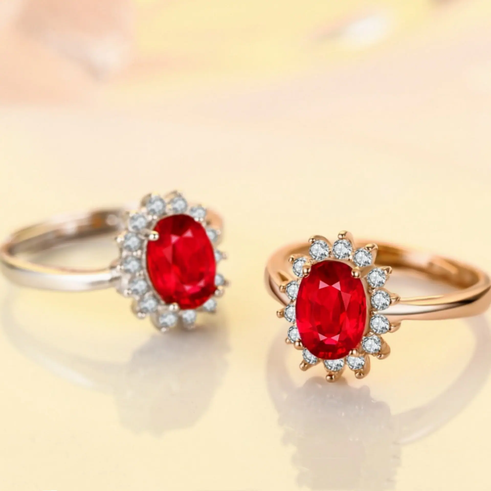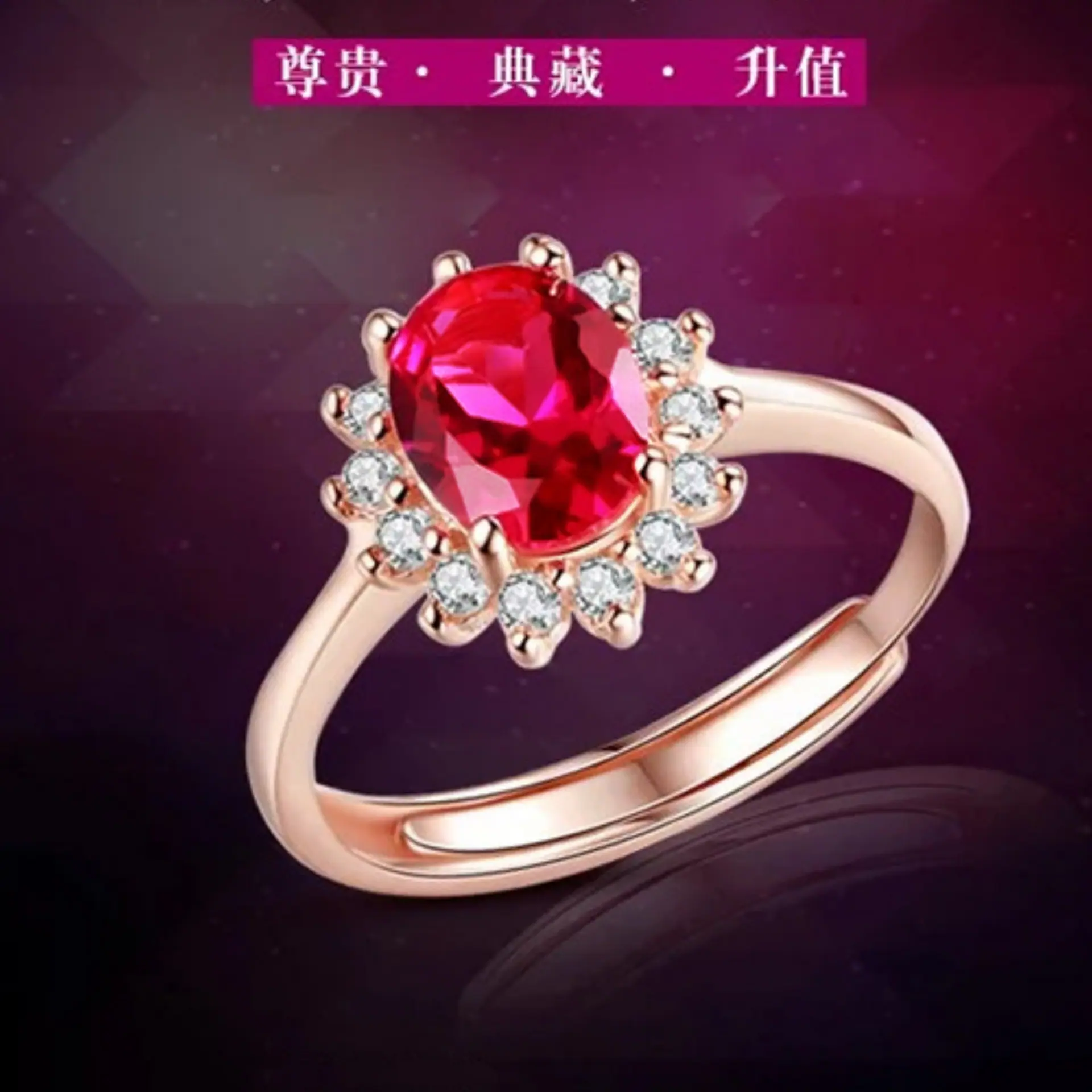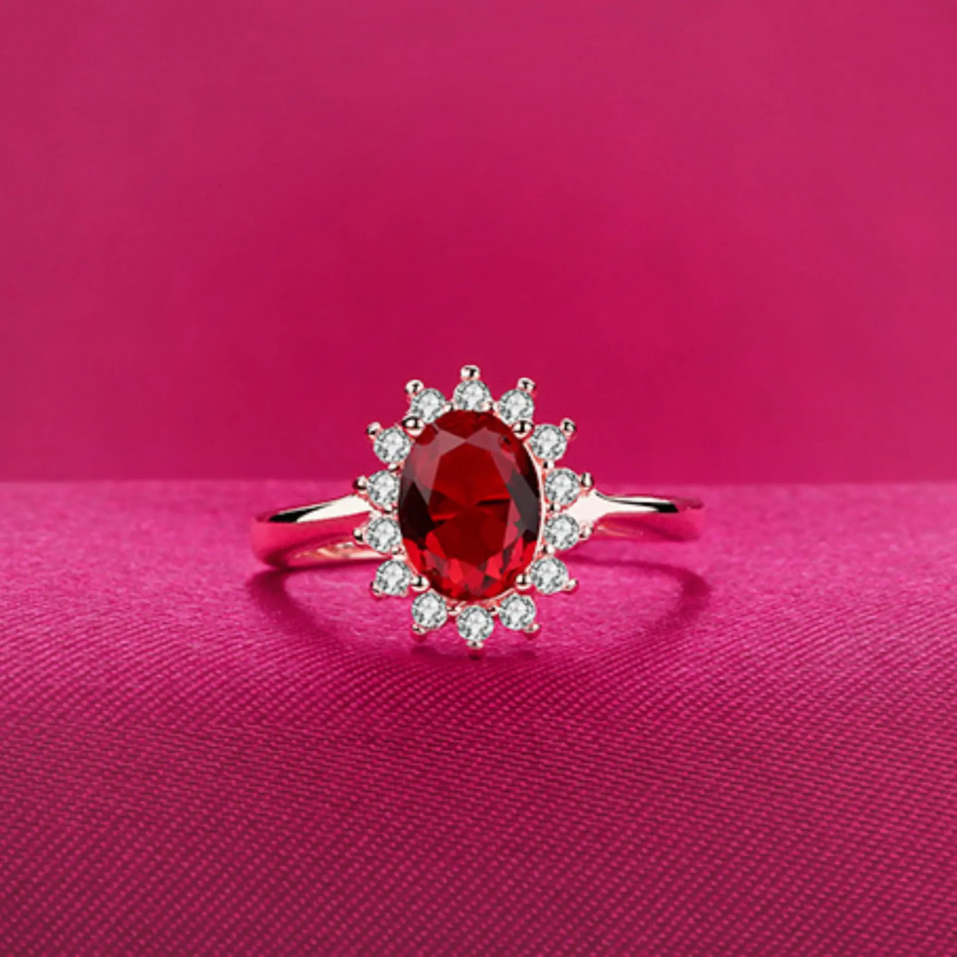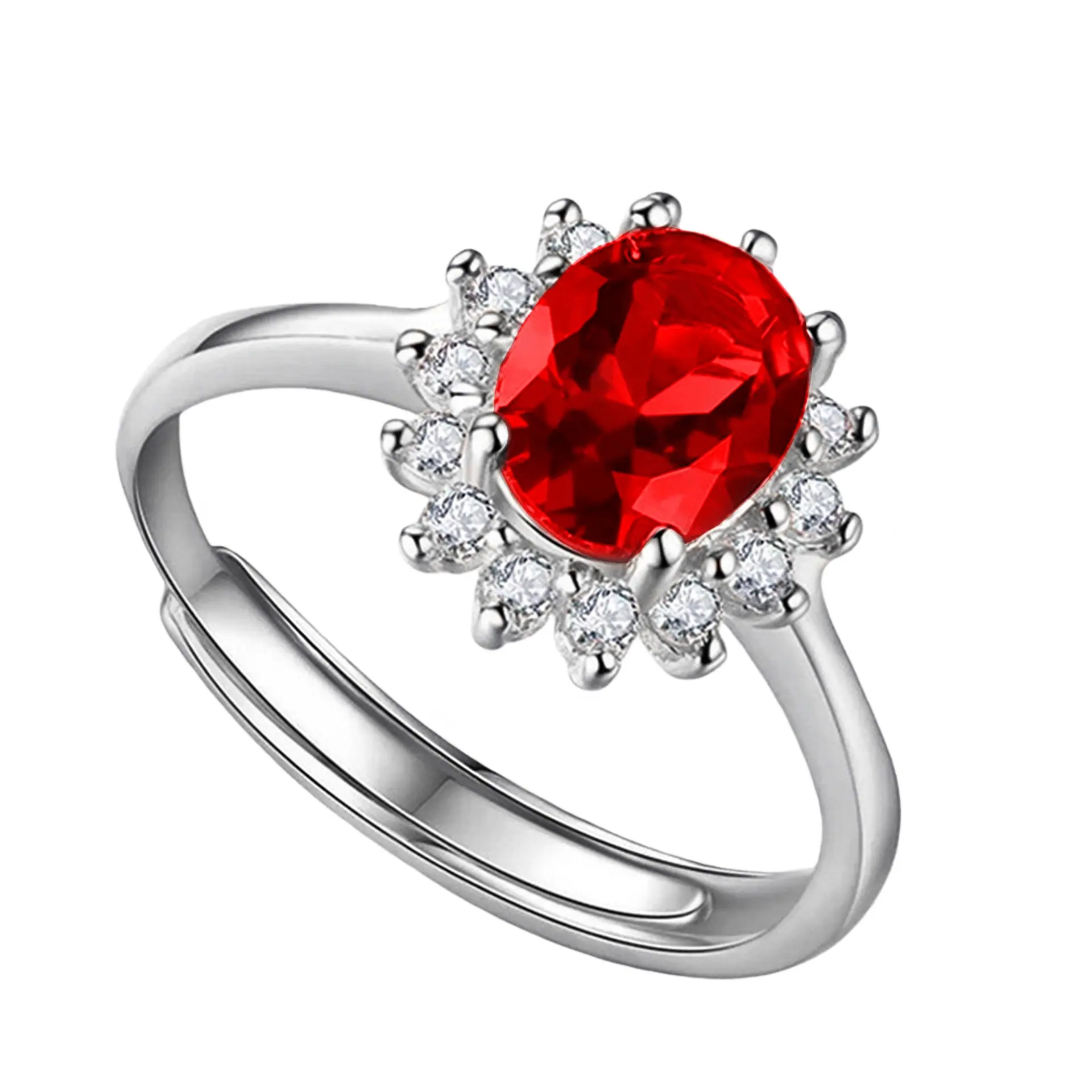 Anillo de Girasol Floreciente Estilo Coreano para Pareja, Anillo Abierto para el Dedo Índice, Estilo Europeo y Americano, Chapado en Oro Rosa, Anillo de Diamante Rojo al por Mayor