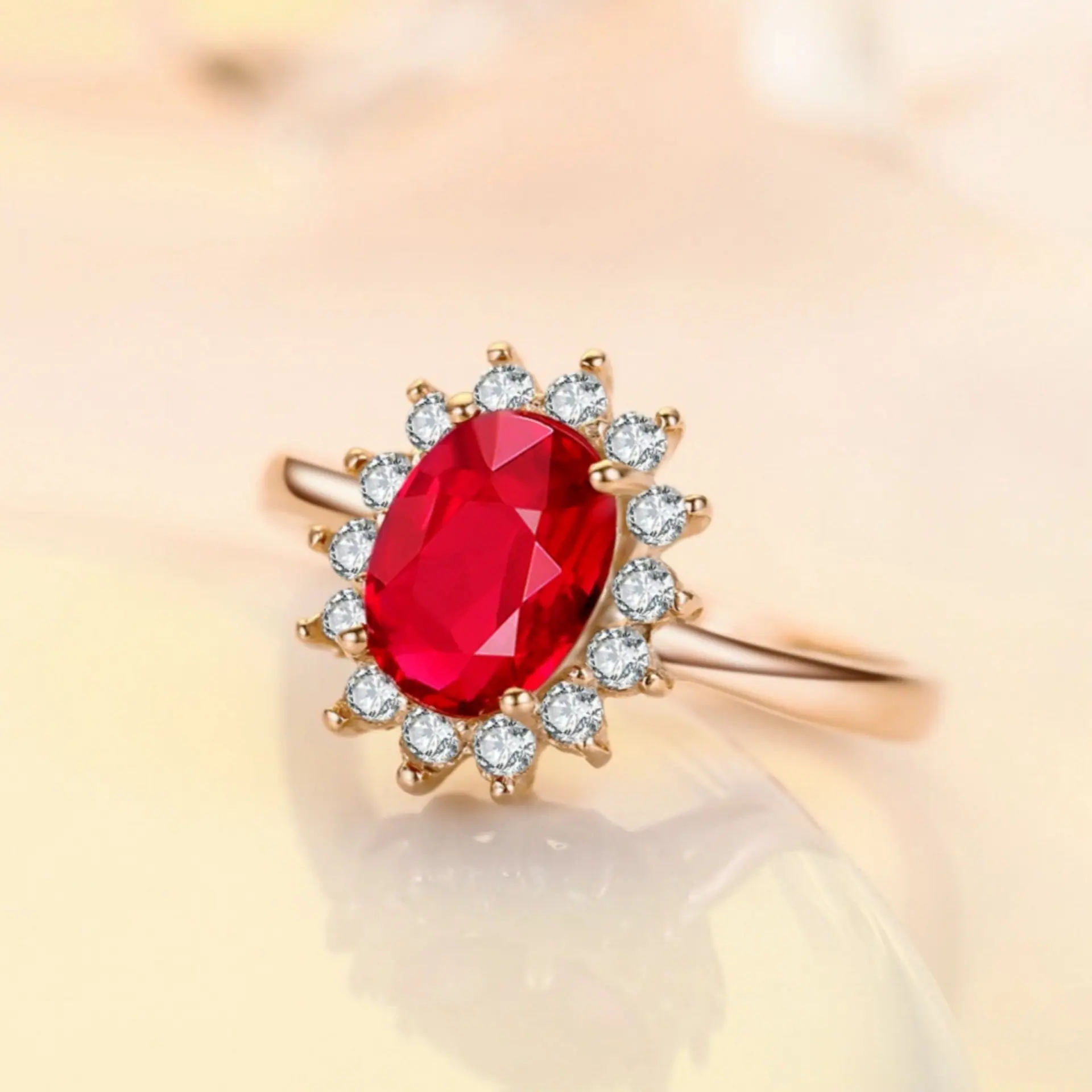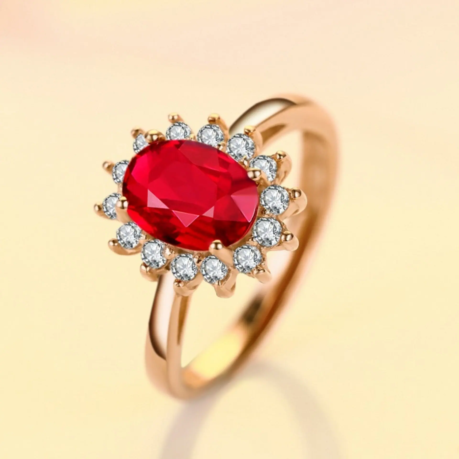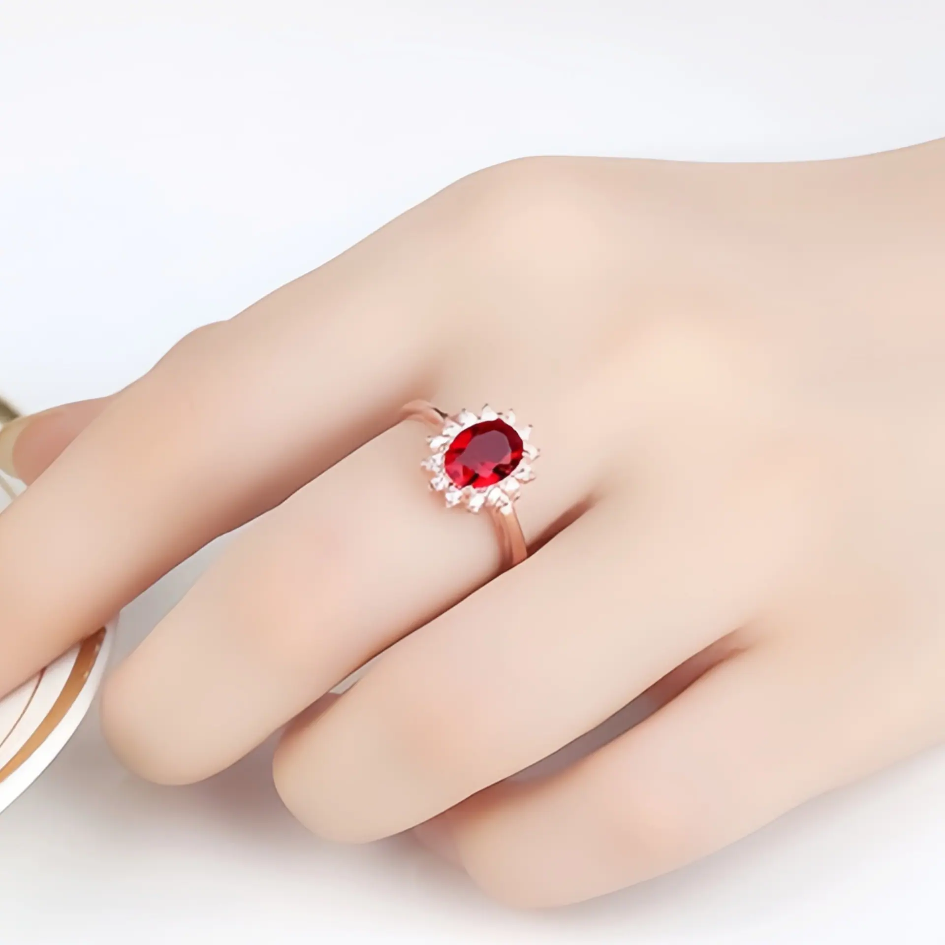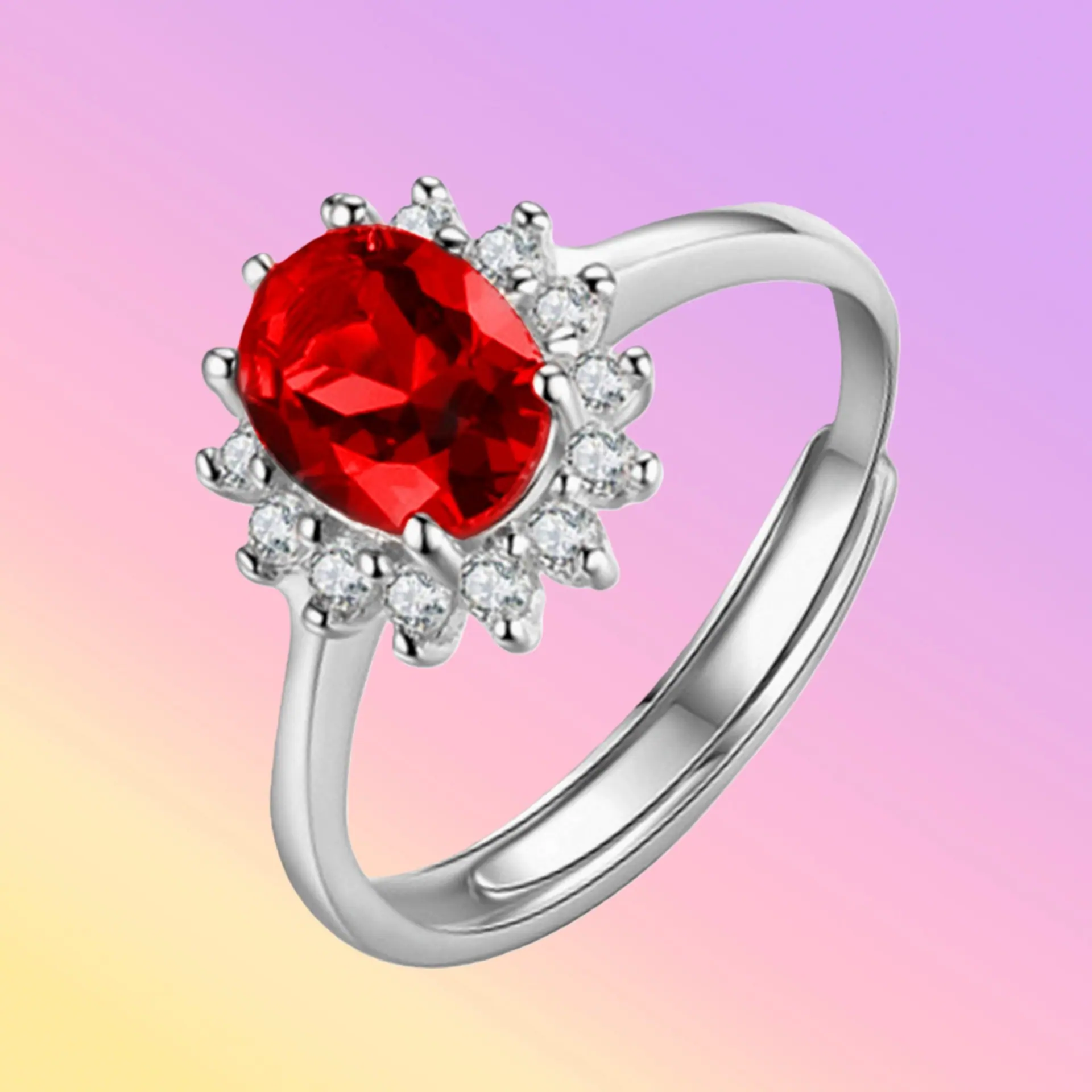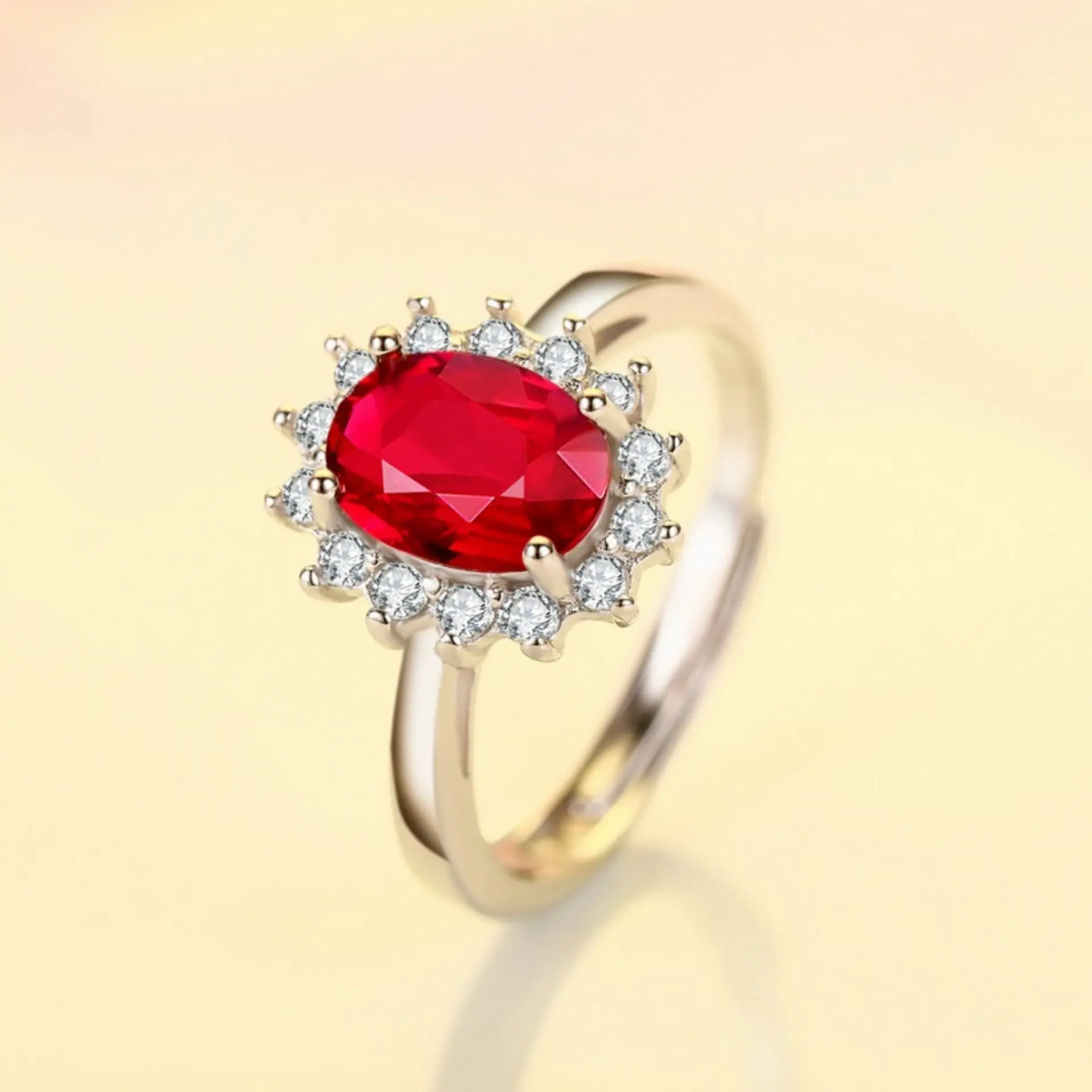 Anillo de Girasol Floreciente Estilo Coreano para Pareja, Anillo Abierto para el Dedo Índice, Estilo Europeo y Americano, Chapado en Oro Rosa, Anillo de Diamante Rojo al por Mayor