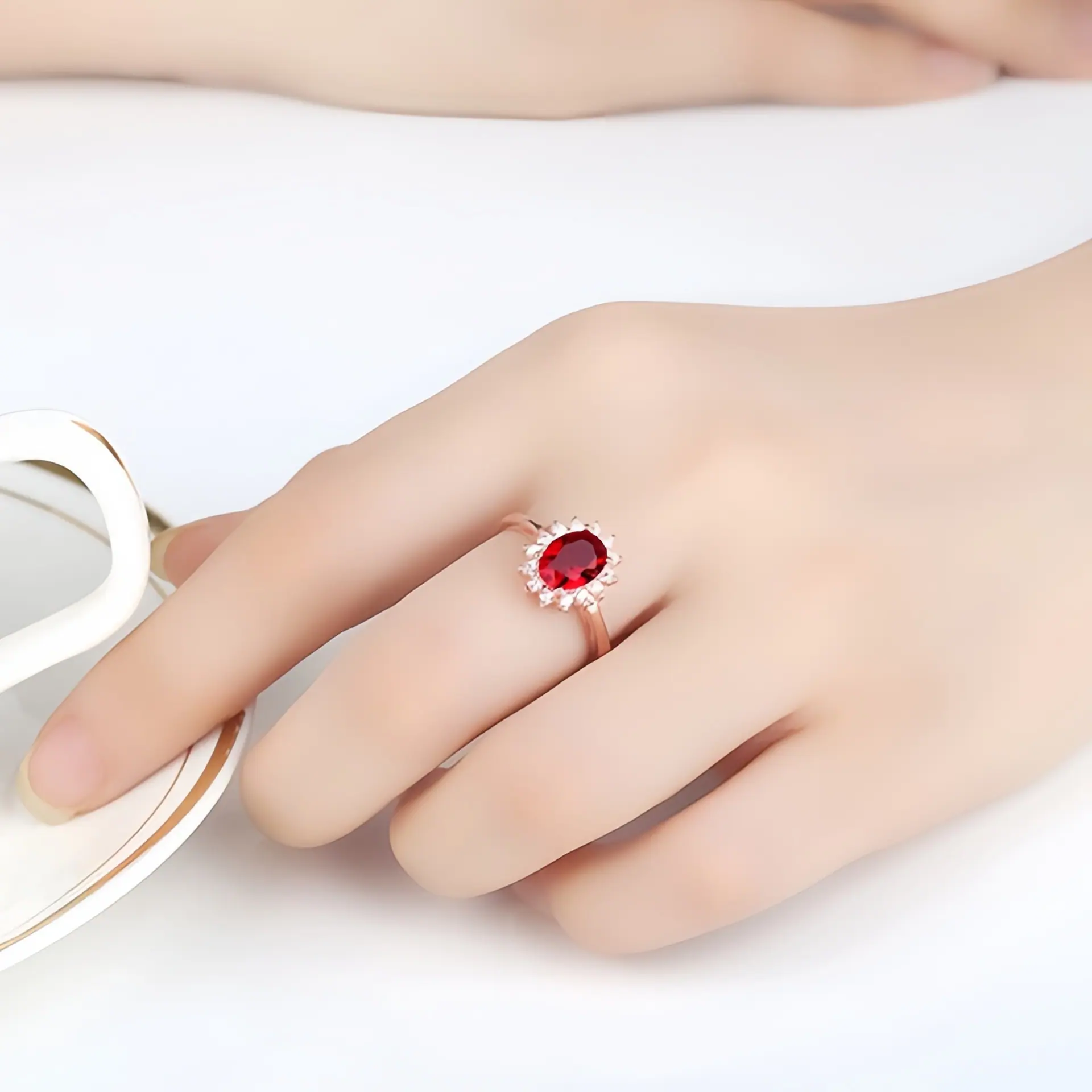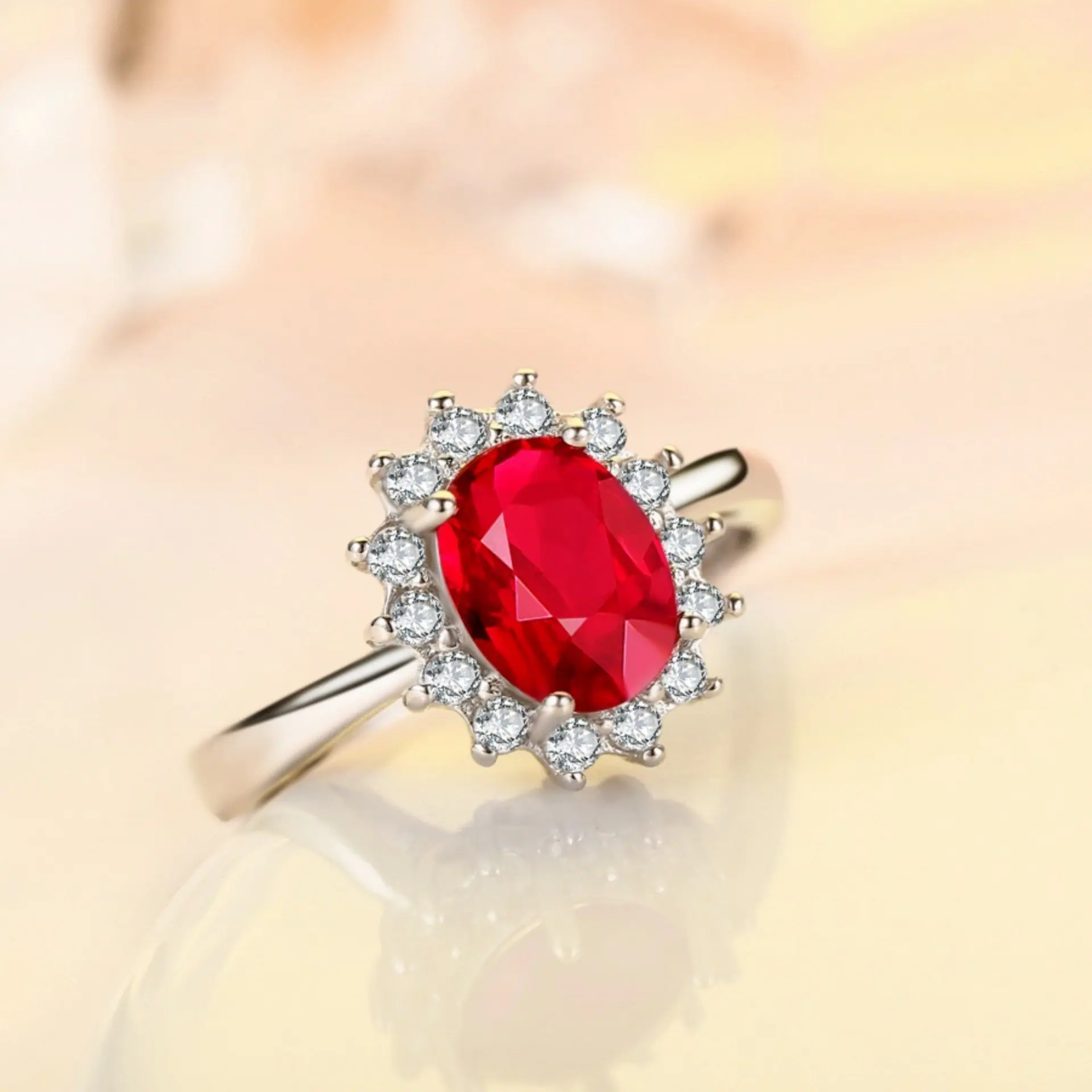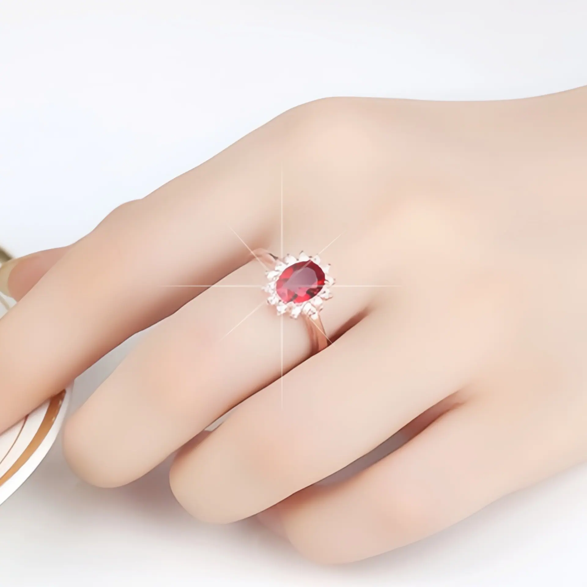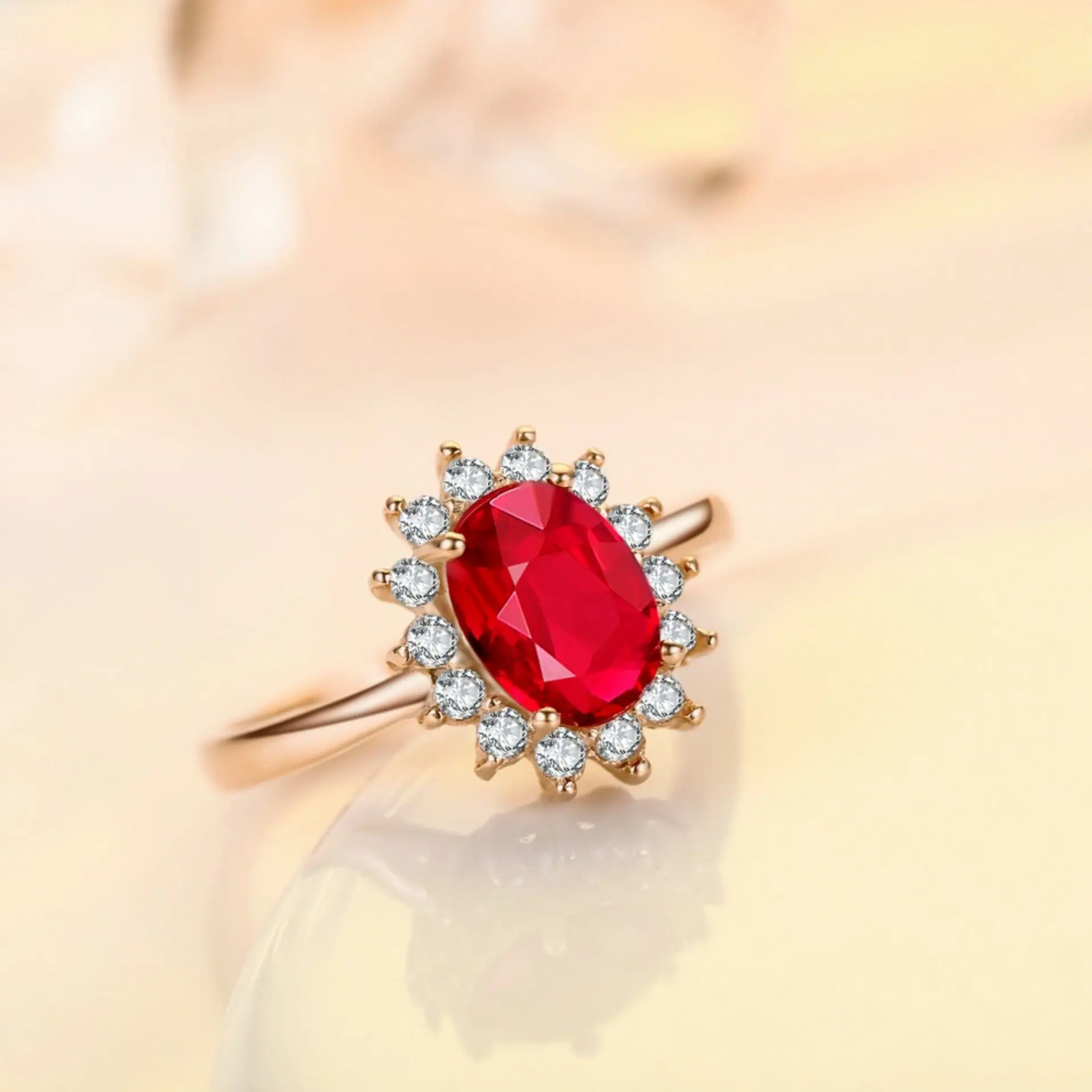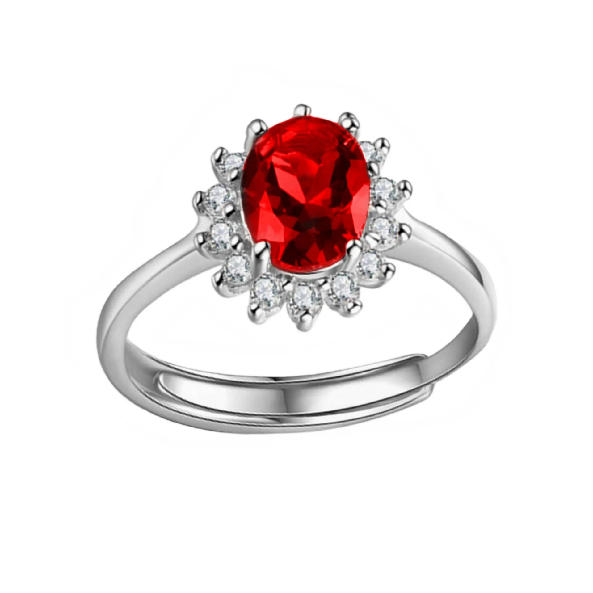 Anillo de Girasol Floreciente Estilo Coreano para Pareja, Anillo Abierto para el Dedo Índice, Estilo Europeo y Americano, Chapado en Oro Rosa, Anillo de Diamante Rojo al por Mayor