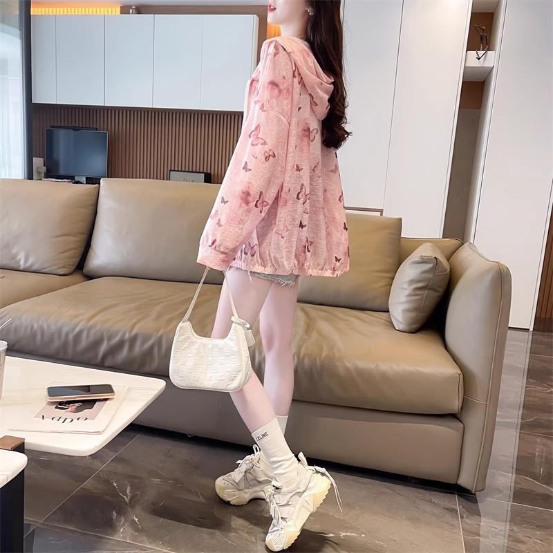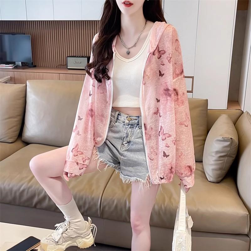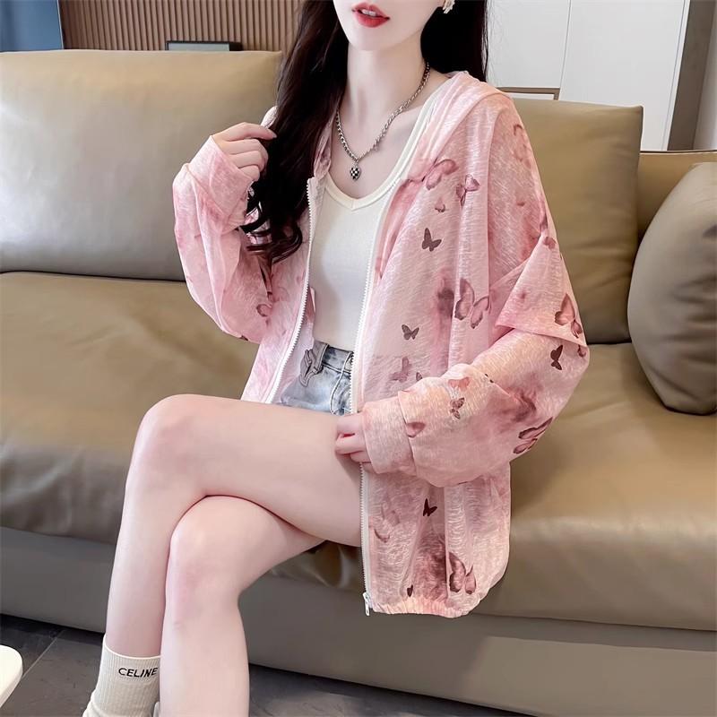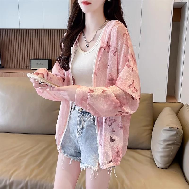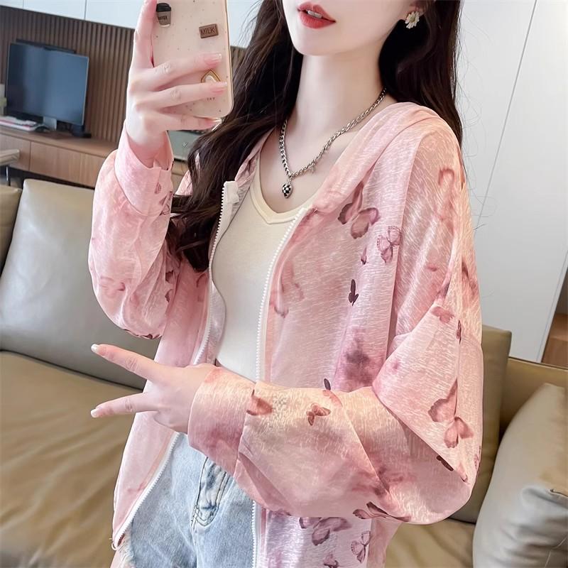 Estilo Coreano Nueva Chaqueta Fina de Seda de Hielo Top Tie-Dye Transfronterizo Verano Suelta con Capucha Cortavientos Ropa de Protección Solar para Mujer