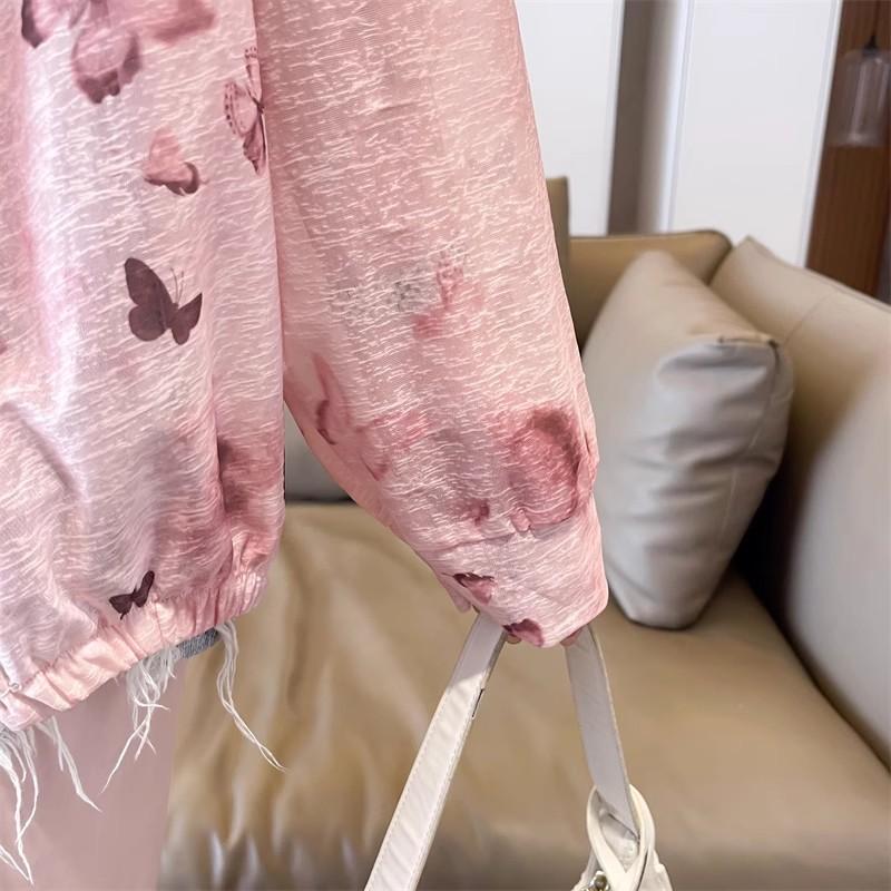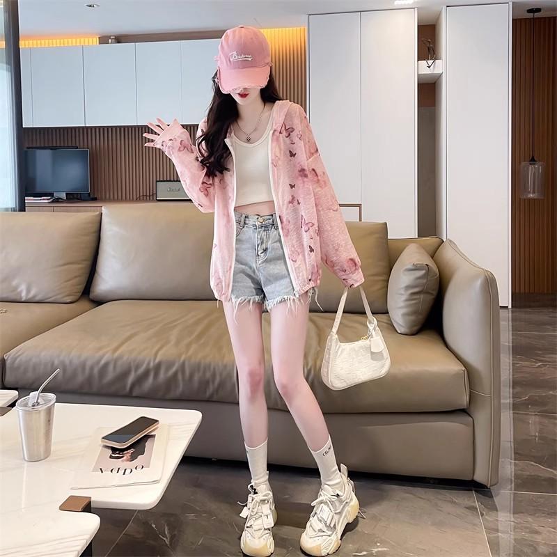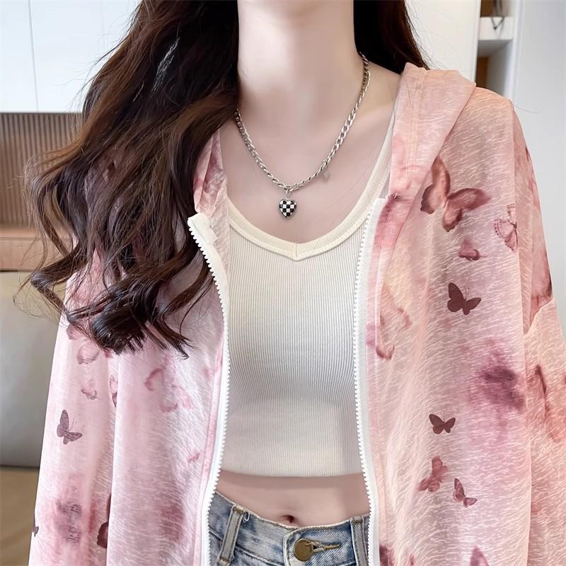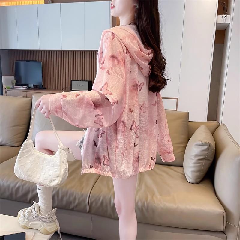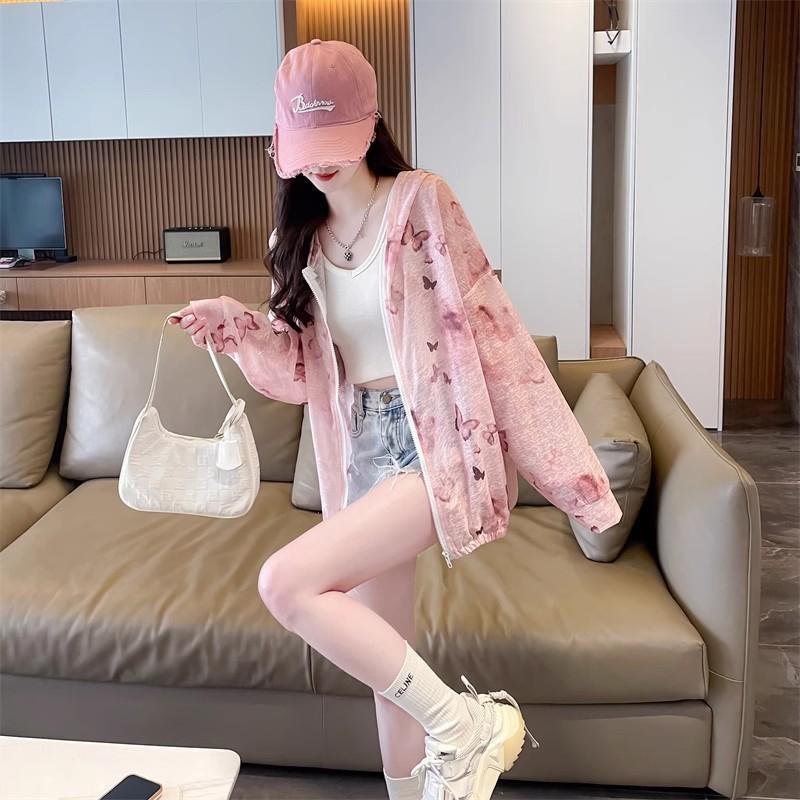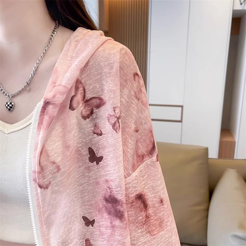 Estilo Coreano Nueva Chaqueta Fina de Seda de Hielo Top Tie-Dye Transfronterizo Verano Suelta con Capucha Cortavientos Ropa de Protección Solar para Mujer