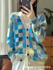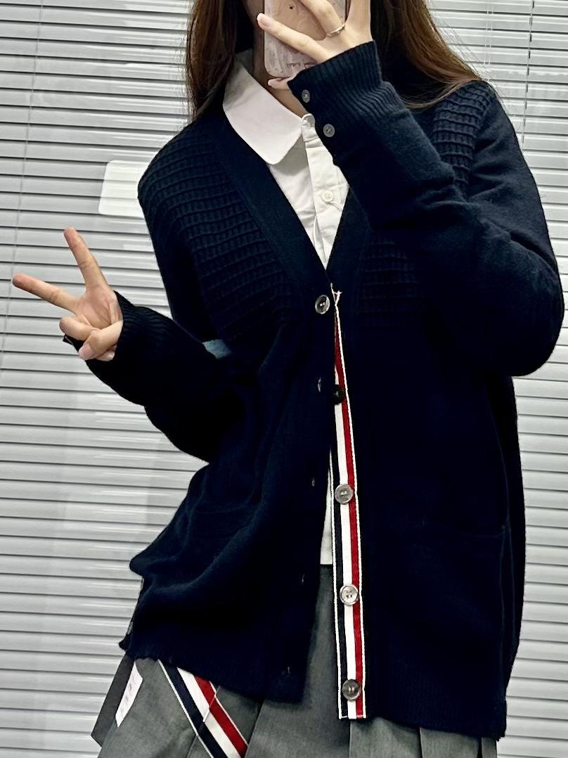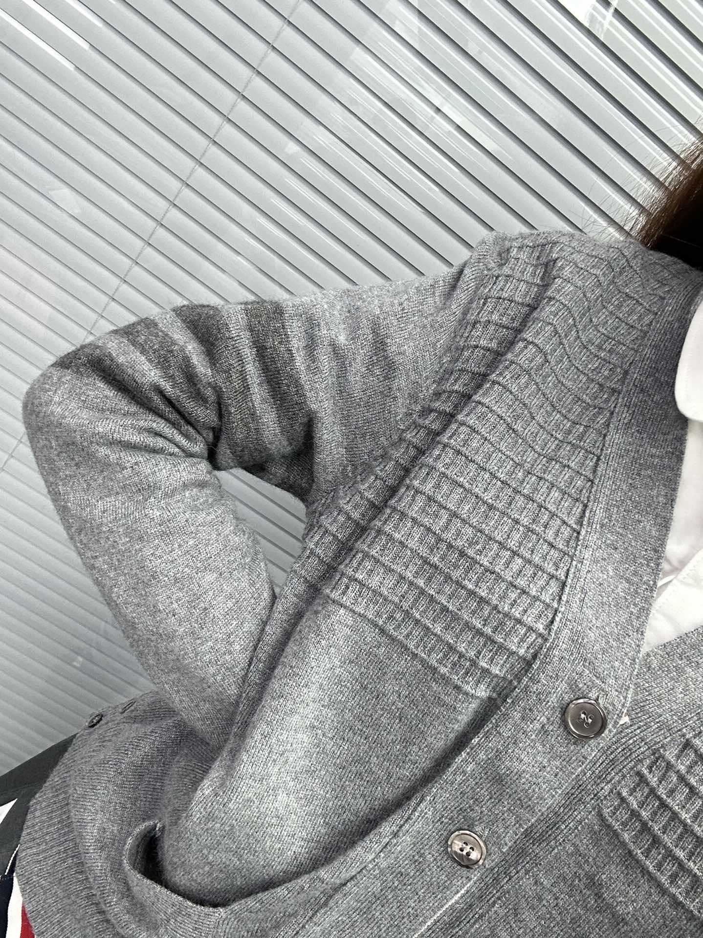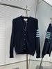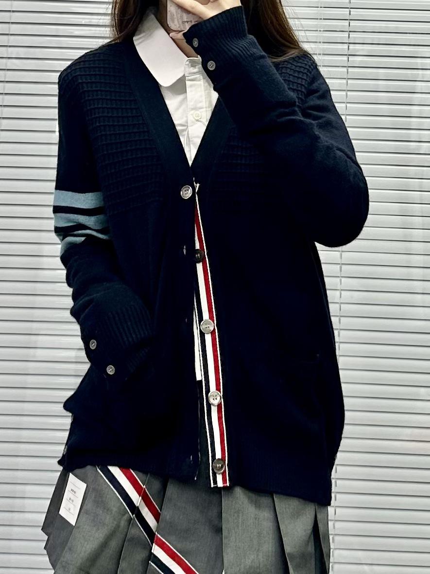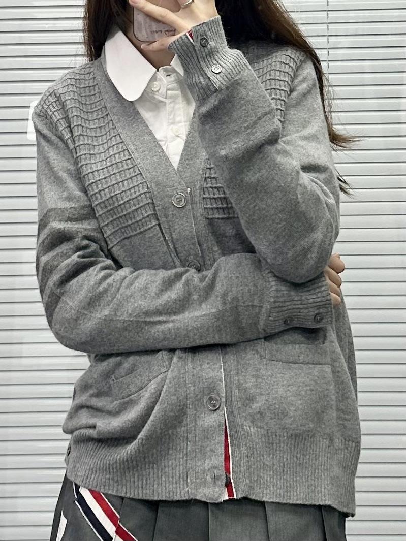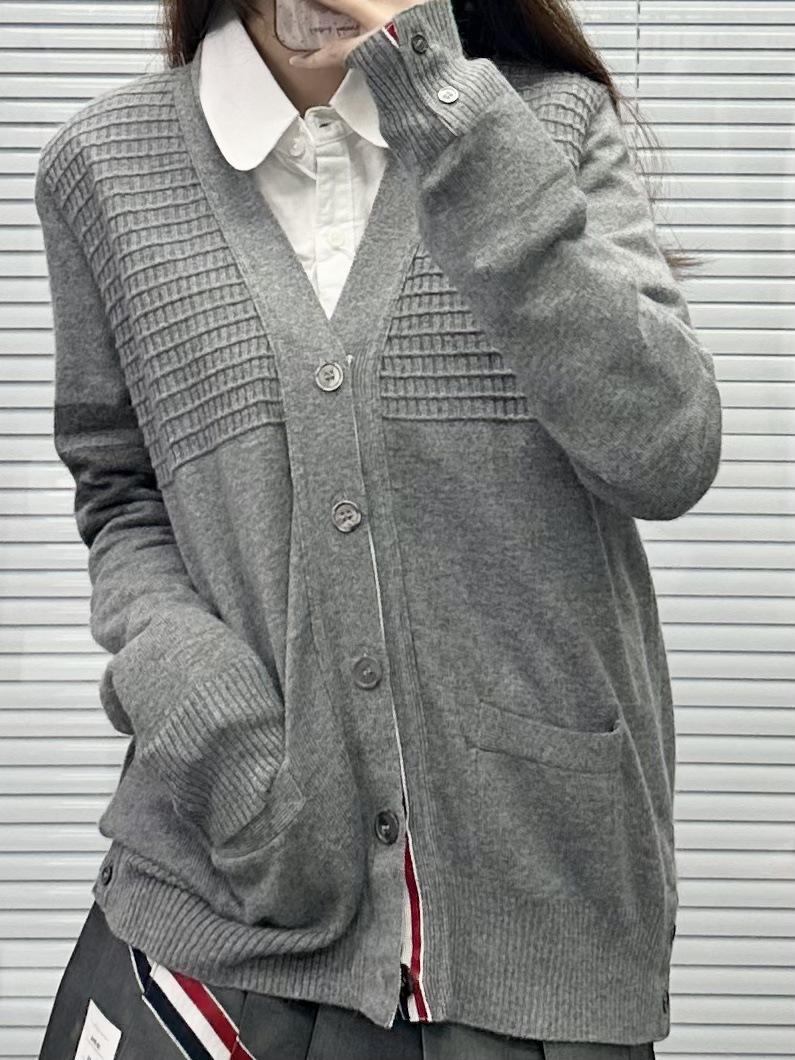 Cárdigan de Cachemira para Mujer de Alta Calidad Tb Nuevo Cuadros Cuatro Barras Manga Larga Cuello en V
