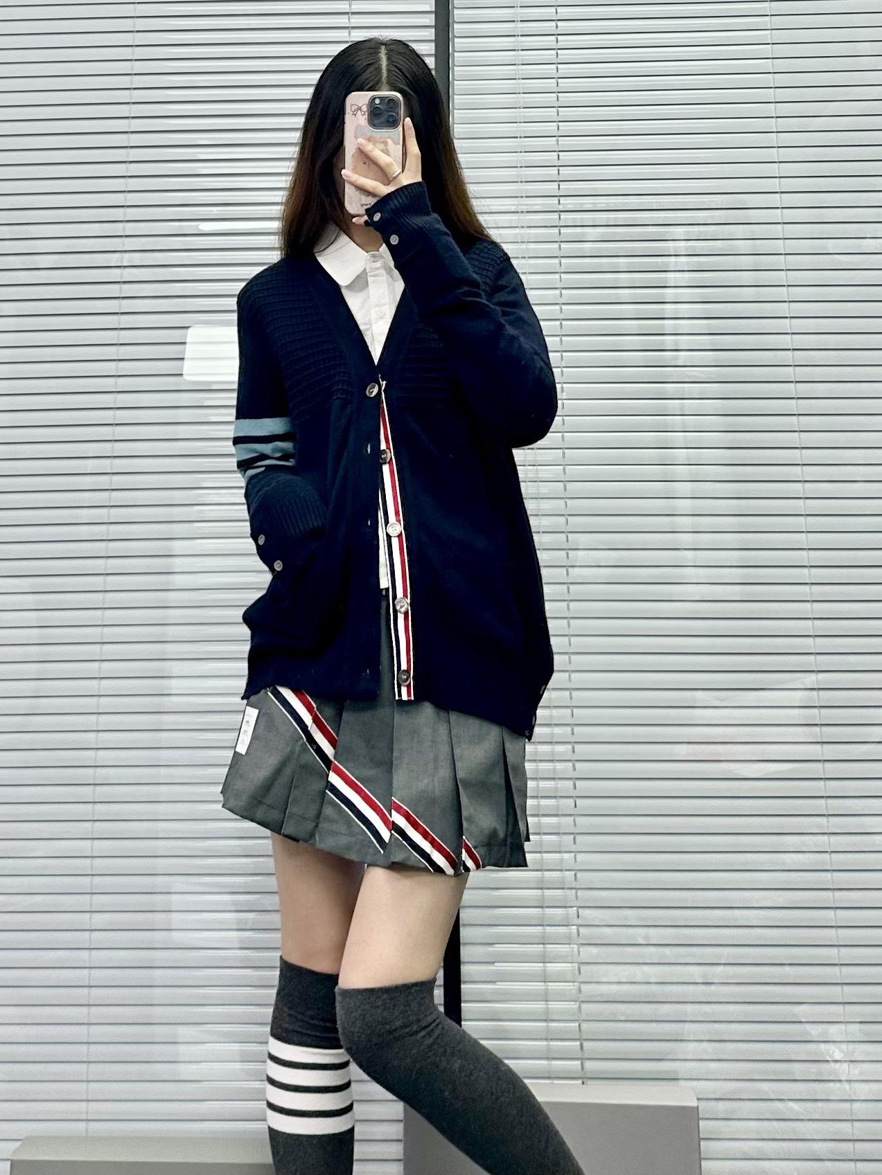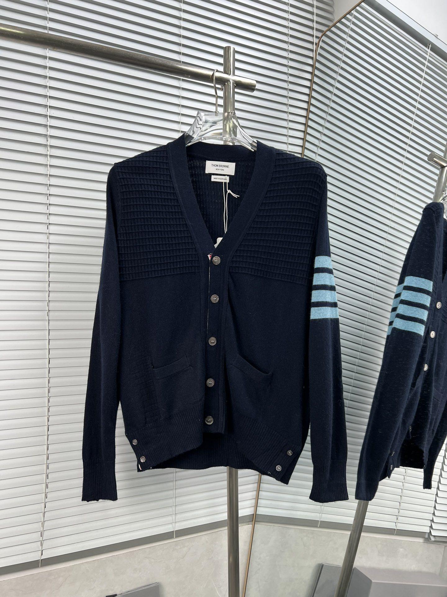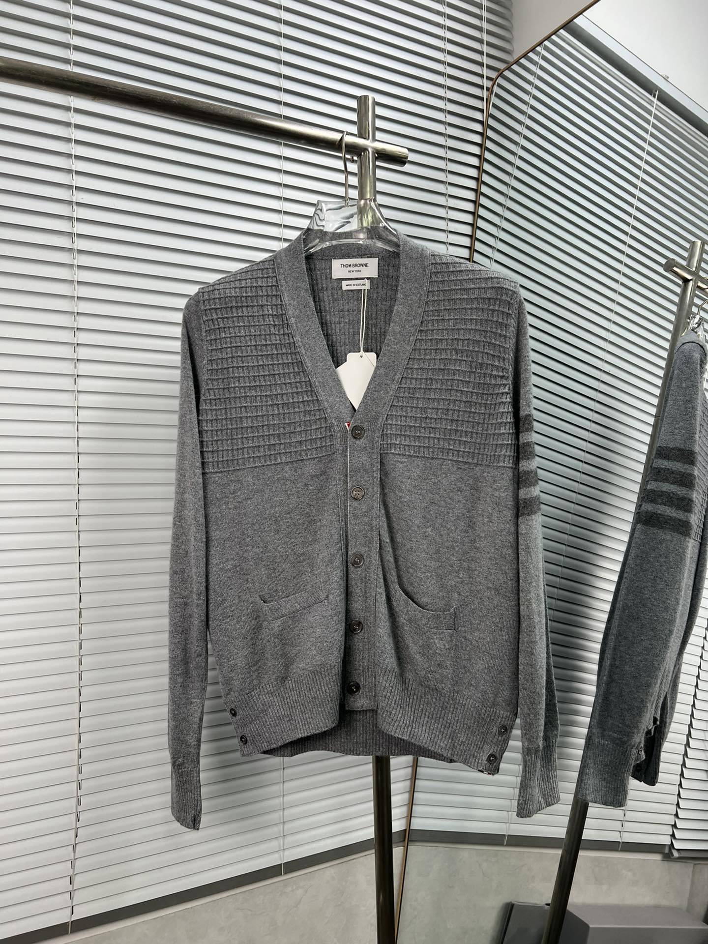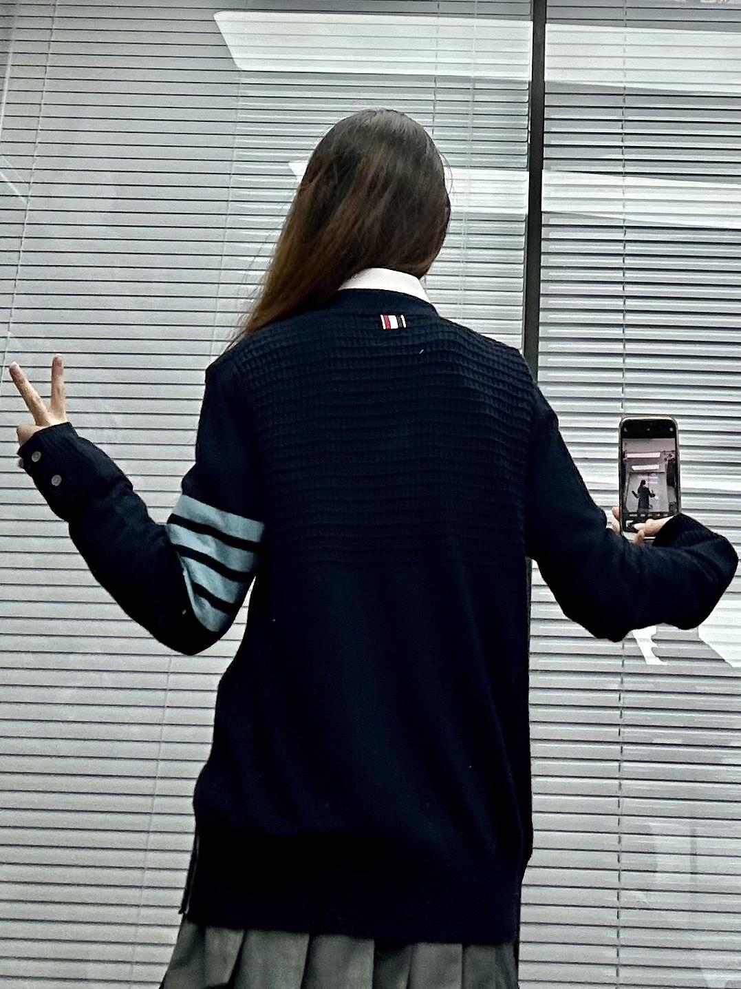 Cárdigan de Cachemira para Mujer de Alta Calidad Tb Nuevo Cuadros Cuatro Barras Manga Larga Cuello en V