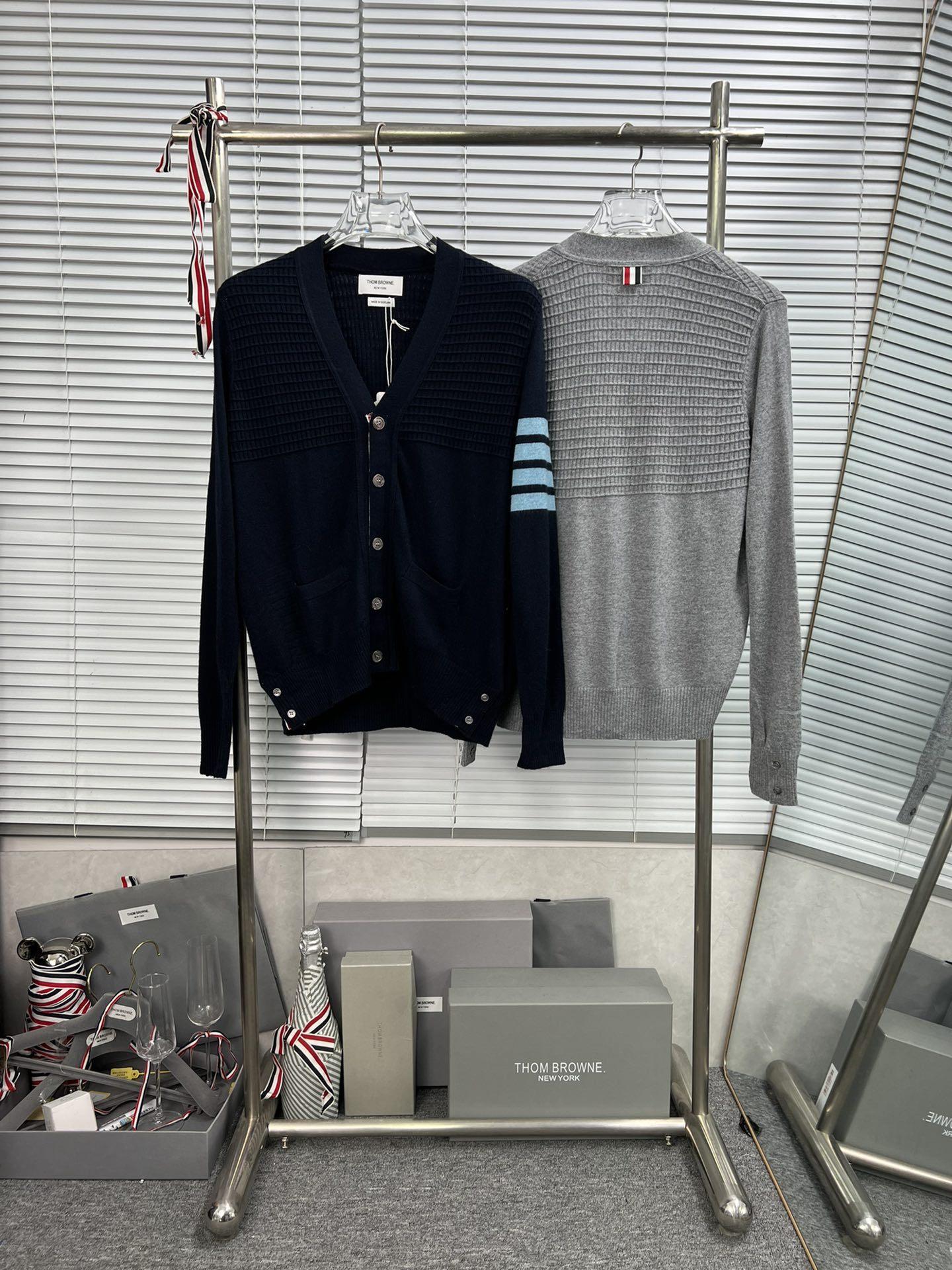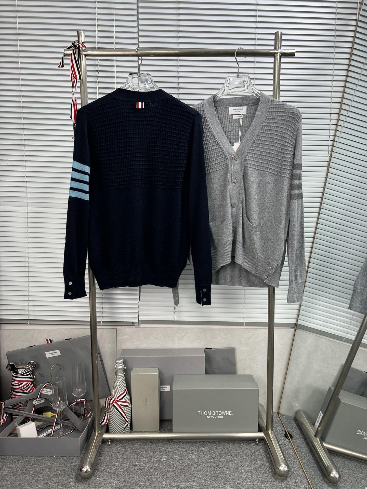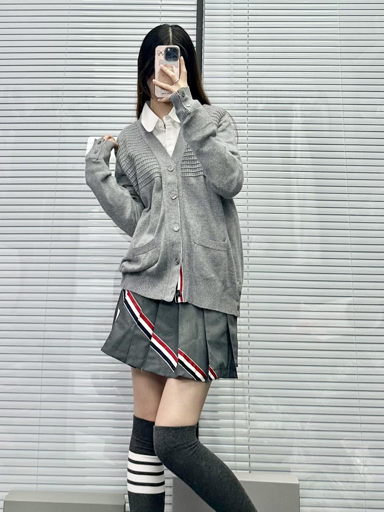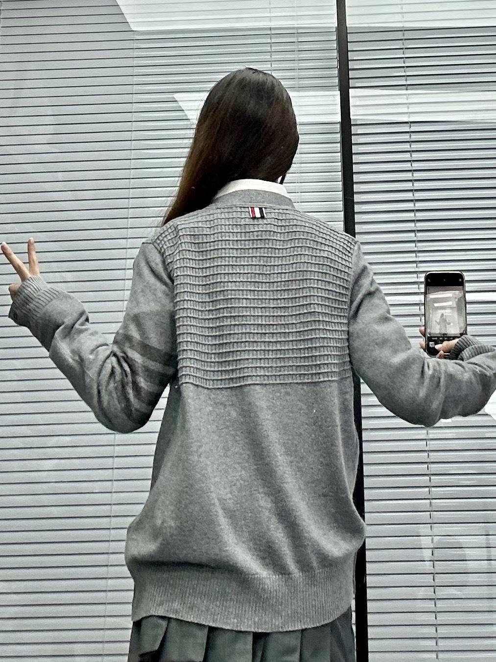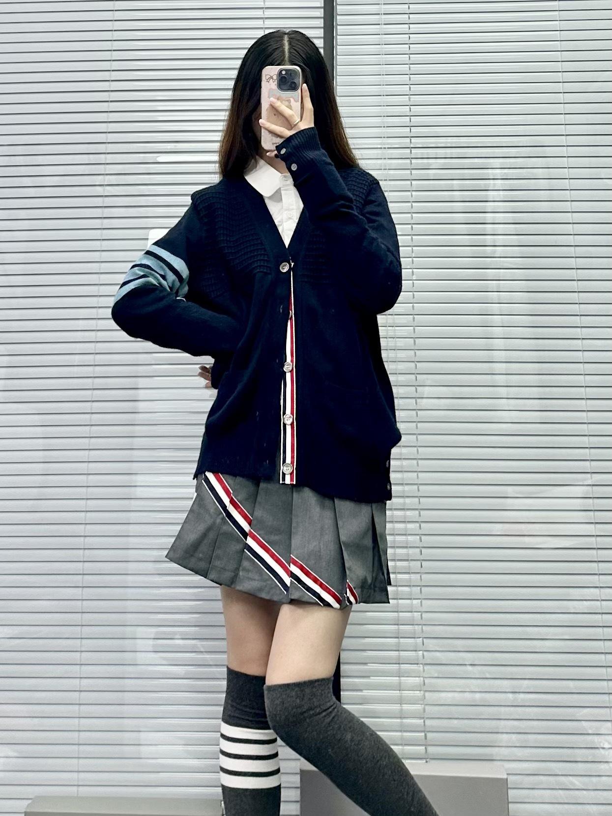 Cárdigan de Cachemira para Mujer de Alta Calidad Tb Nuevo Cuadros Cuatro Barras Manga Larga Cuello en V