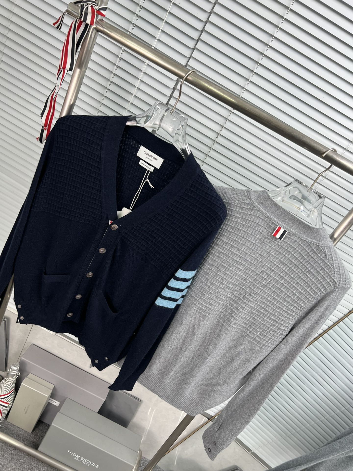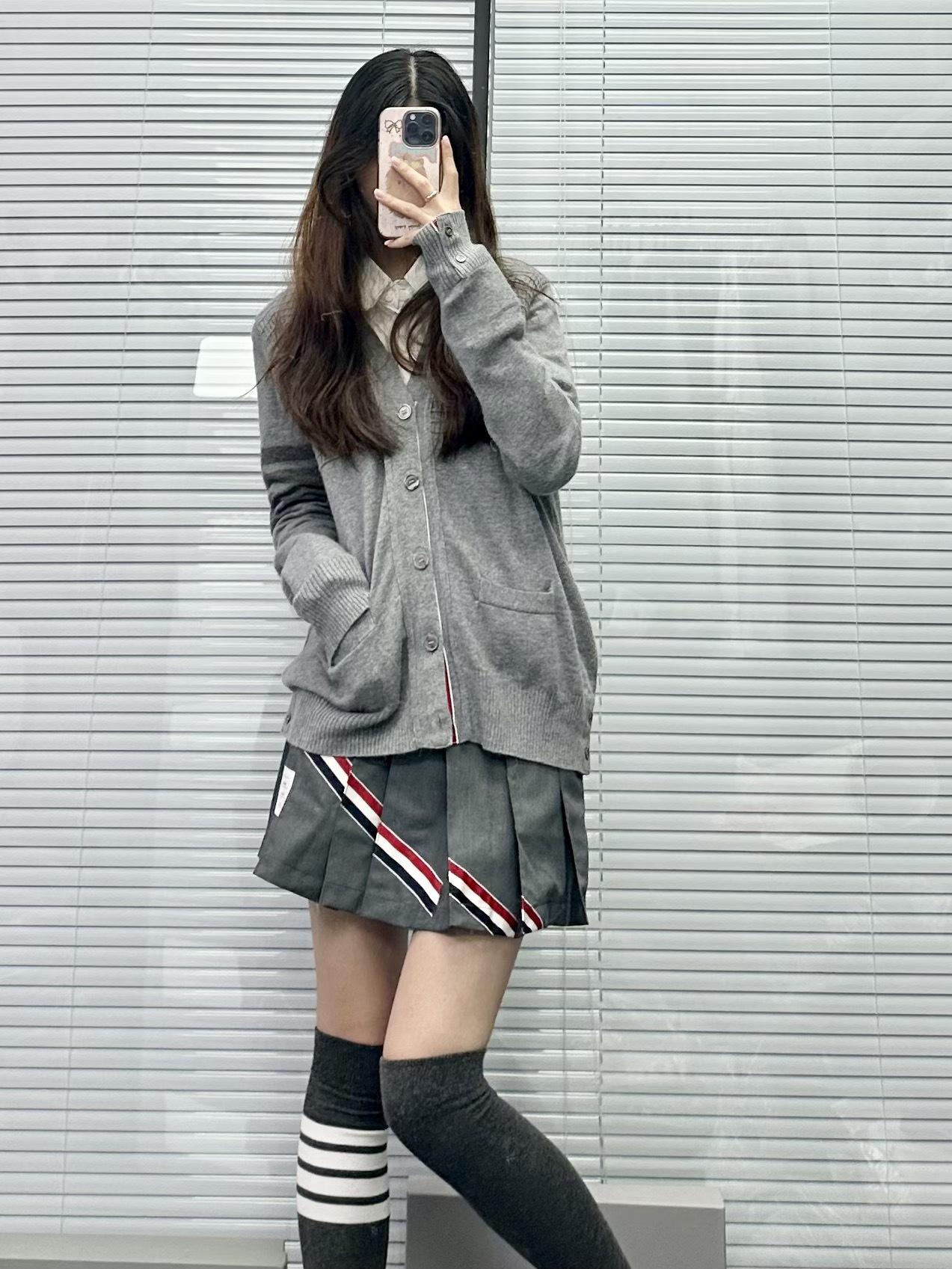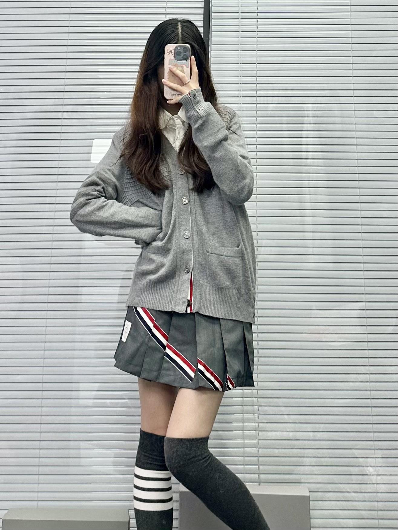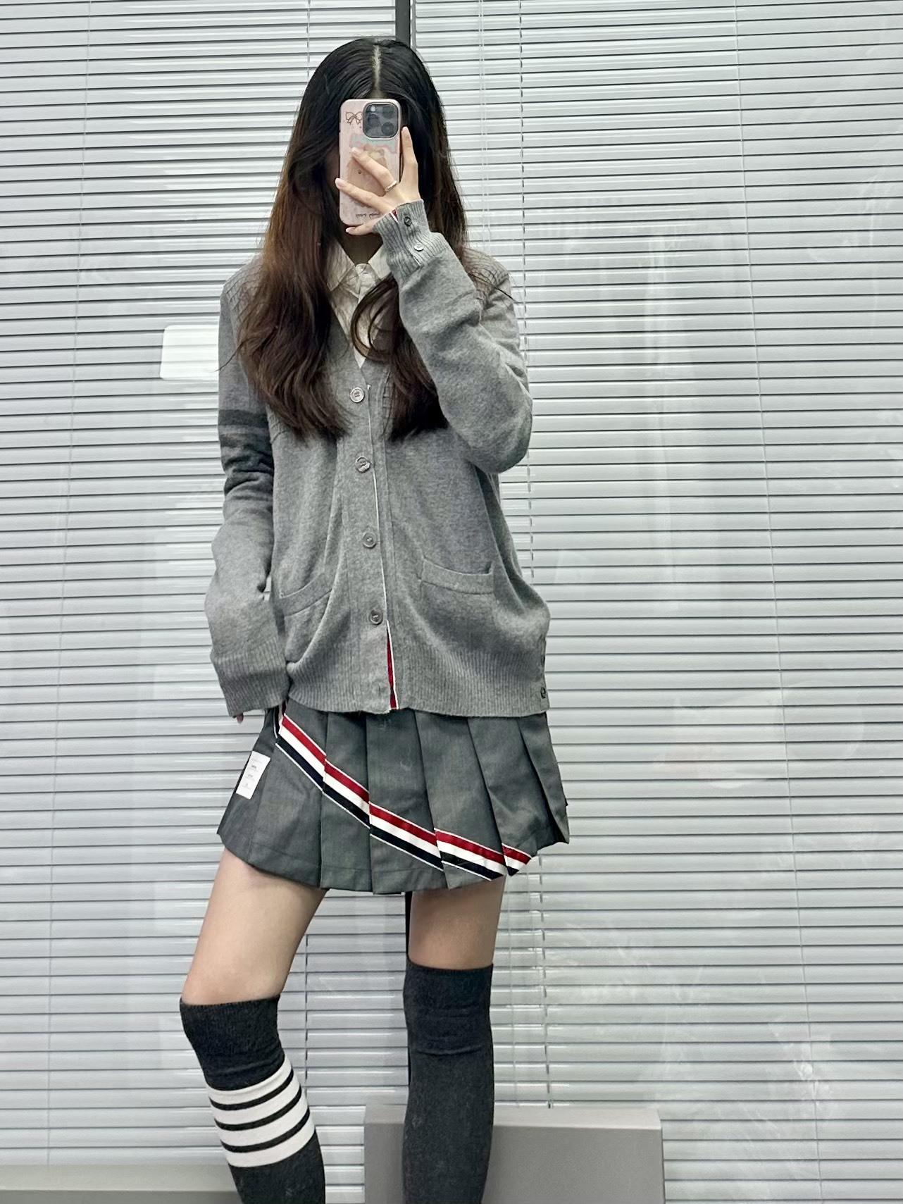 Cárdigan de Cachemira para Mujer de Alta Calidad Tb Nuevo Cuadros Cuatro Barras Manga Larga Cuello en V