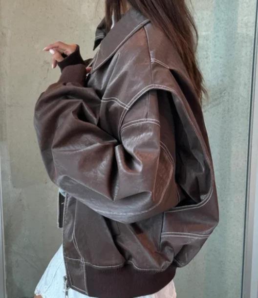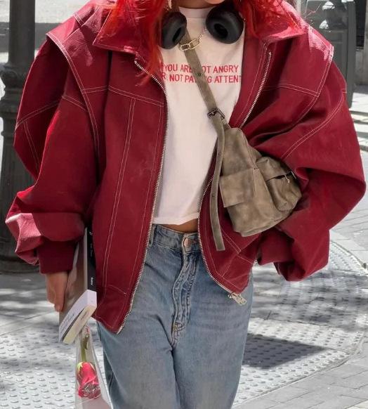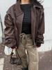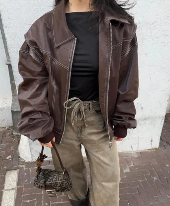 Chaqueta retro americana de manga larga con solapa suelta y cremallera para mujer, nueva moda de otoño e invierno de Amazon, disponible en el extranjero.