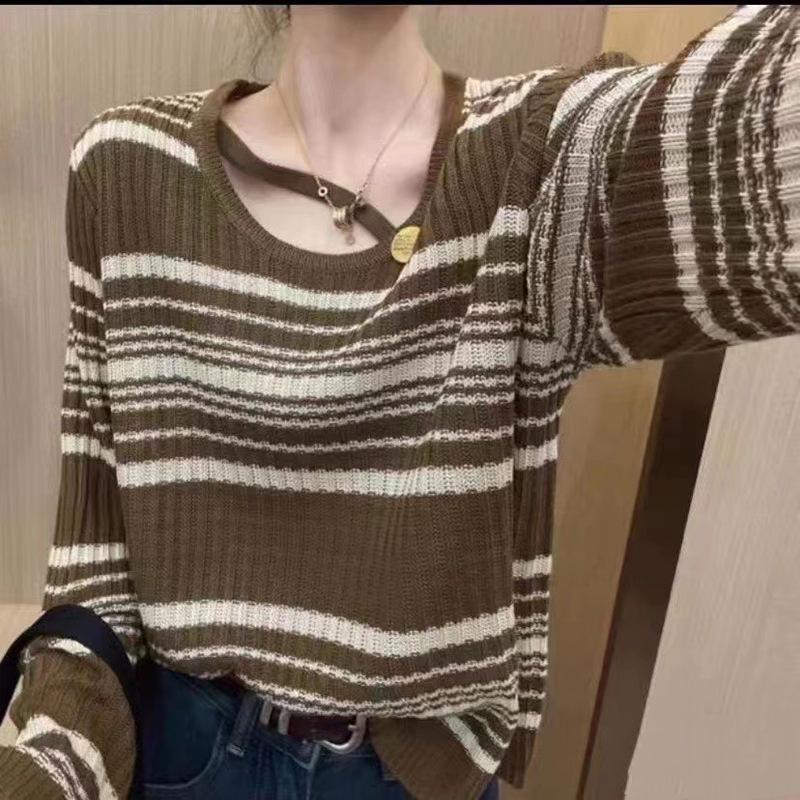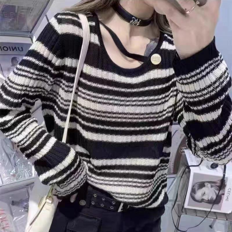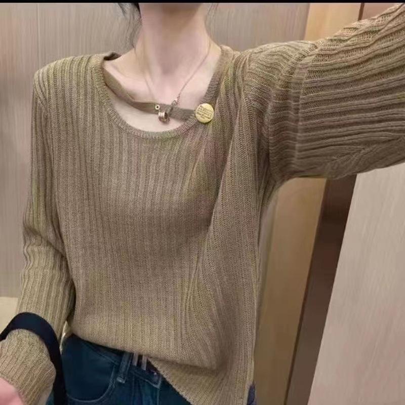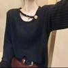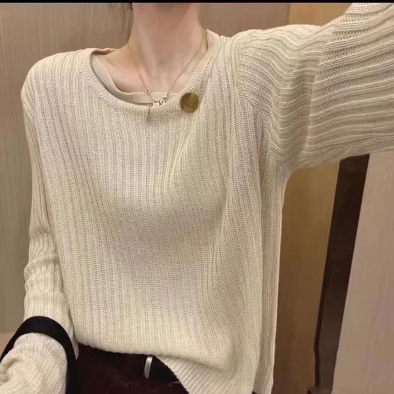 2023 Principios de Otoño Nuevo Moda Coreana Botón Suéter Holgado de Cuello Redondo Combinable Top de Manga Larga para Mujer