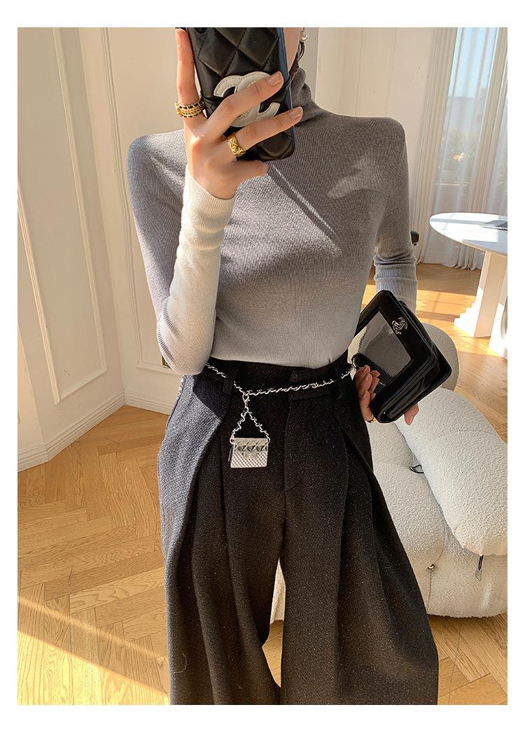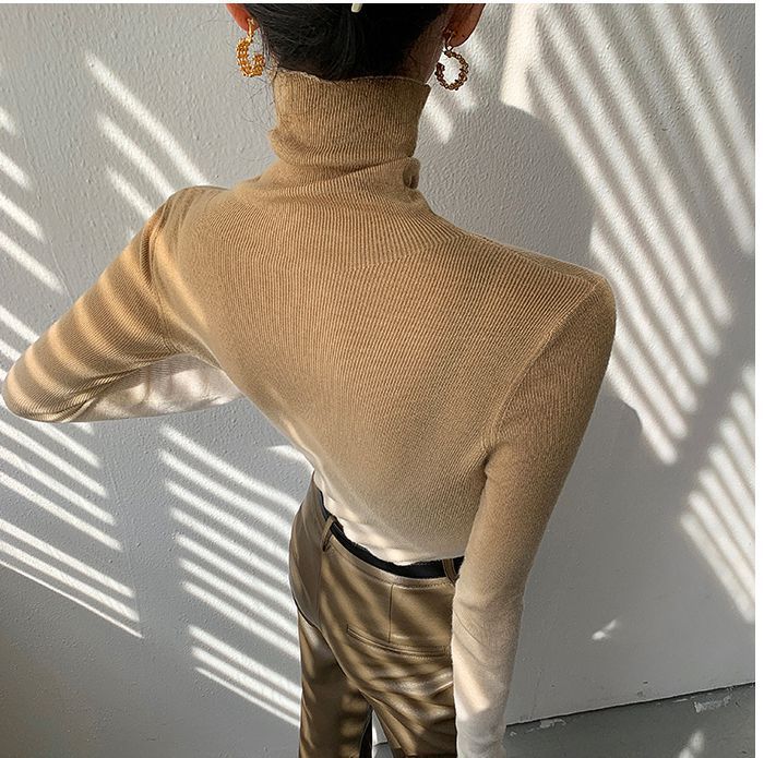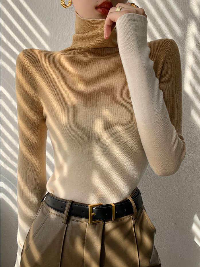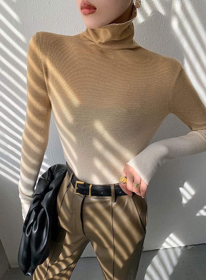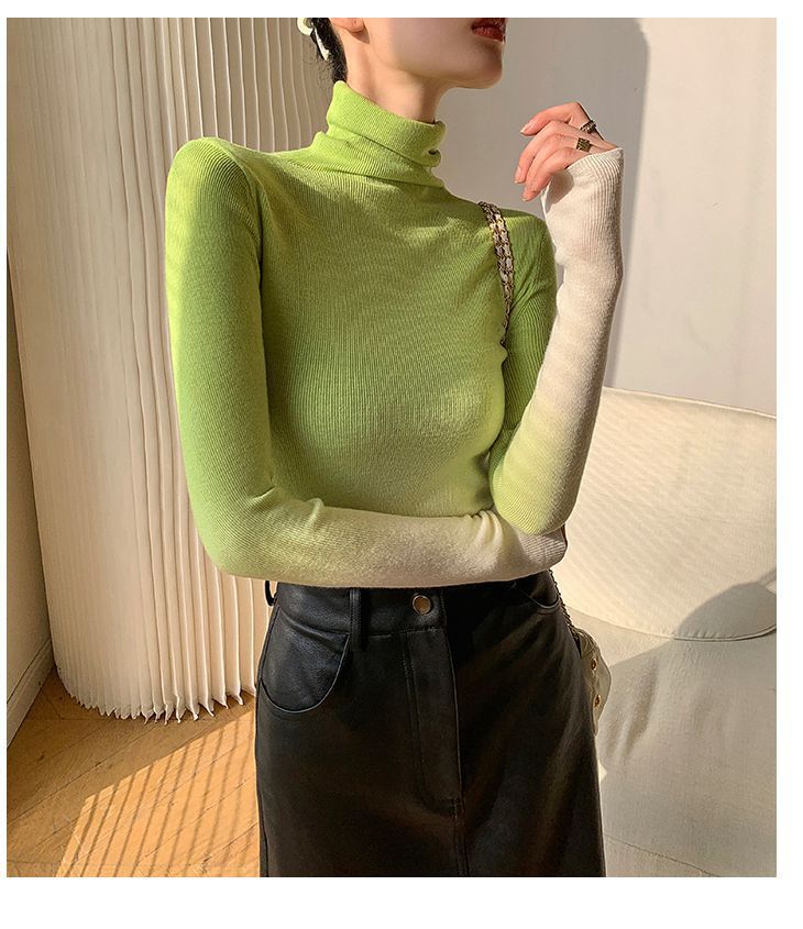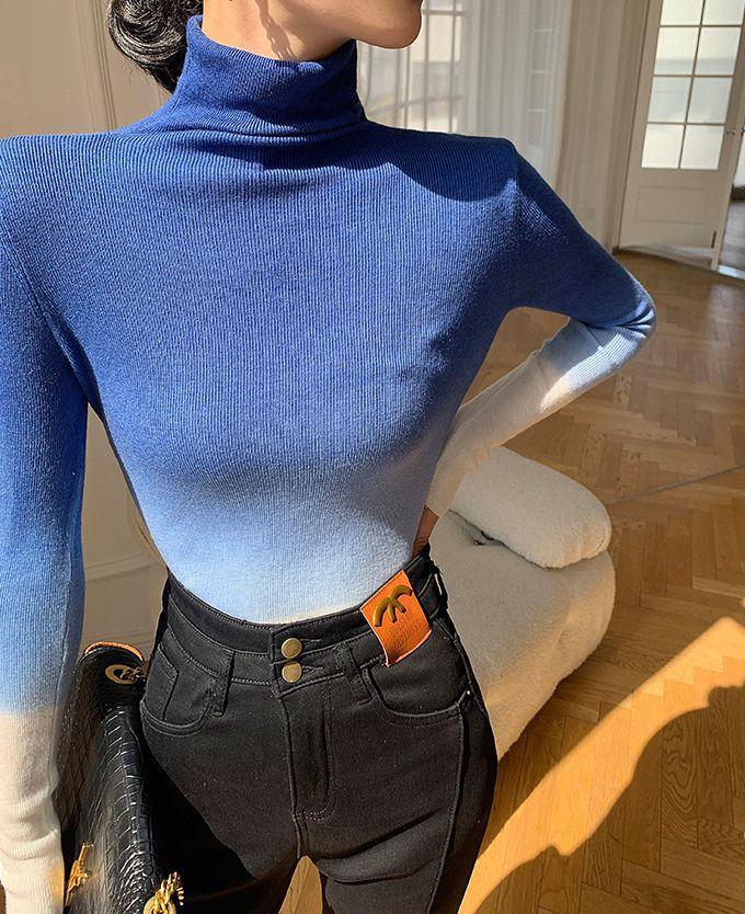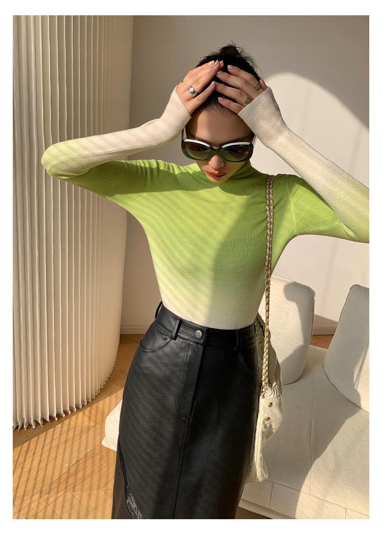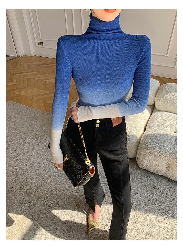 Suéter de Cuello Alto Degradado para Mujer Otoño 2023 Nuevo Ajustado Adelgazante de Alta Gama Suave Ceroso Top de Punto