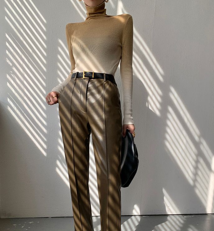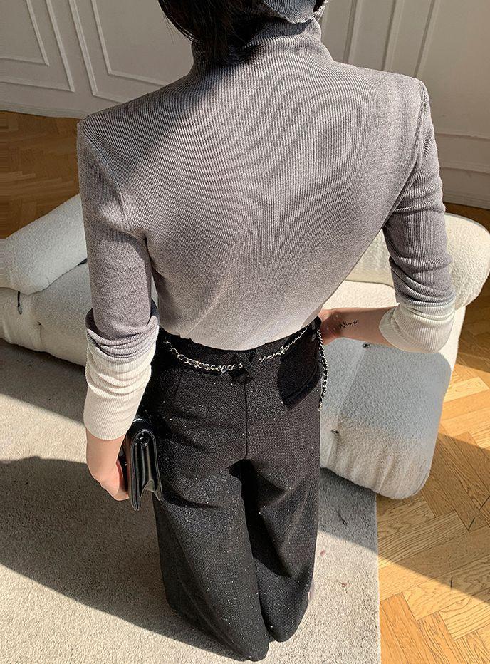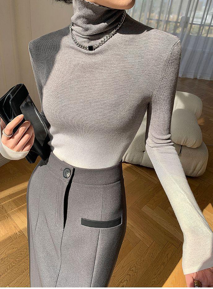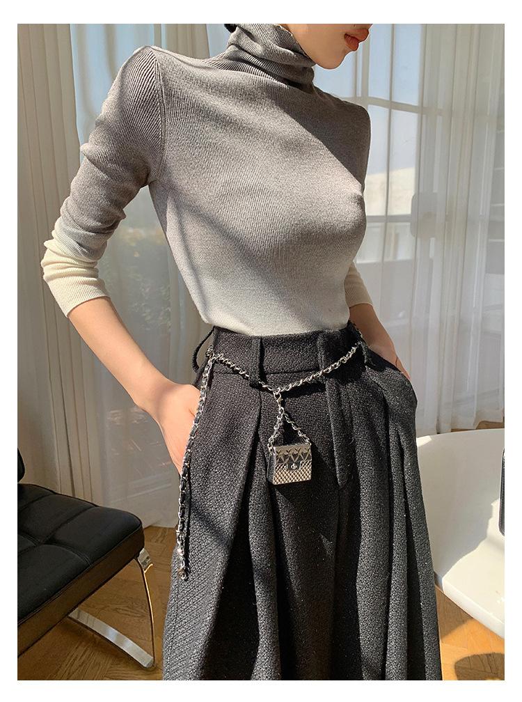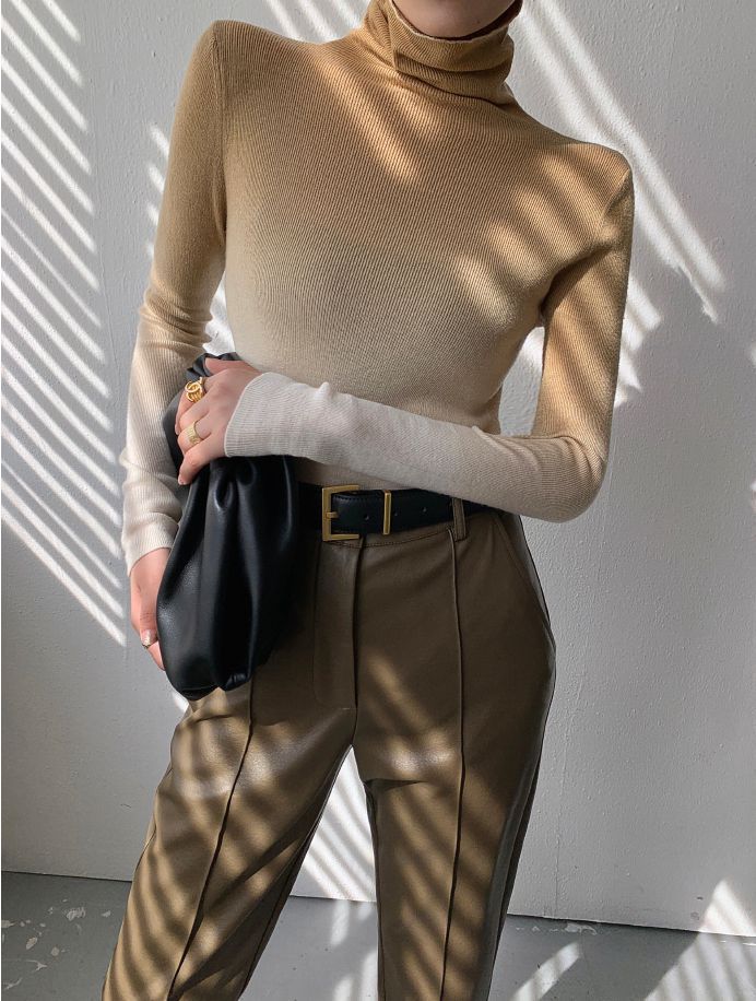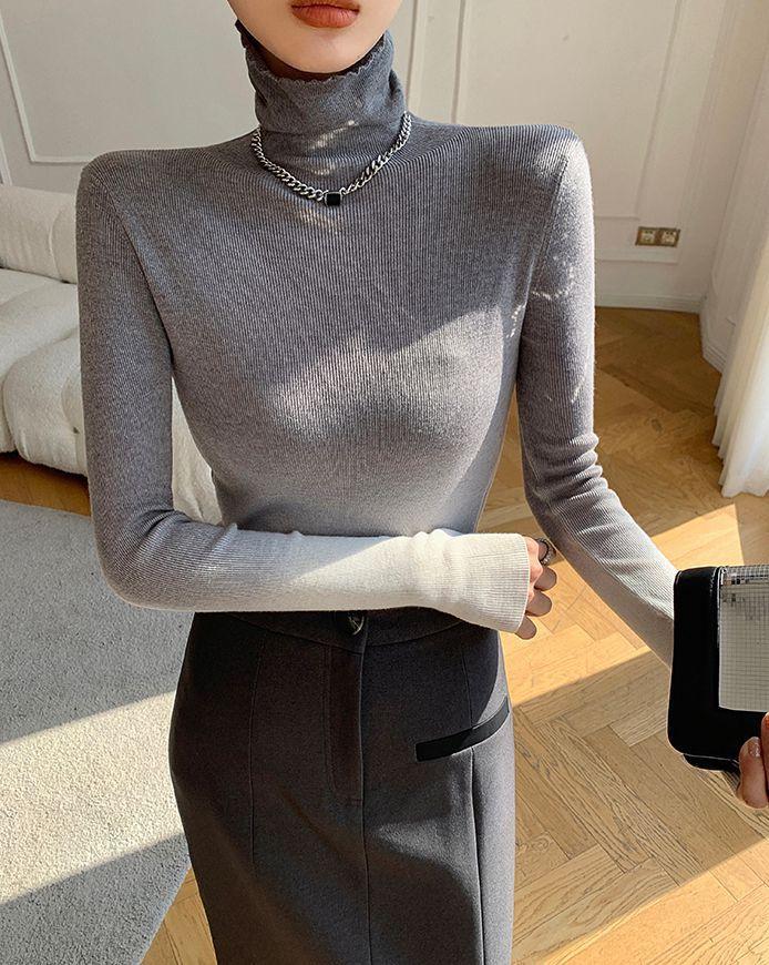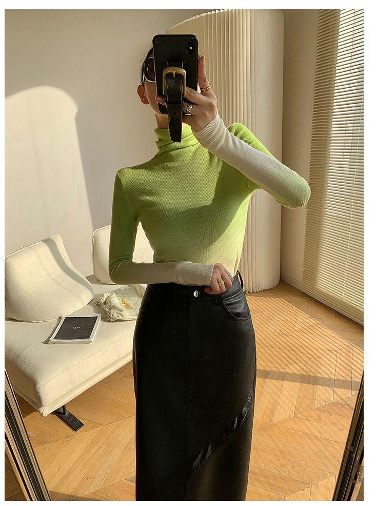 Suéter de Cuello Alto Degradado para Mujer Otoño 2023 Nuevo Ajustado Adelgazante de Alta Gama Suave Ceroso Top de Punto