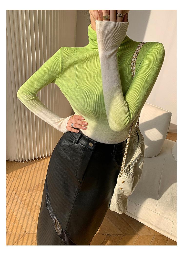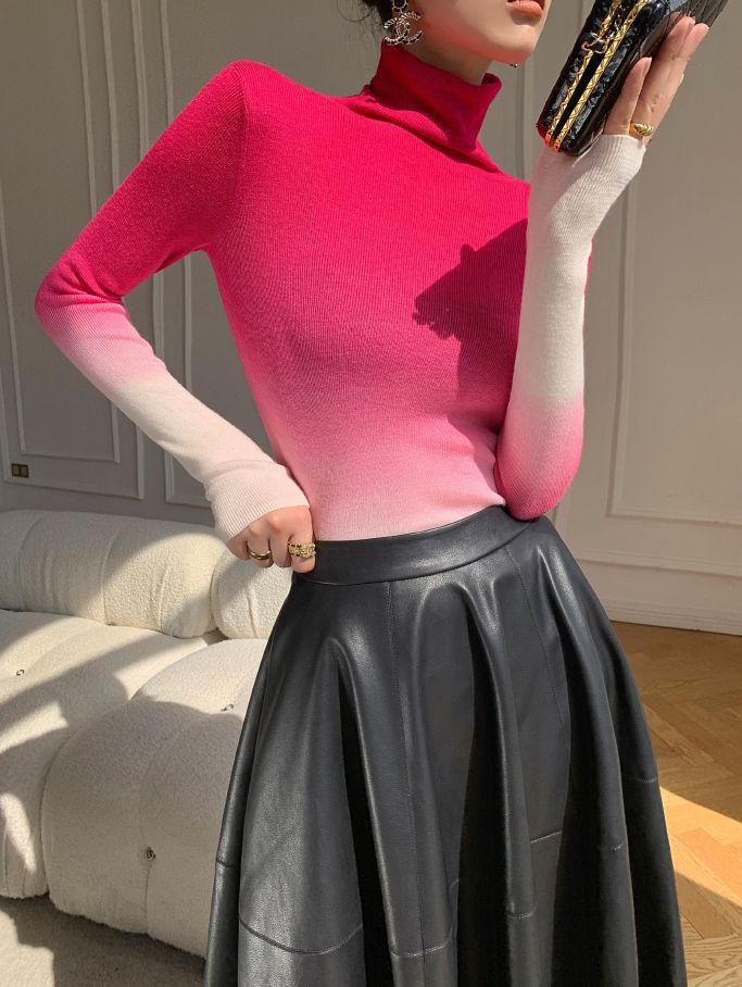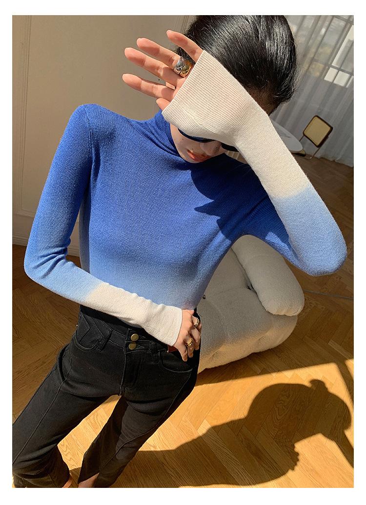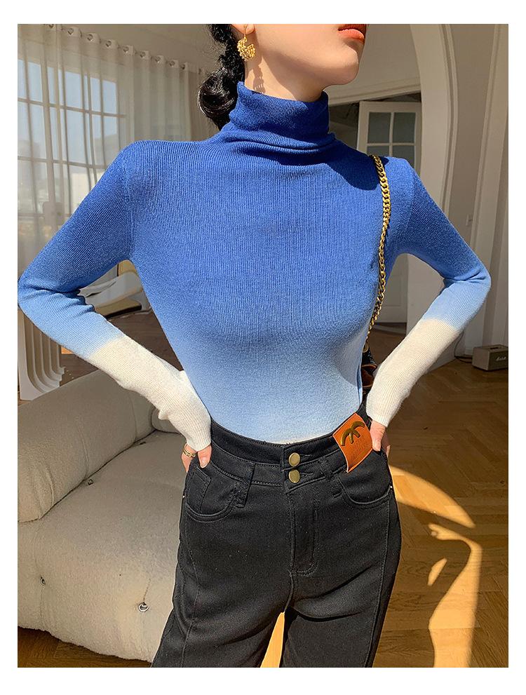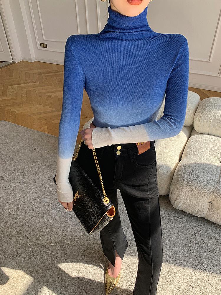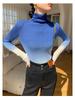 Suéter de Cuello Alto con Color Degradado para Mujer Otoño 2023 Nuevo Adelgazante de Gama Alta Tejido Suave