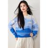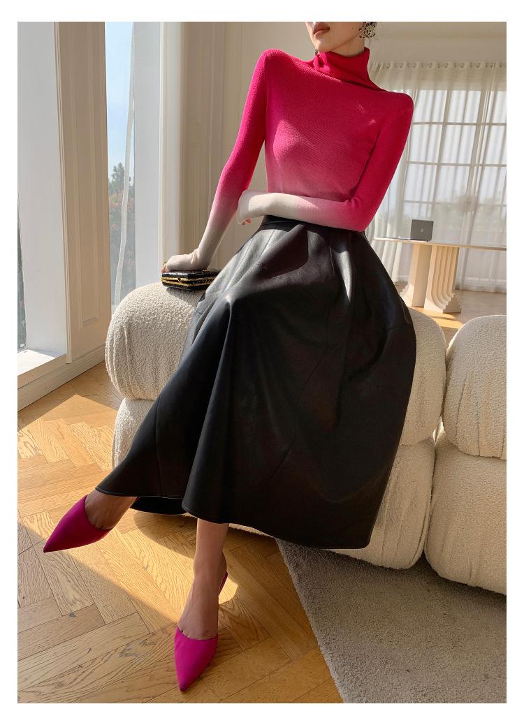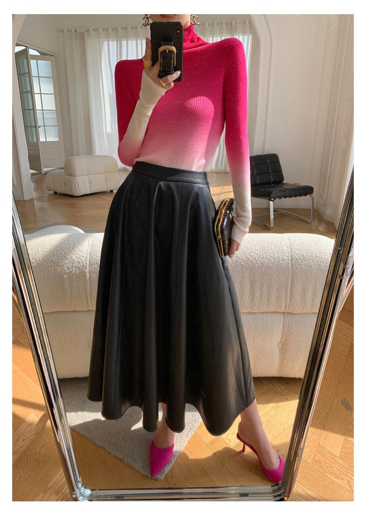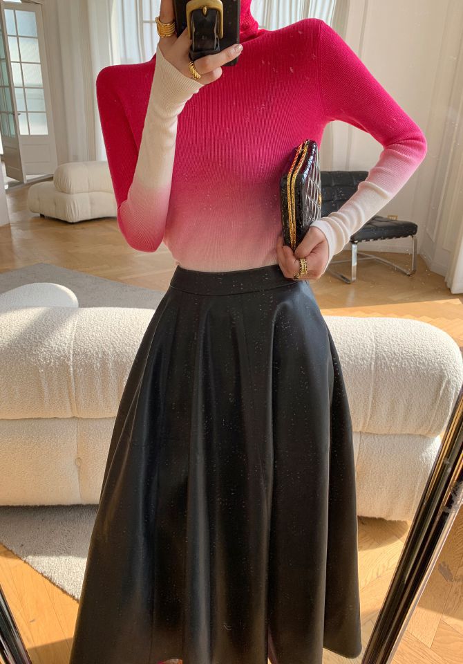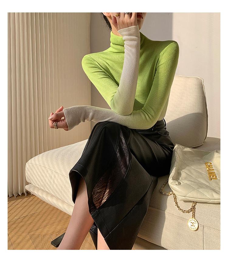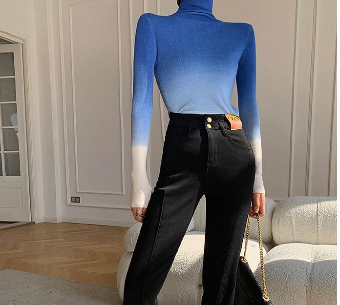 Suéter de Cuello Alto con Color Degradado para Mujer Otoño 2023 Nuevo Adelgazante de Gama Alta Tejido Suave
