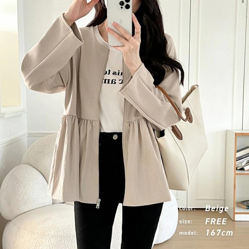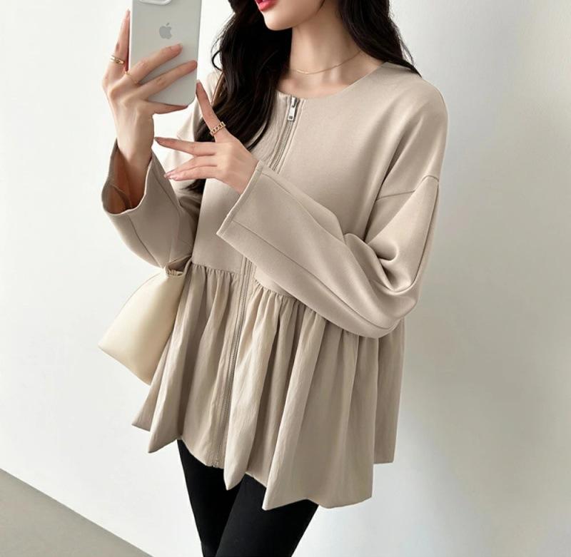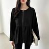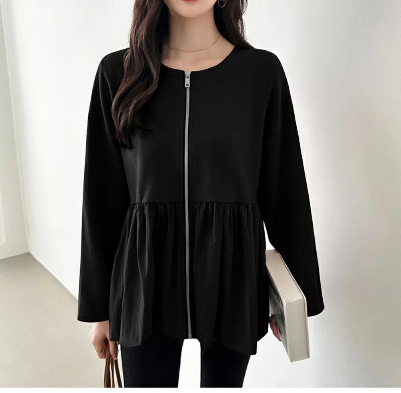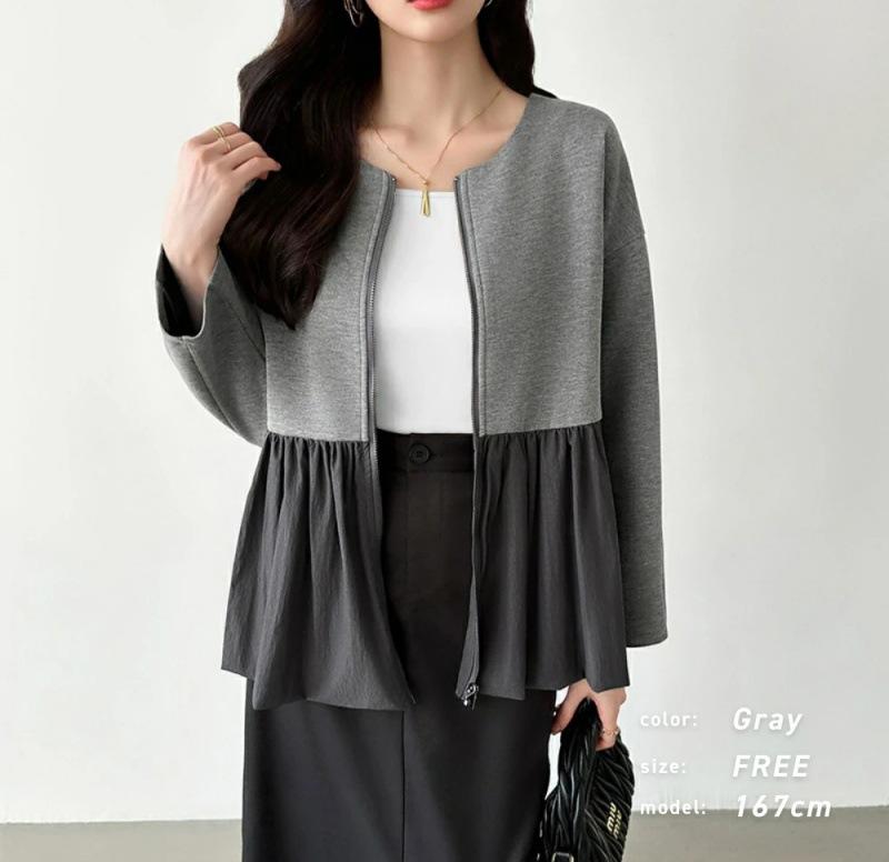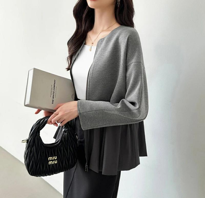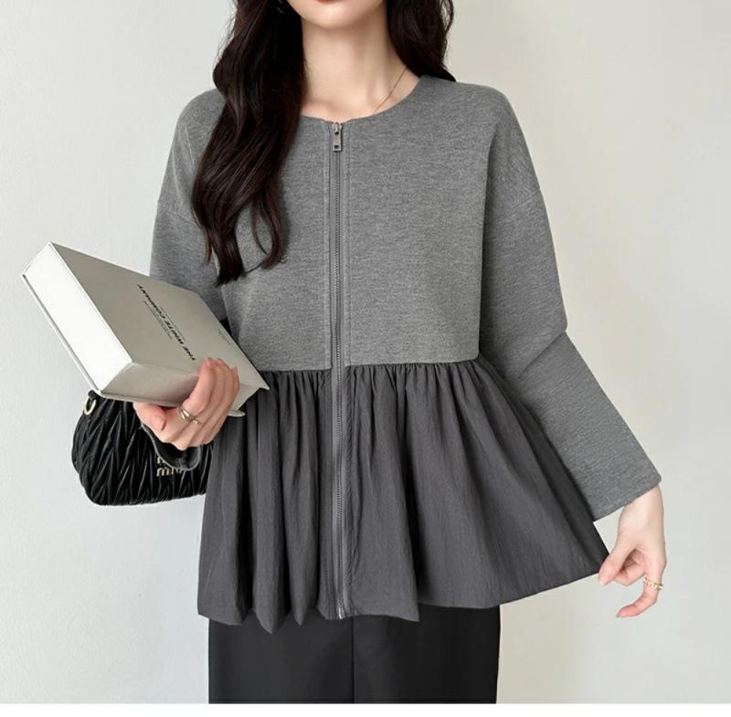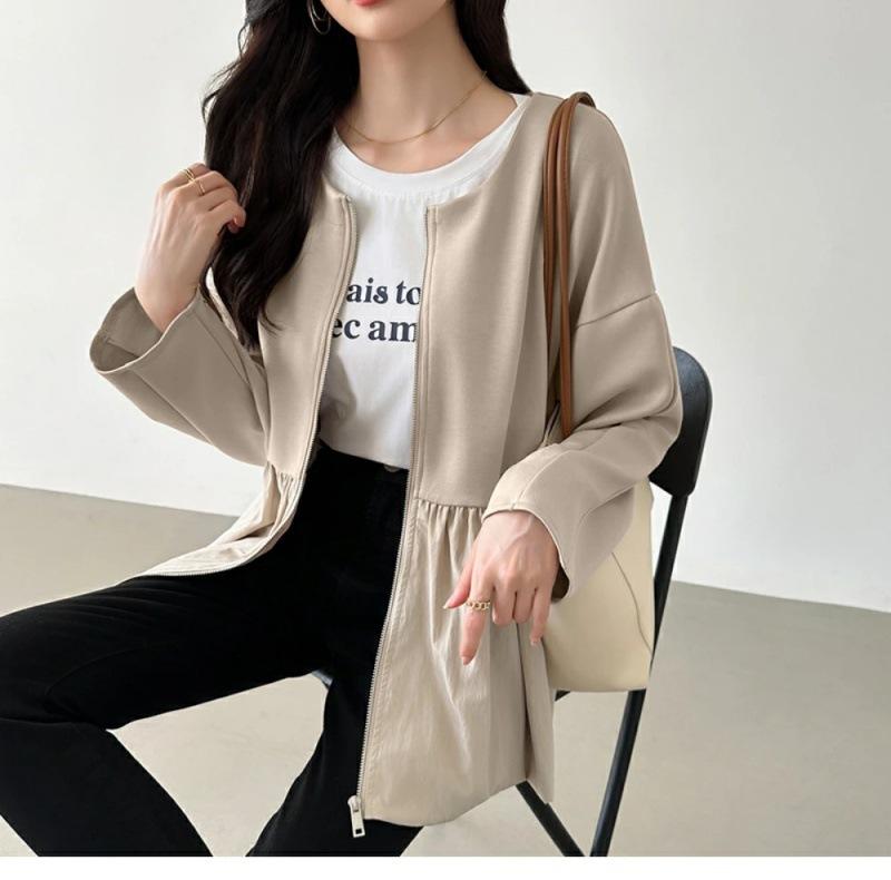 Otoño e invierno 2025 nueva ropa japonesa y coreana para mujer costuras en contraste cintura manga larga chaqueta ligera abrigo con cremallera top de mujer