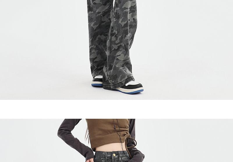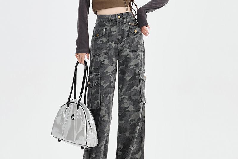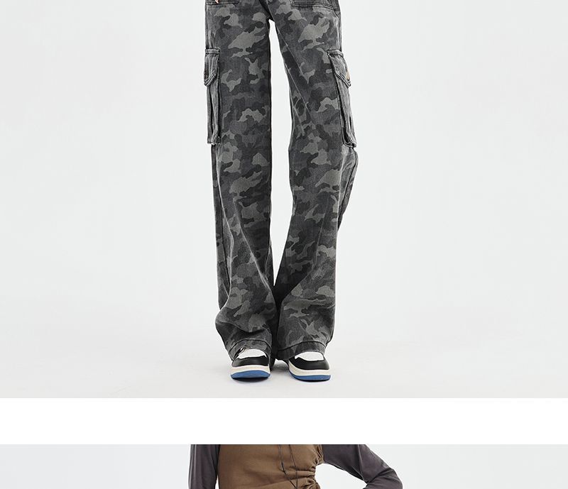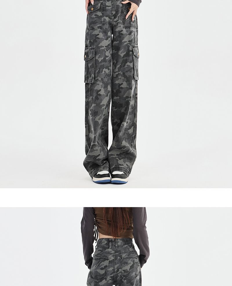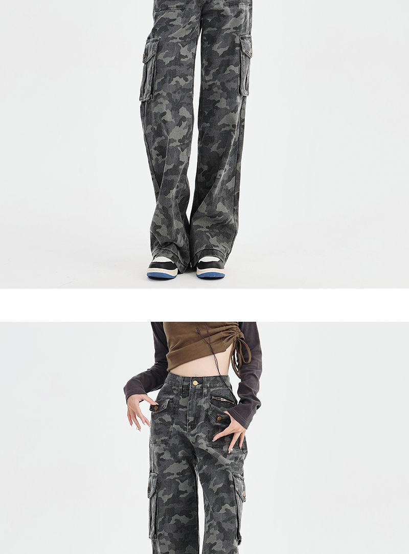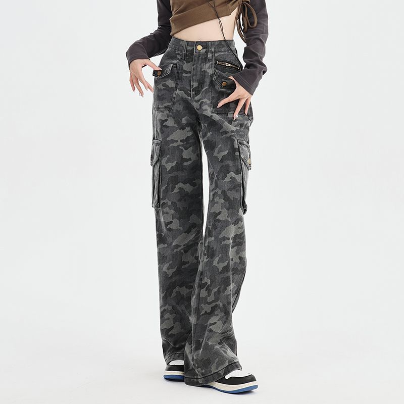 Jeans de Trabajo Camuflaje Forrados para Mujer Spice Girls High Street Multibolsillos Cintura Alta Adelgazantes Pierna Ancha Pantalones Casuales