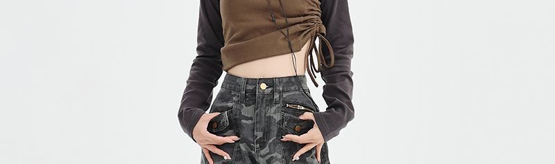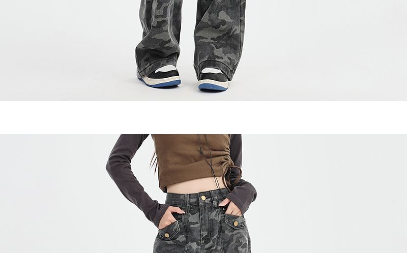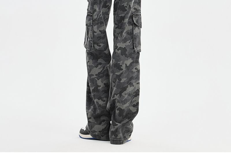 Jeans Cargo Camuflaje Extra Largos Mujer Chica Hot High Street Multibolsillos Cintura Alta Adelgazantes Pierna Ancha Hasta el Piso Pantalones Casuales