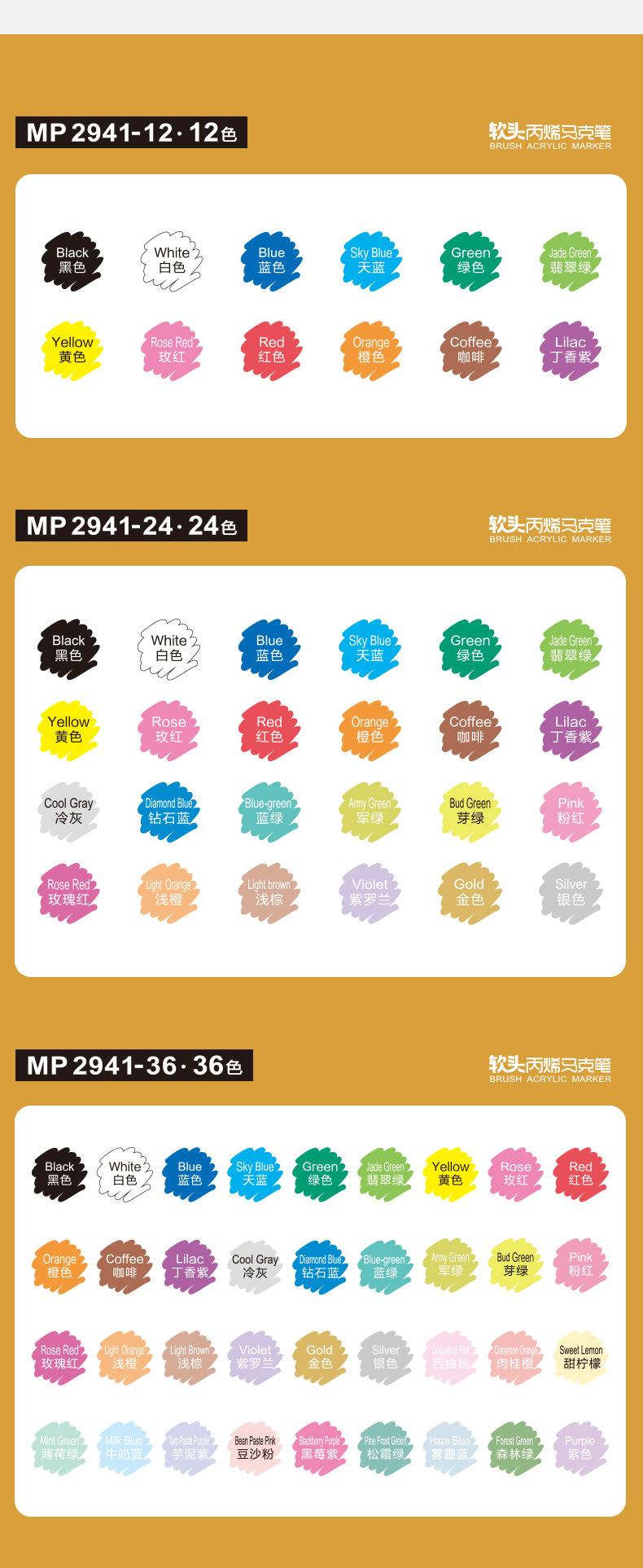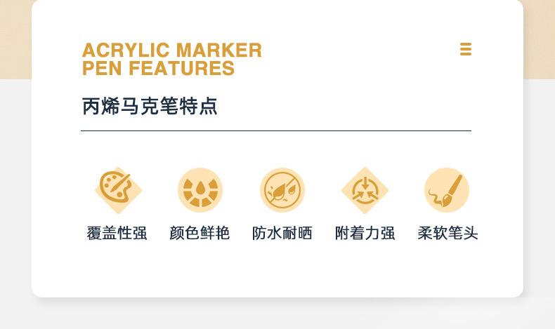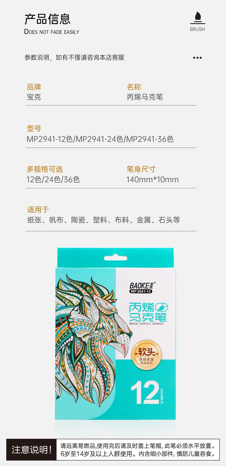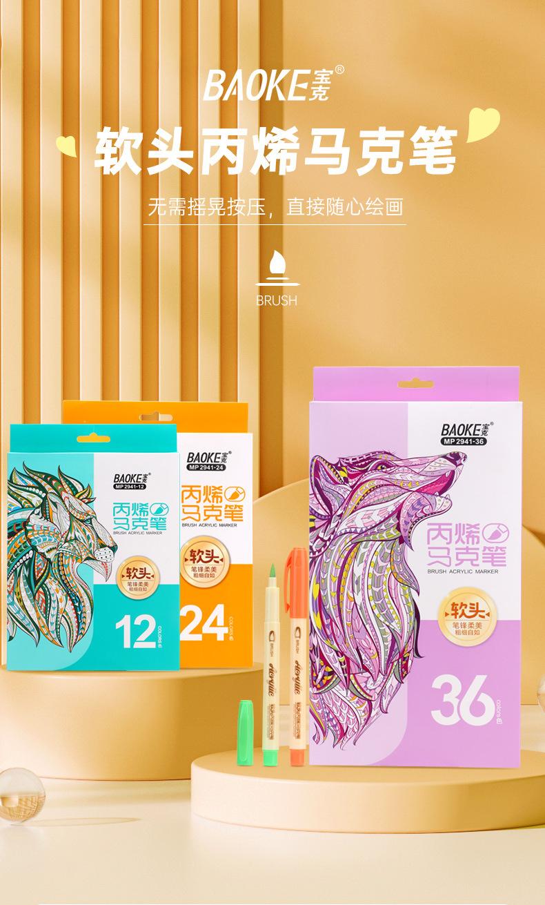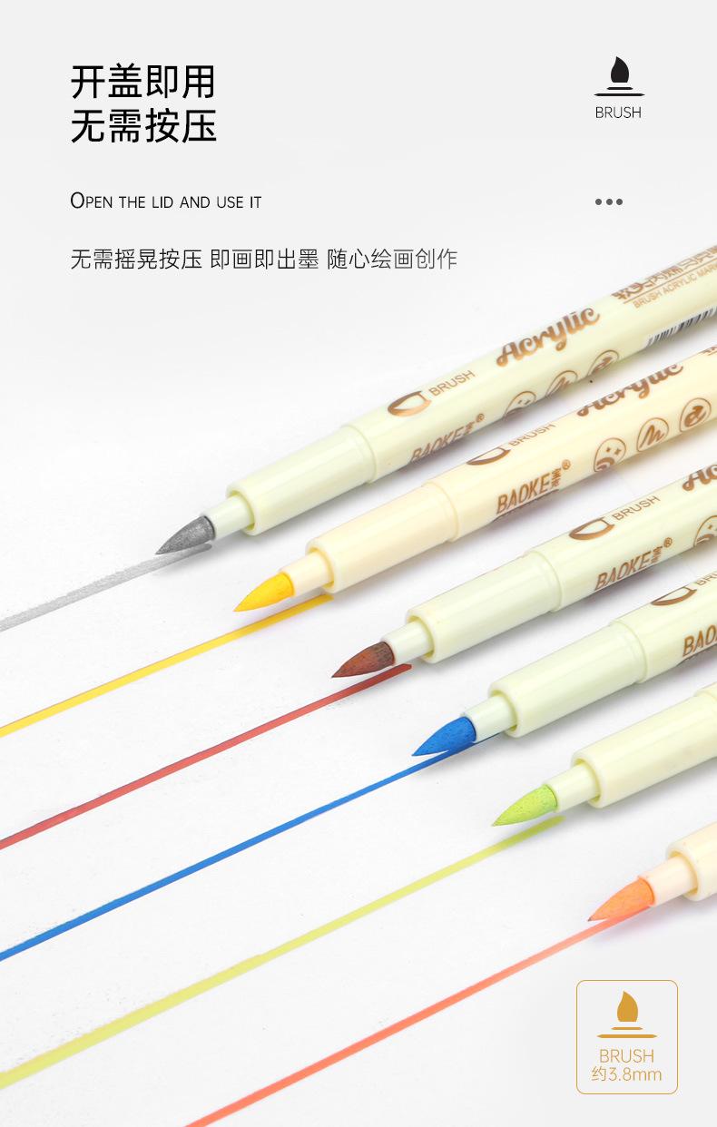 Marcador acrílico Baoke resistente al agua color opaco para niños arte estudiantil pluma pintada a mano 36 colores DIY marcador de punta suave