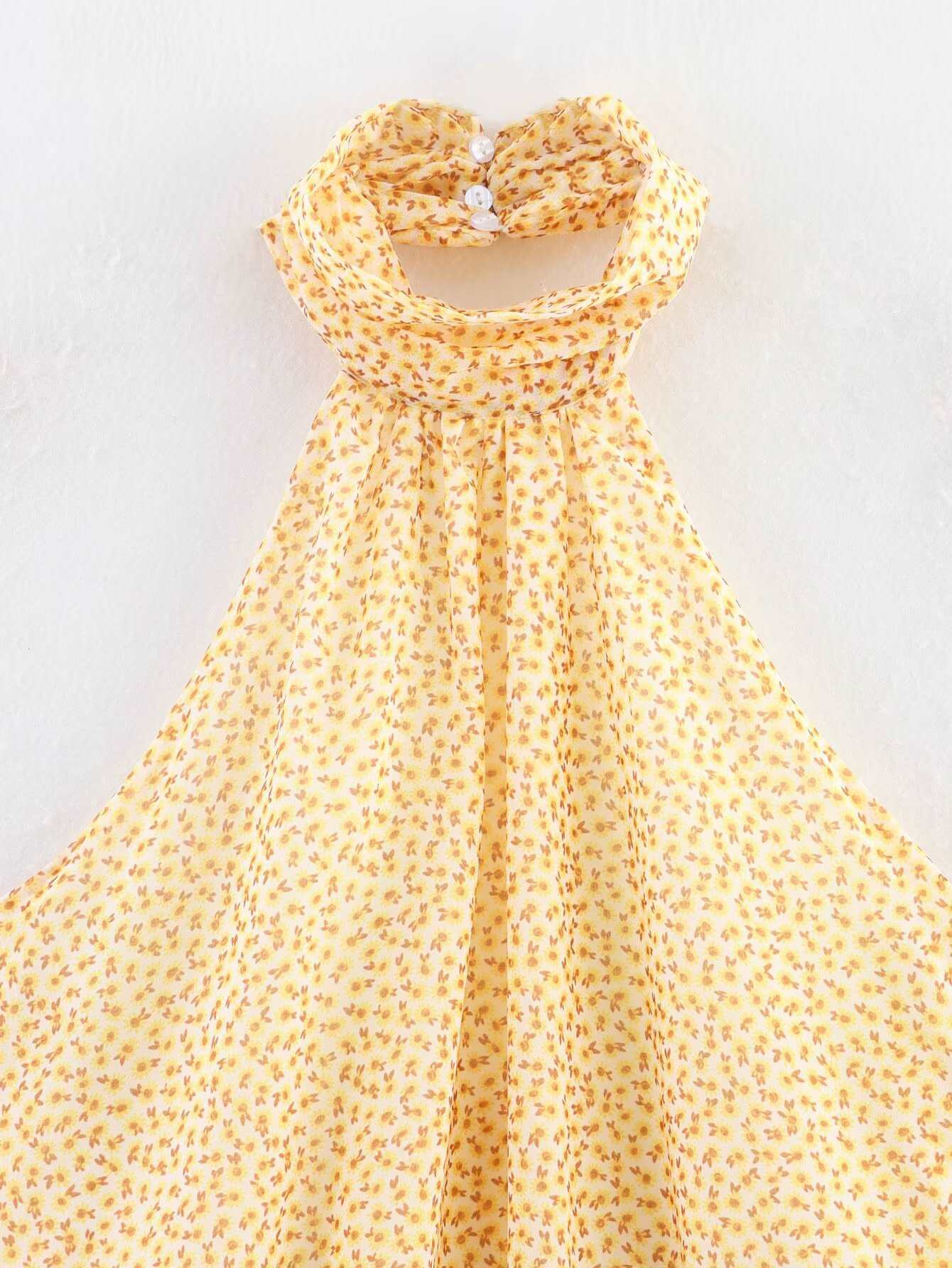 Vestido Corto Decorativo Transfronterizo Halter Estampado Sin Espalda Venta al por Mayor en Capas Nuevo Verano Estilo Europeo y Americano