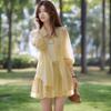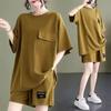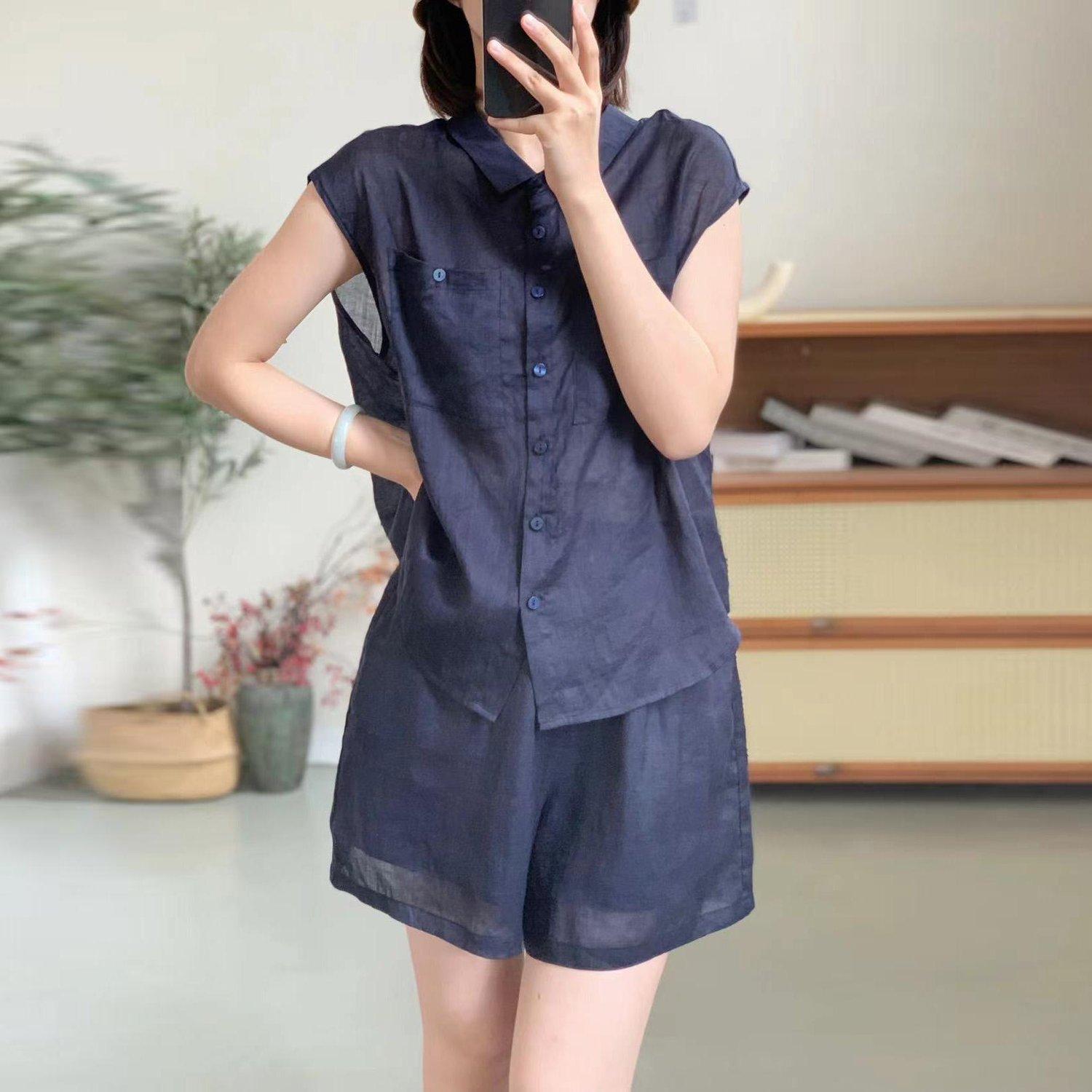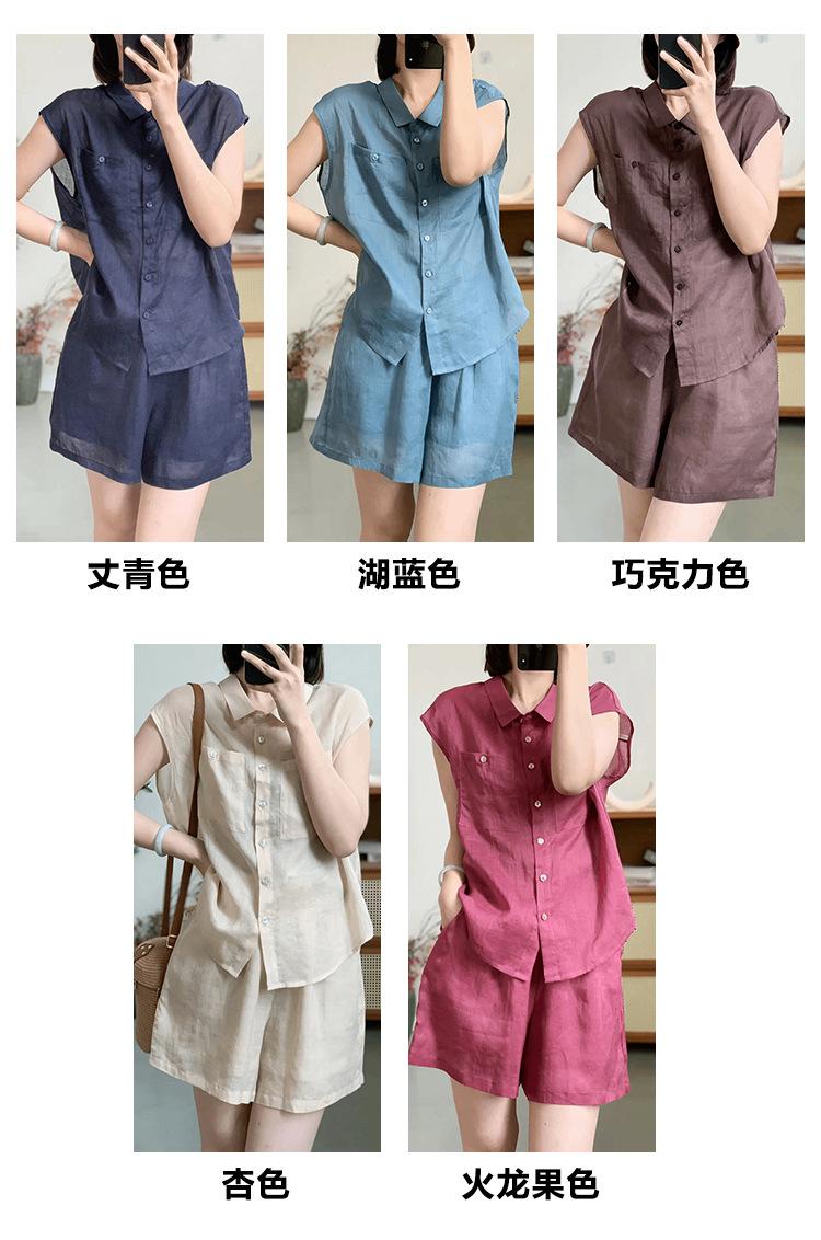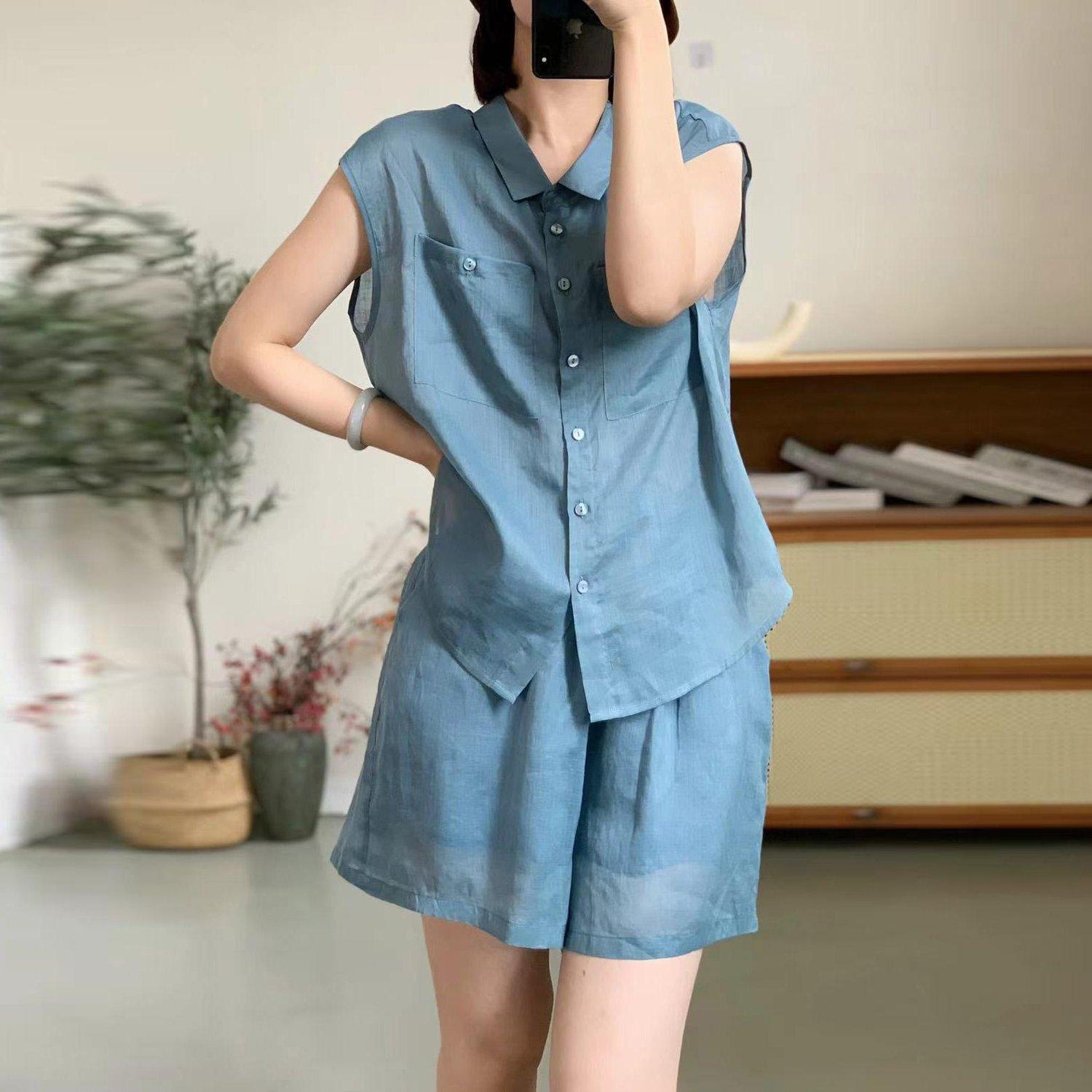 Traje Deportivo Casual Europeo de Alta Gama para Mujer 2025 Nuevo Verano Camisa de Lino de Manga Volante Shorts Conjunto de Dos Piezas