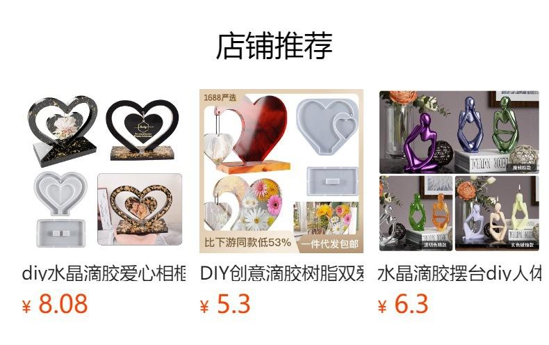 Pegamento de gota diy resina epoxi marco de fotos grande de amor corte de cara marco de fotos molde de silicona joyería punto venta al por mayor