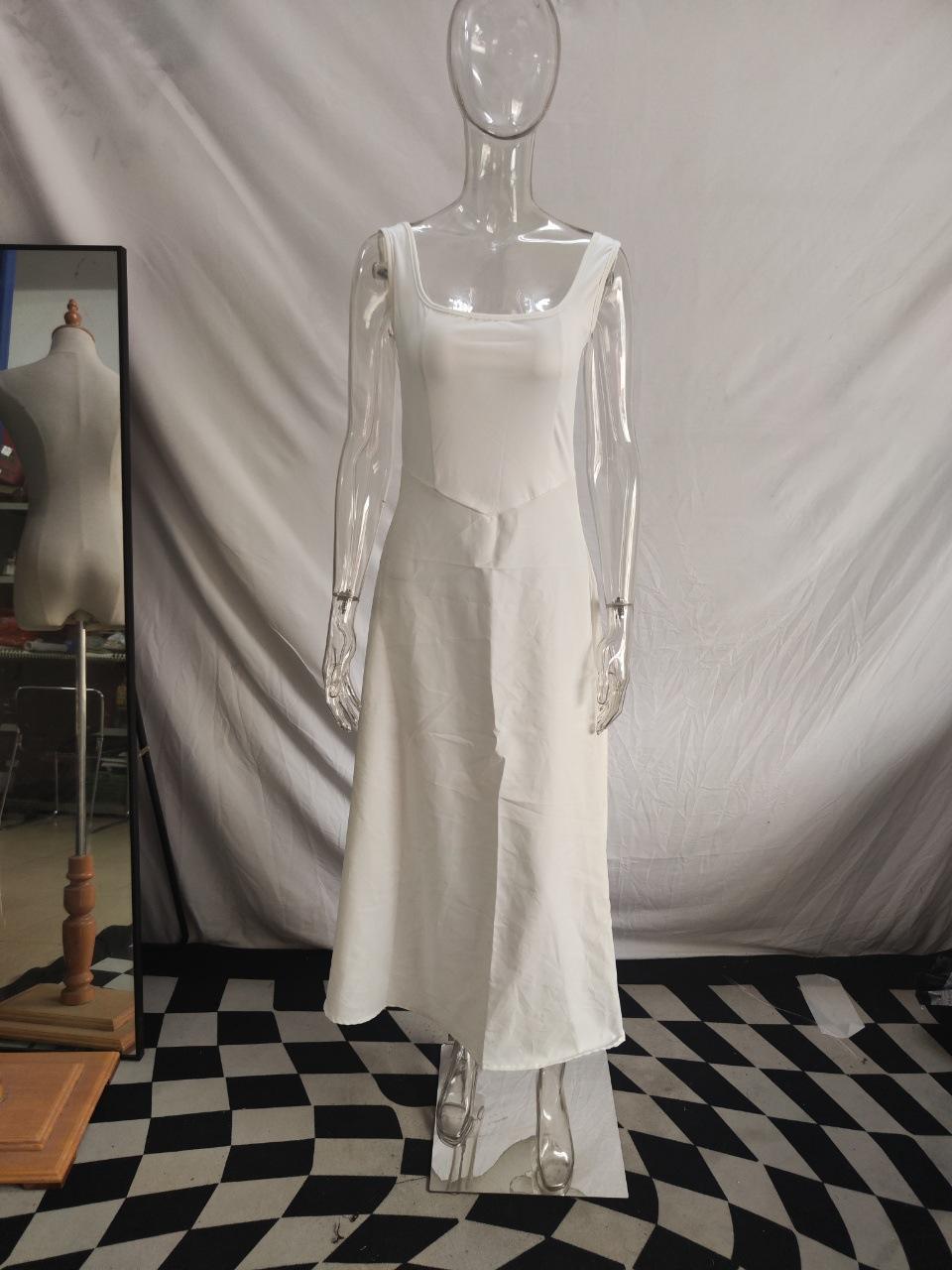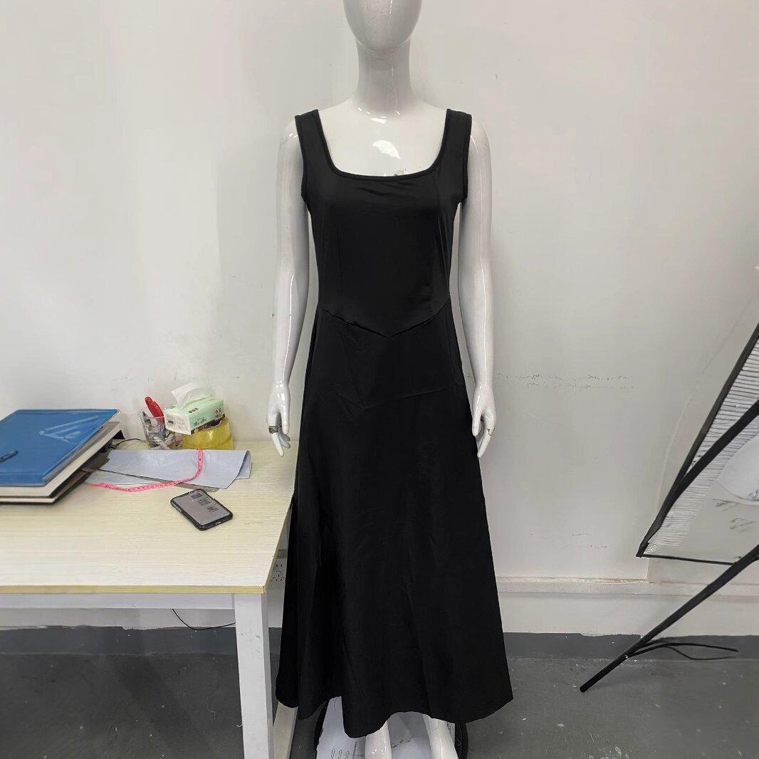 Vestido de Tirantes sin Mangas Casual de Moda Simple de Verano 2025 Estilo Europeo y Americano de Corte Slim con Cuello Cuadrado para Mujer
