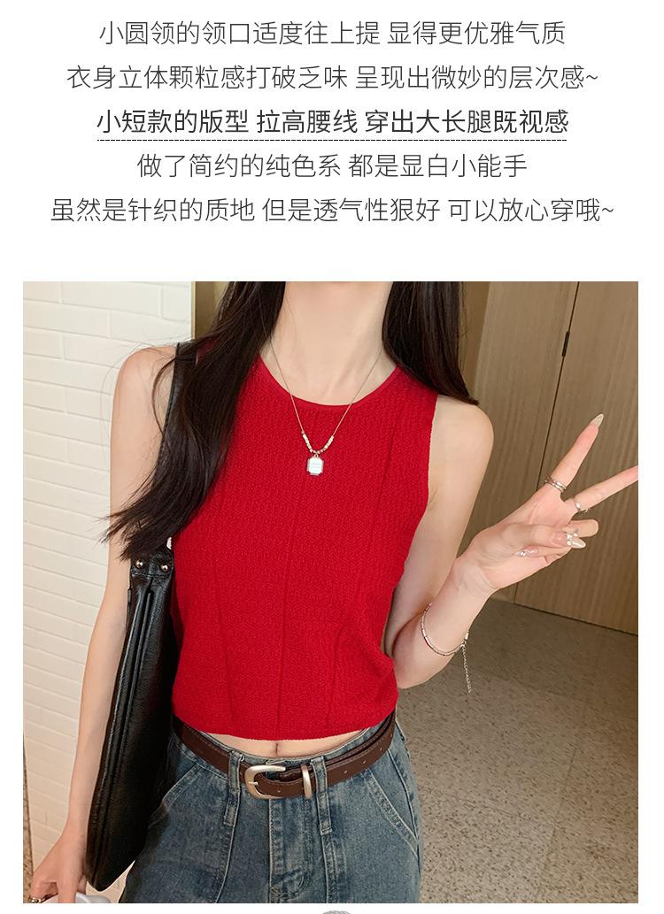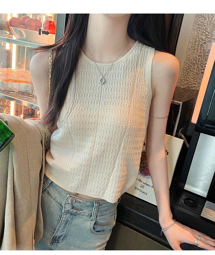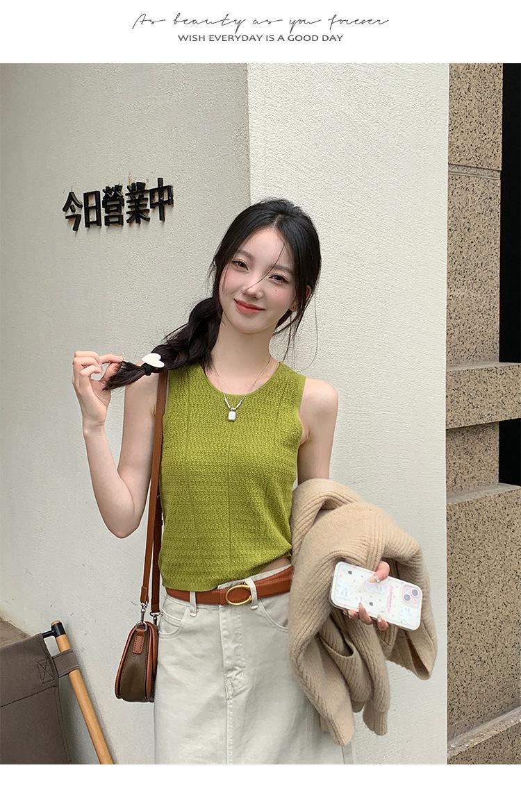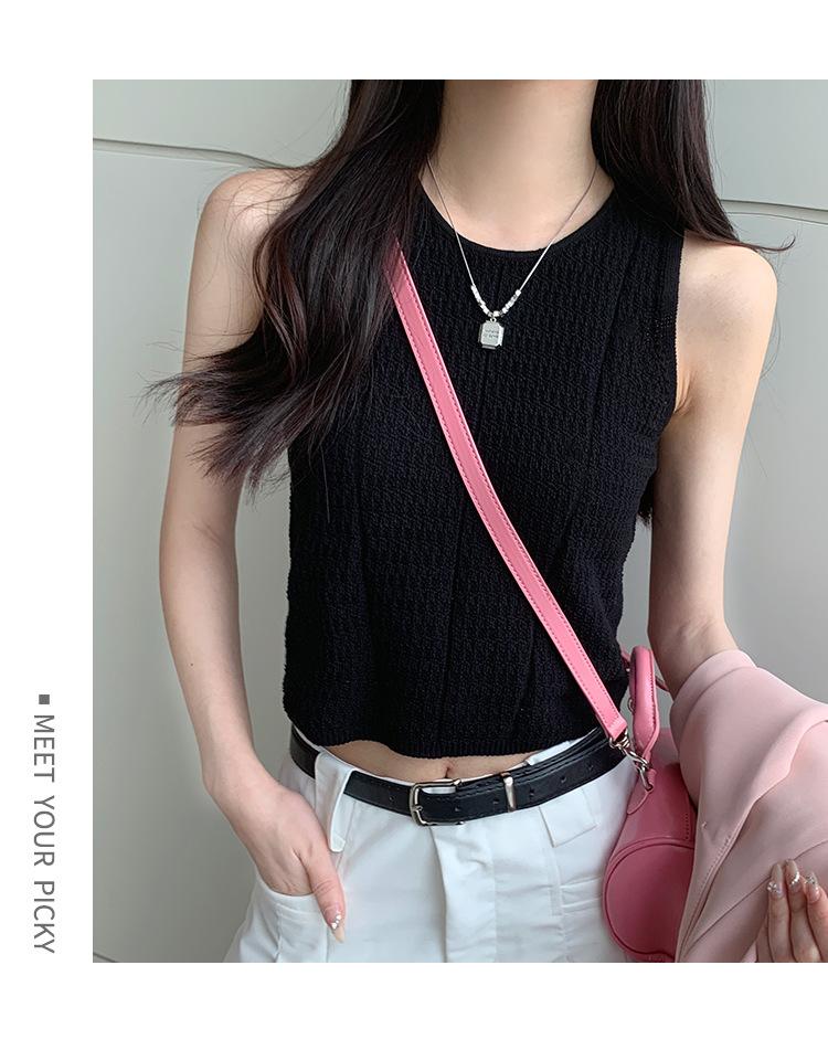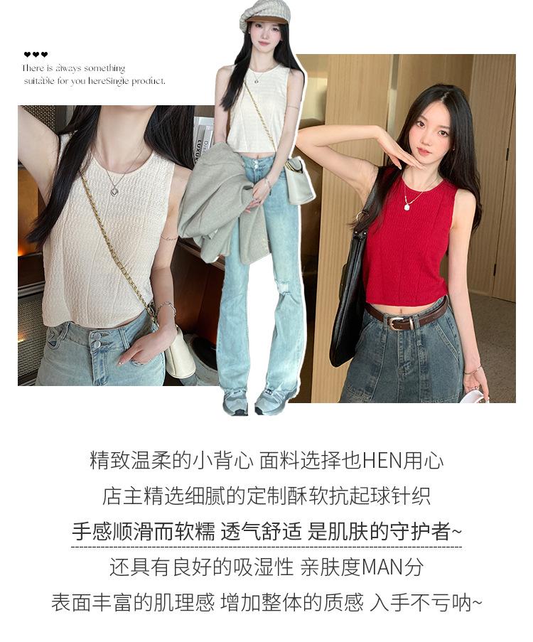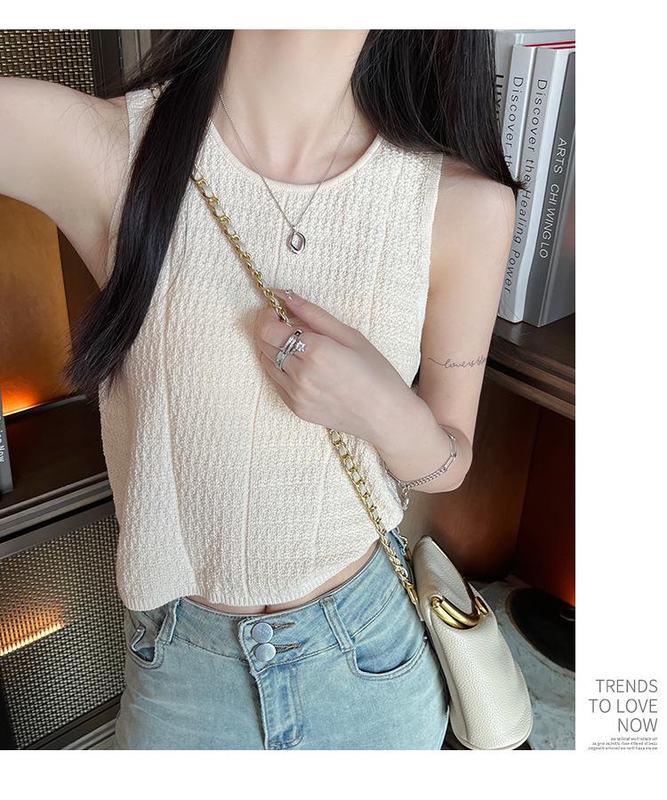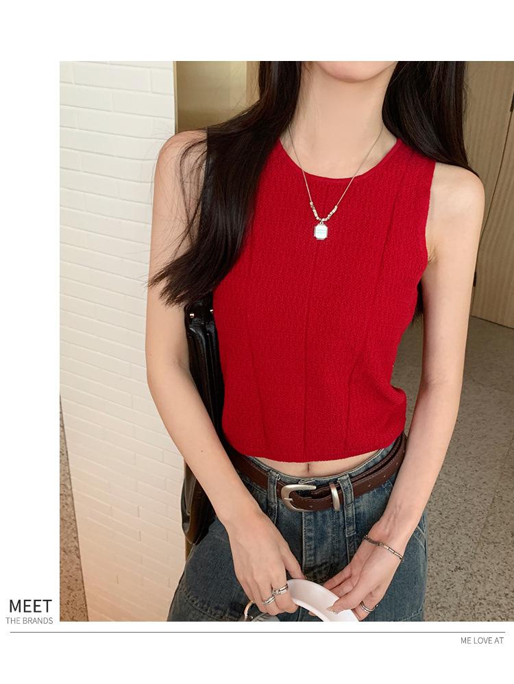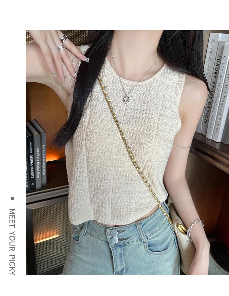 Camisola sin mangas para mujer, diseño delgado de verano, nicho, aspecto adelgazante, color puro, top corto de punto para exportación