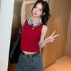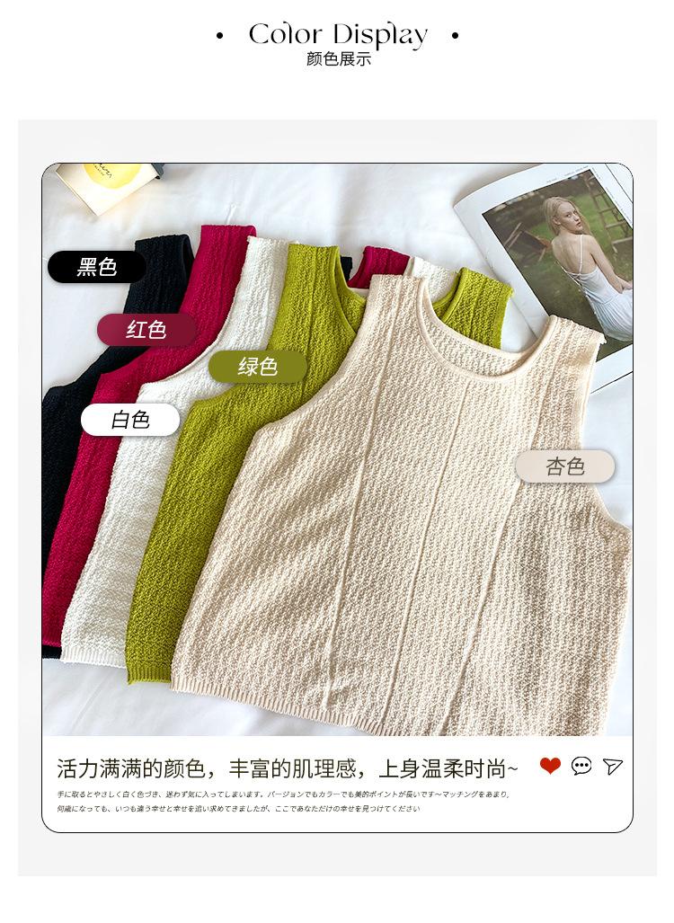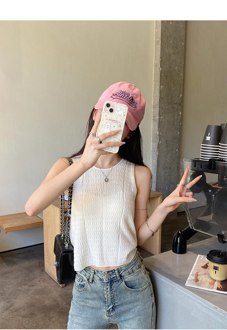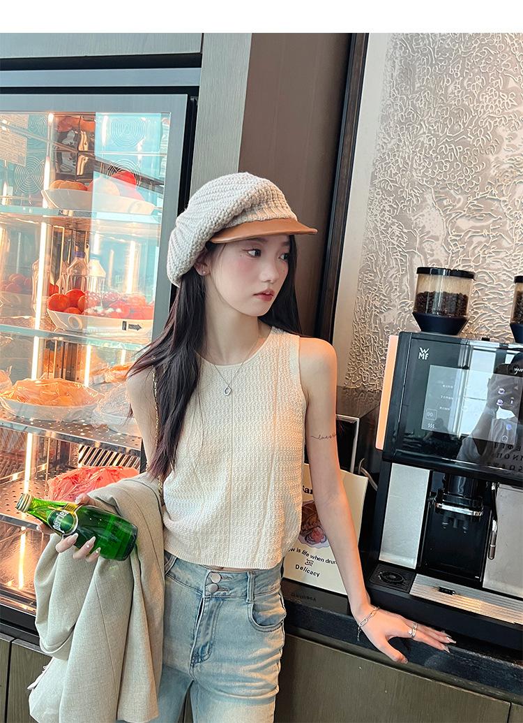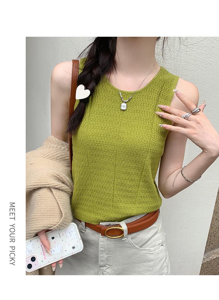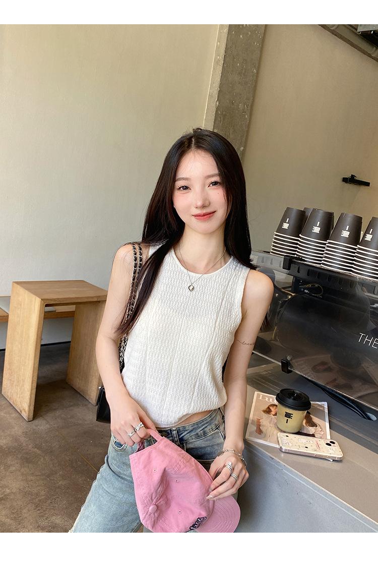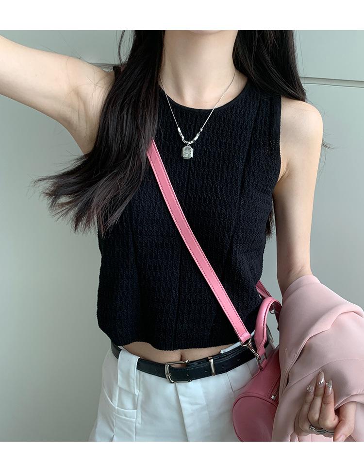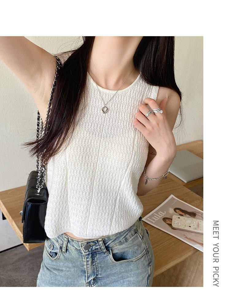 Camisola sin mangas para mujer, diseño delgado de verano, nicho, aspecto adelgazante, color puro, top corto de punto para exportación