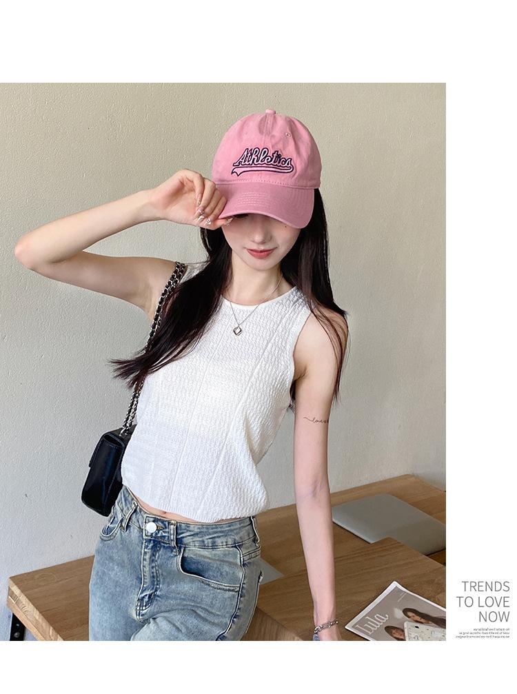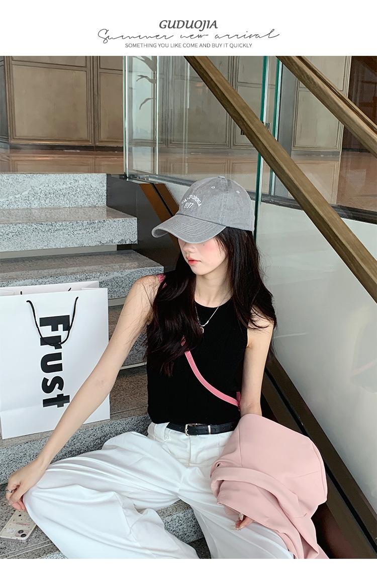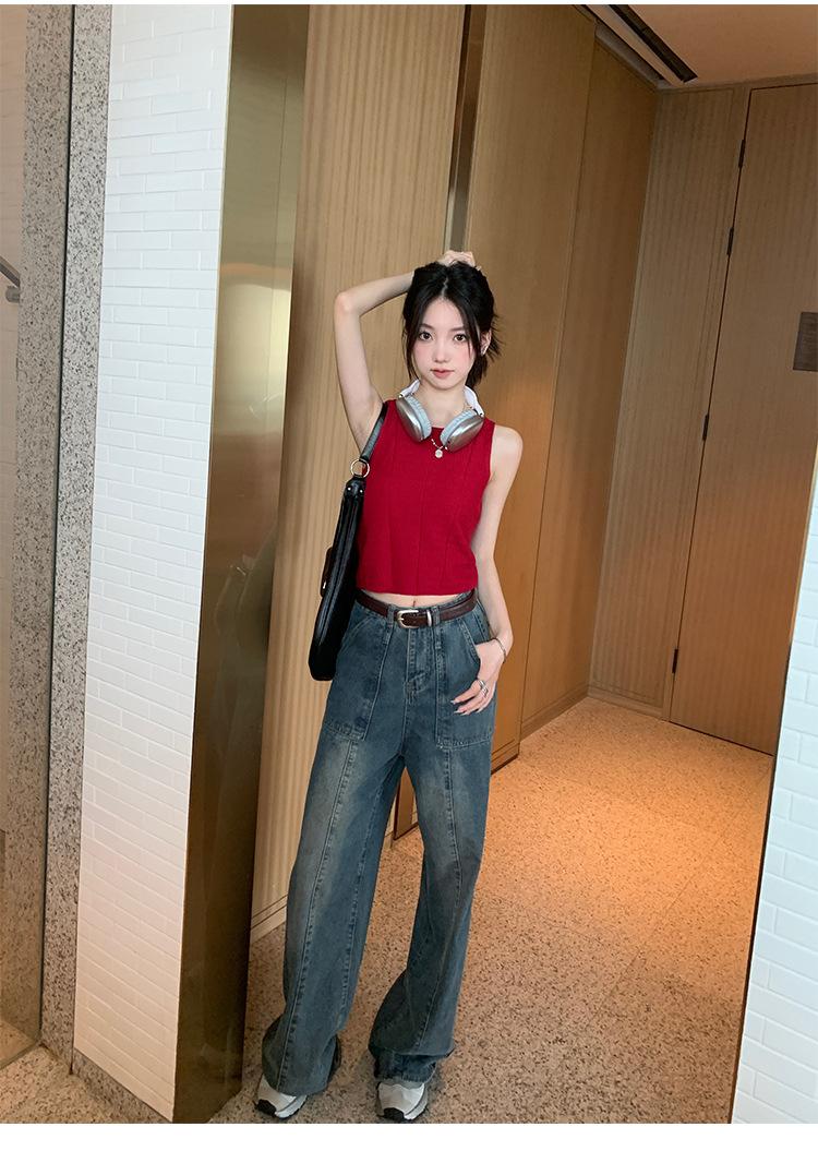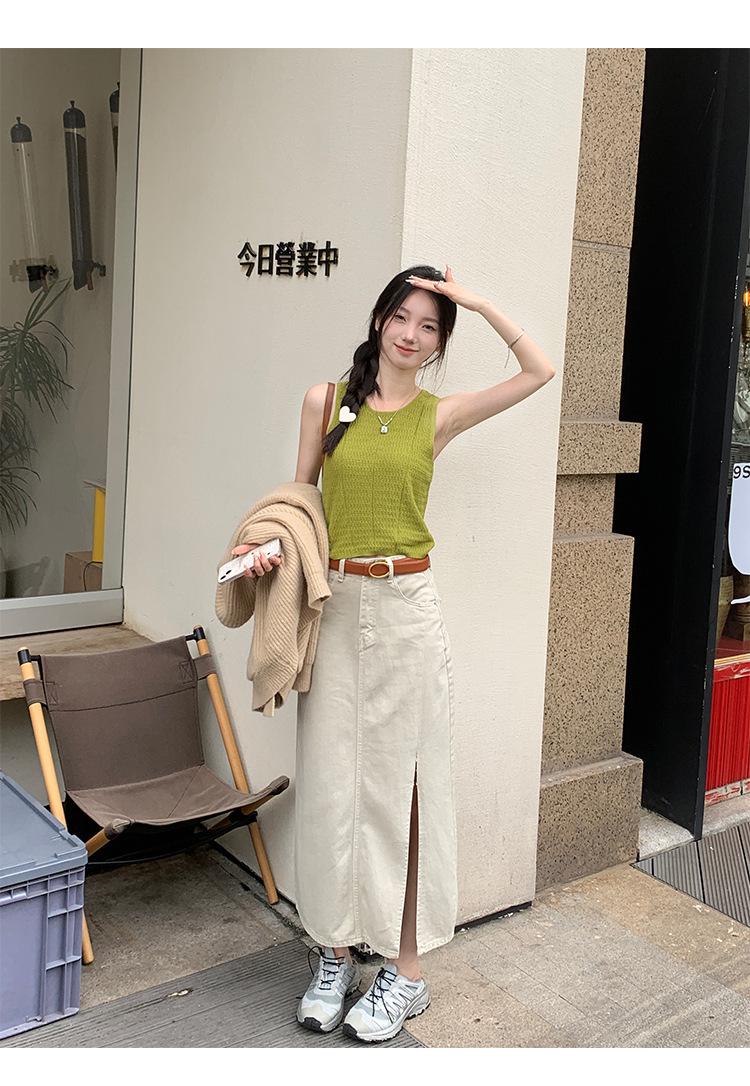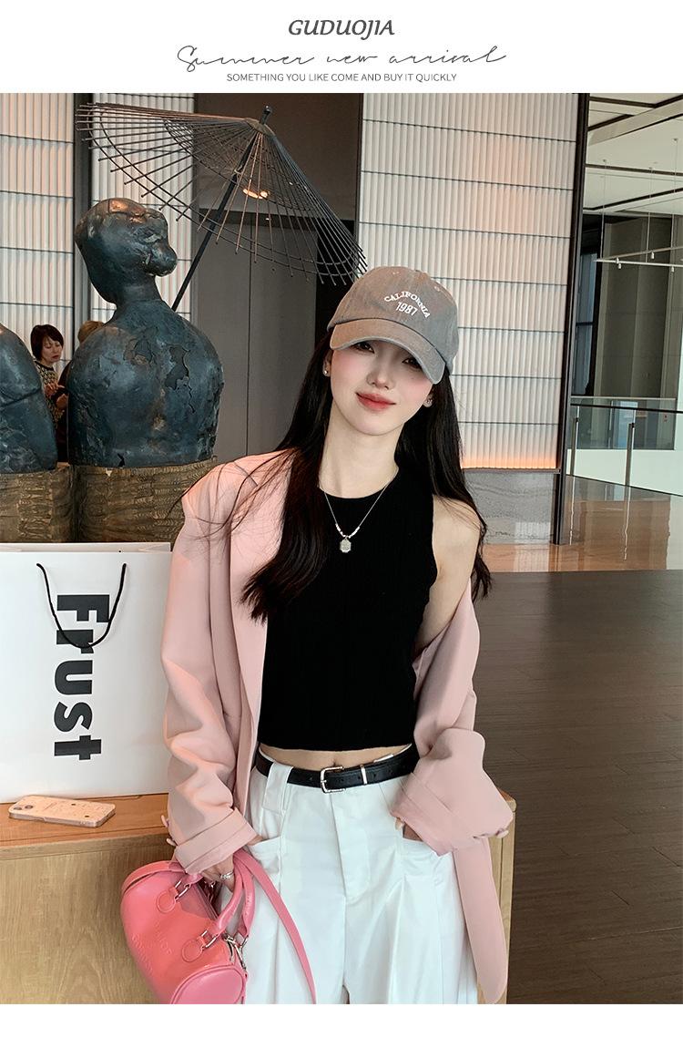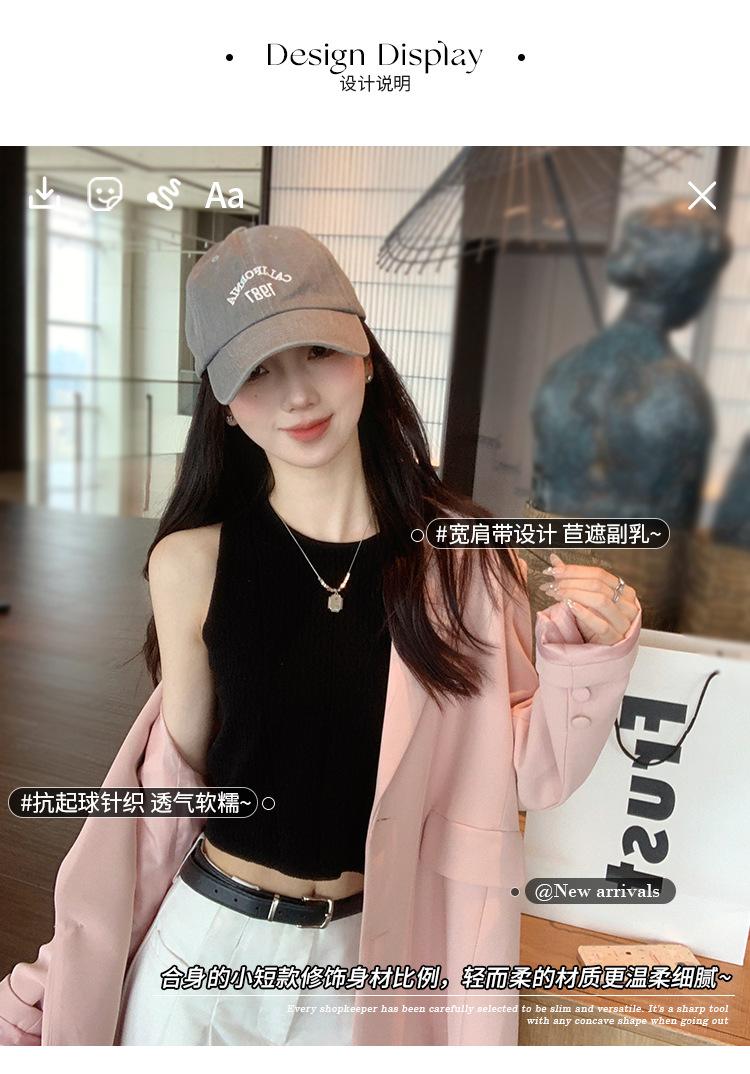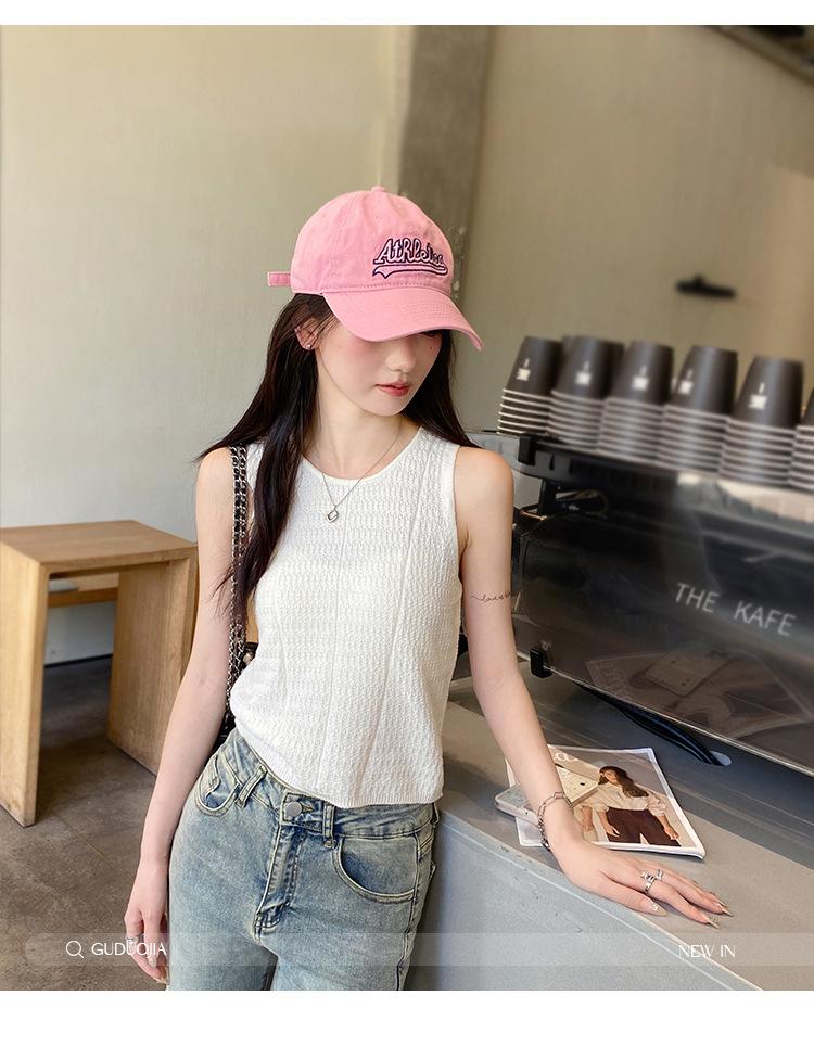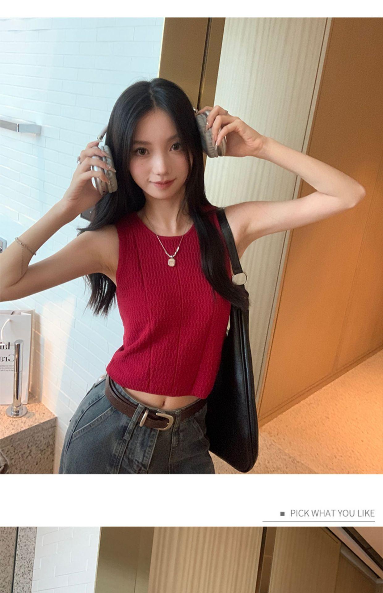 Camisola sin mangas para mujer, diseño delgado de verano, nicho, aspecto adelgazante, color puro, top corto de punto para exportación