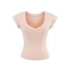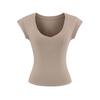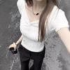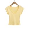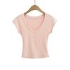 Playera de Temperamento de Deseo Puro con Cuello en V y Manga Corta para Mujer Verano 2025 Corte Ajustado Adelgazante Chica Caliente Corta Cropped Color Sólido Top