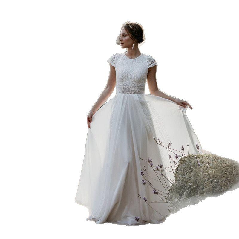 Amazon Comercio Exterior Vestido de Novia Novia Estilo Bosque Sencillo Ligero Vestido de Novia Compromiso Elegante Elegante Vestido Largo Blanco