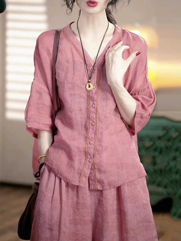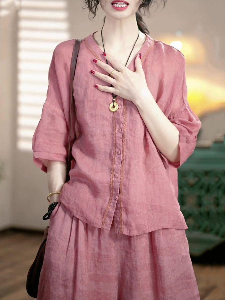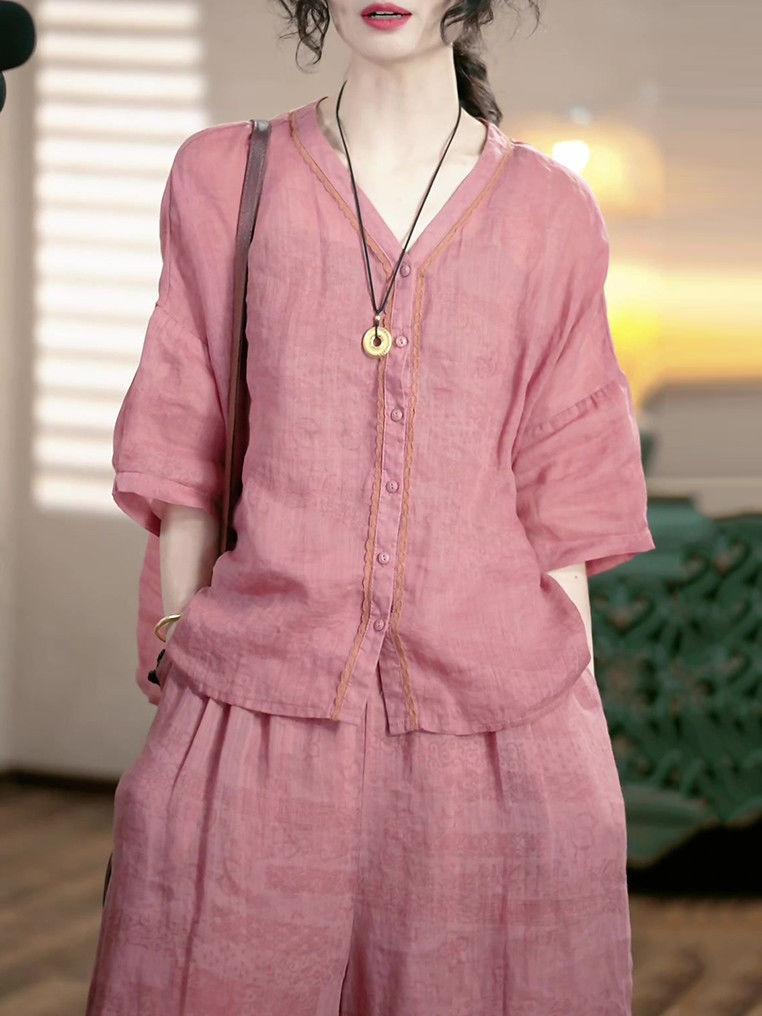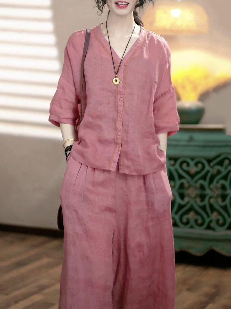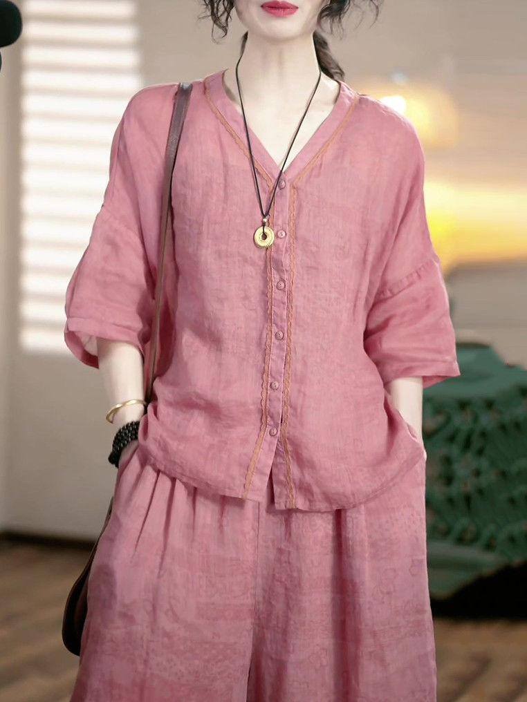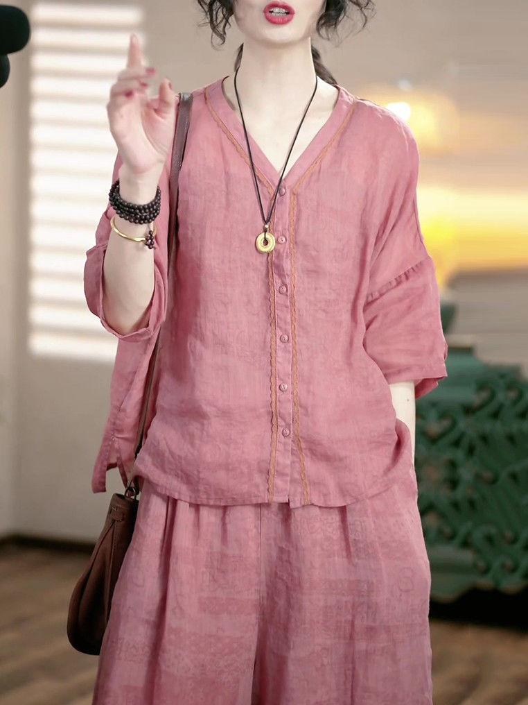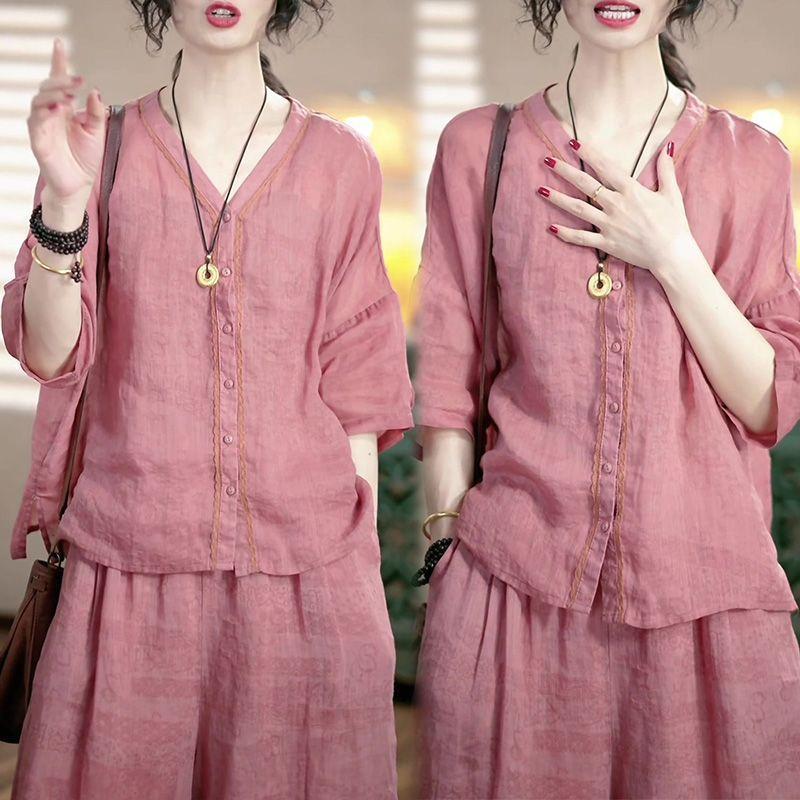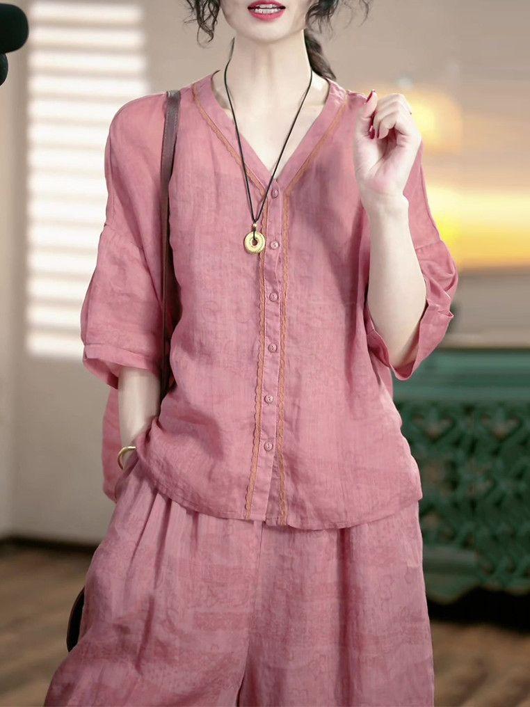 Conjunto de Moda de Lujo Ligero de Alta Gama Reductor de Edad Primavera Verano Nuevo Estilo Holgado Adelgazante Versátil Top + Pantalón