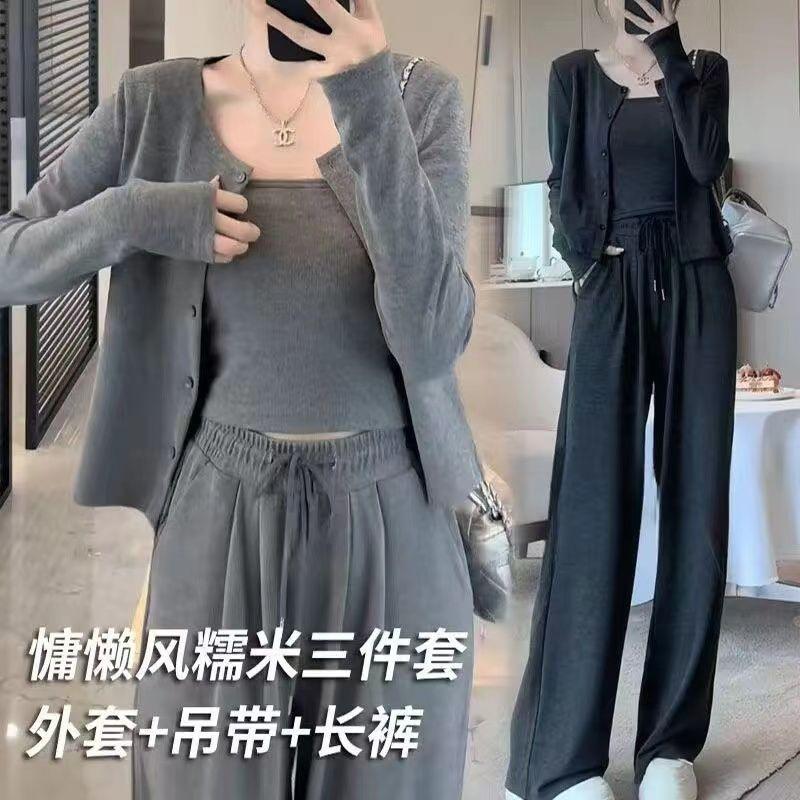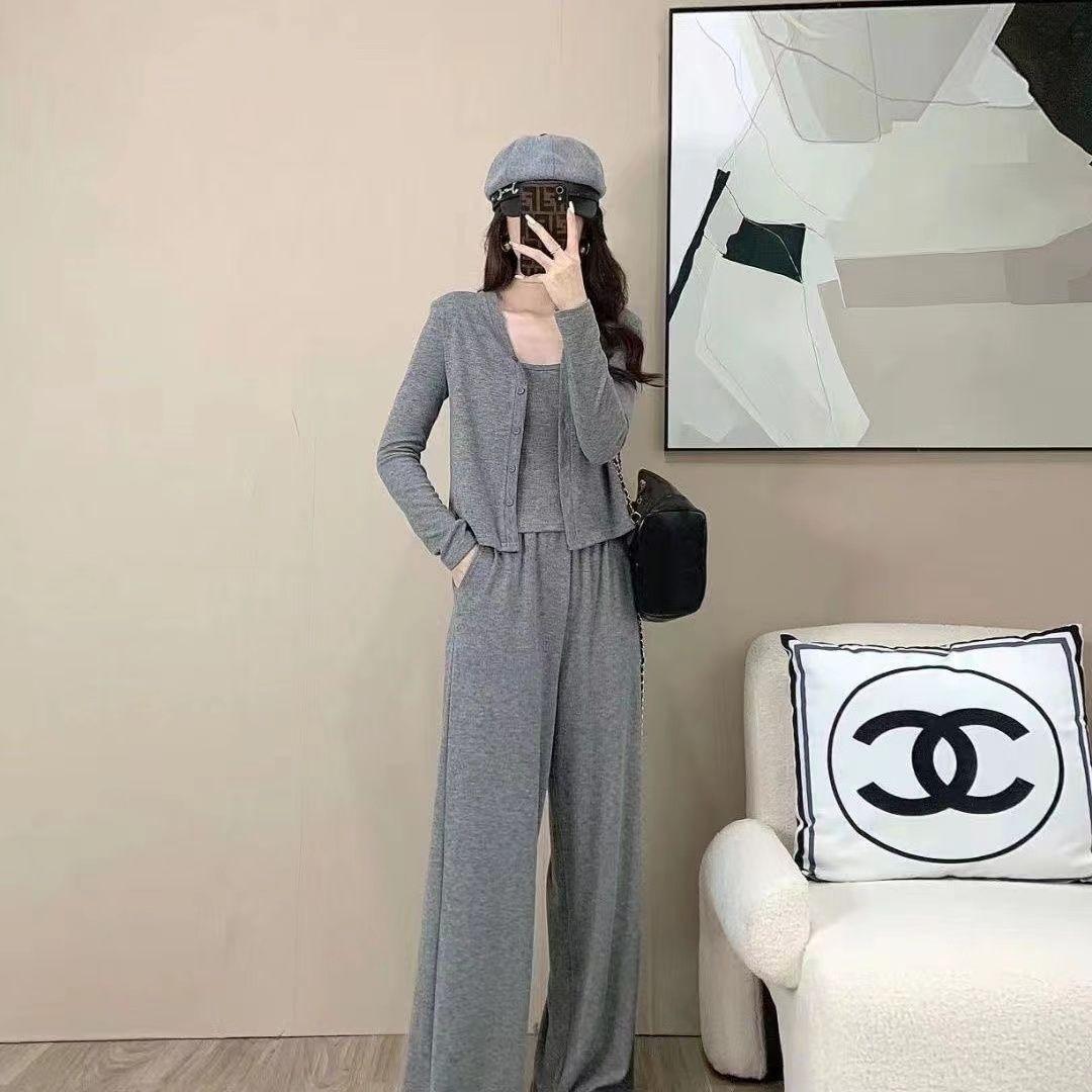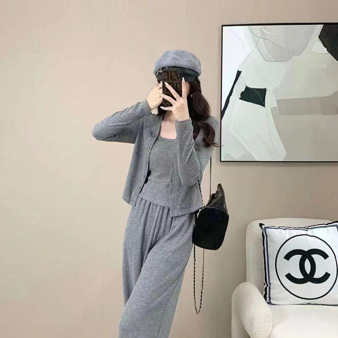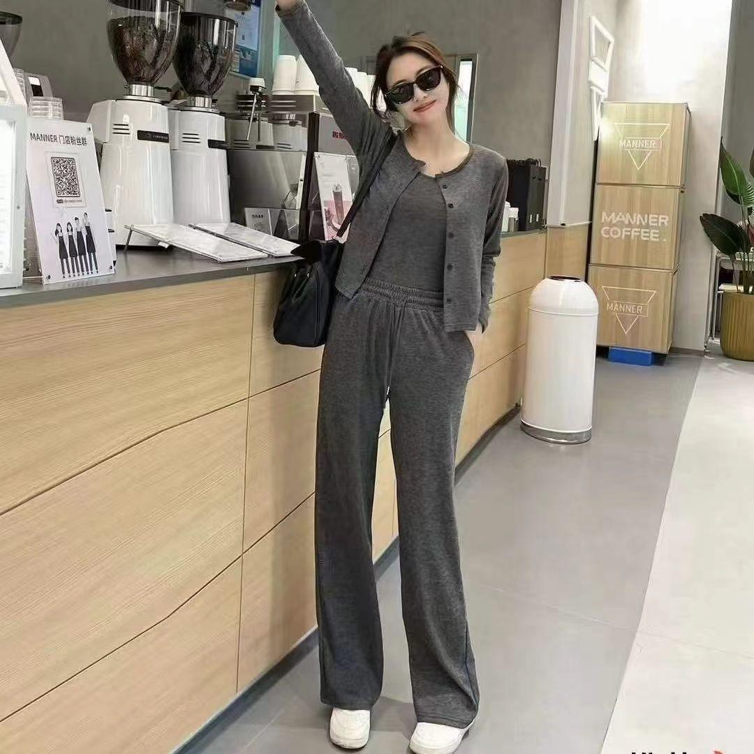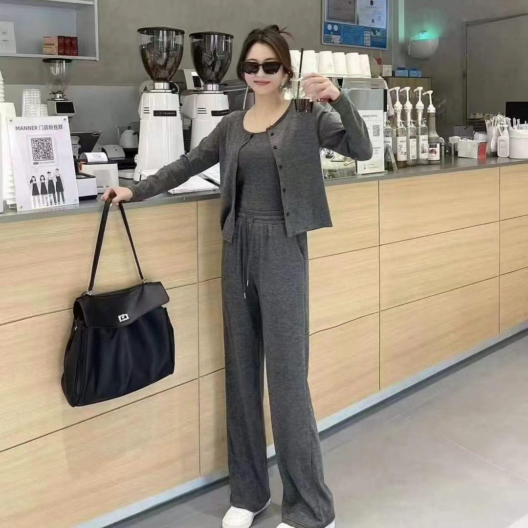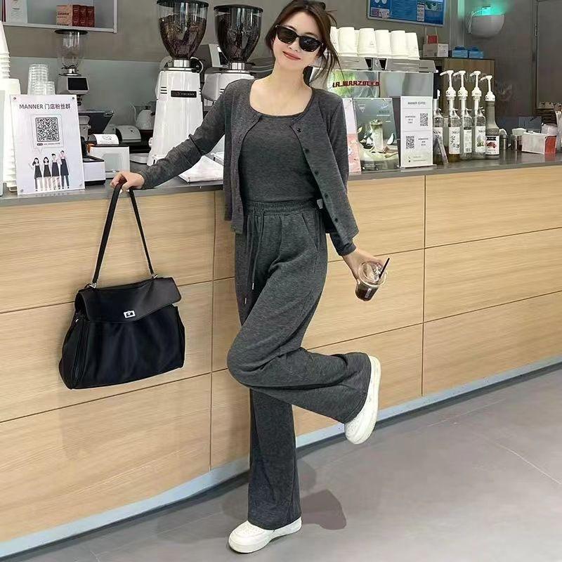 Traje de Tres Piezas de Primavera y Otoño para Mujer, Traje Deportivo Casual, Versátil, Adelgazante, Holgado, Juvenil, Pantalones de Manga Larga, Traje para el Hogar