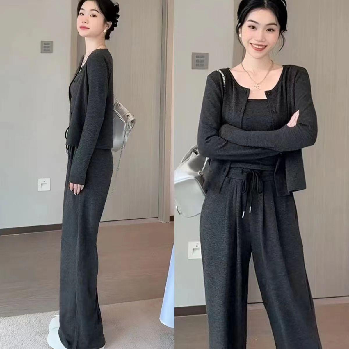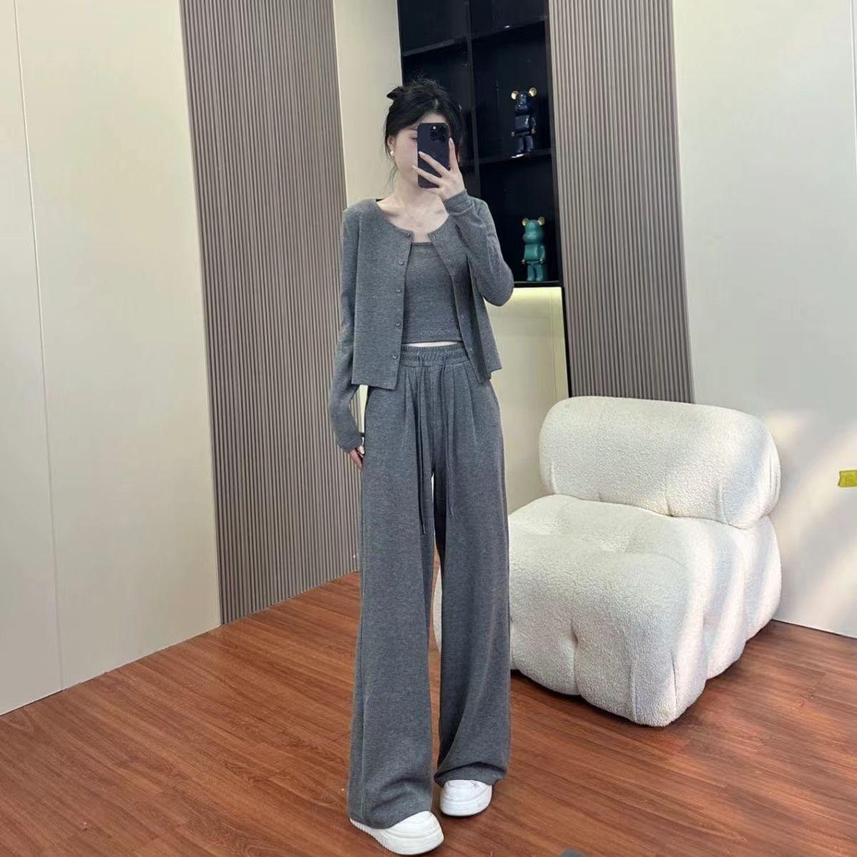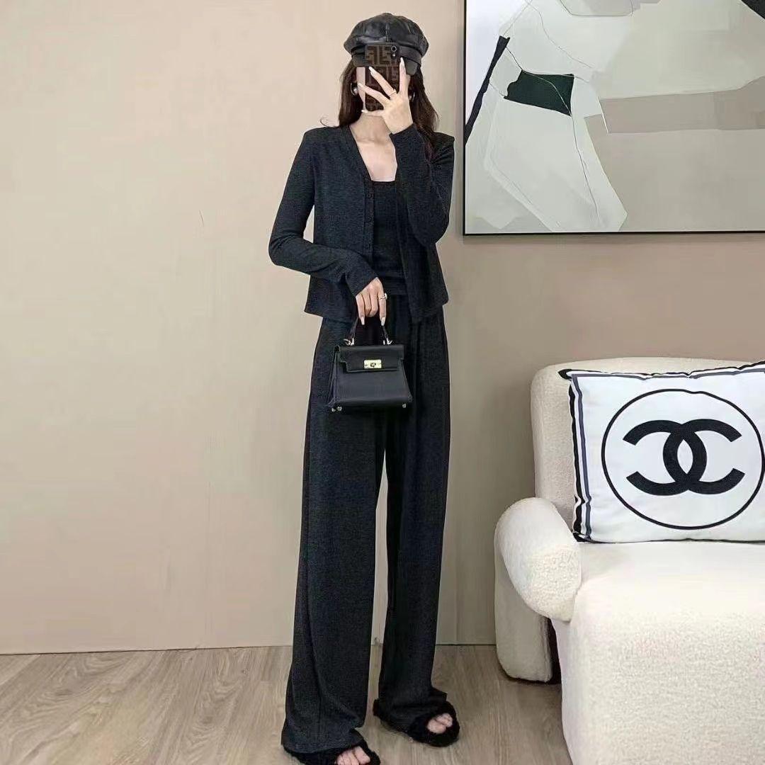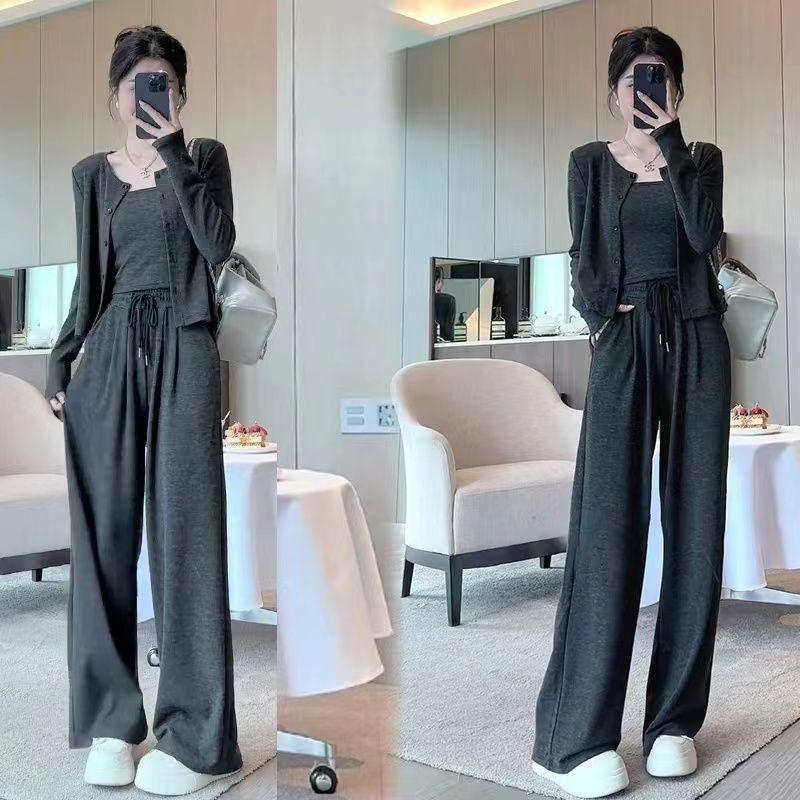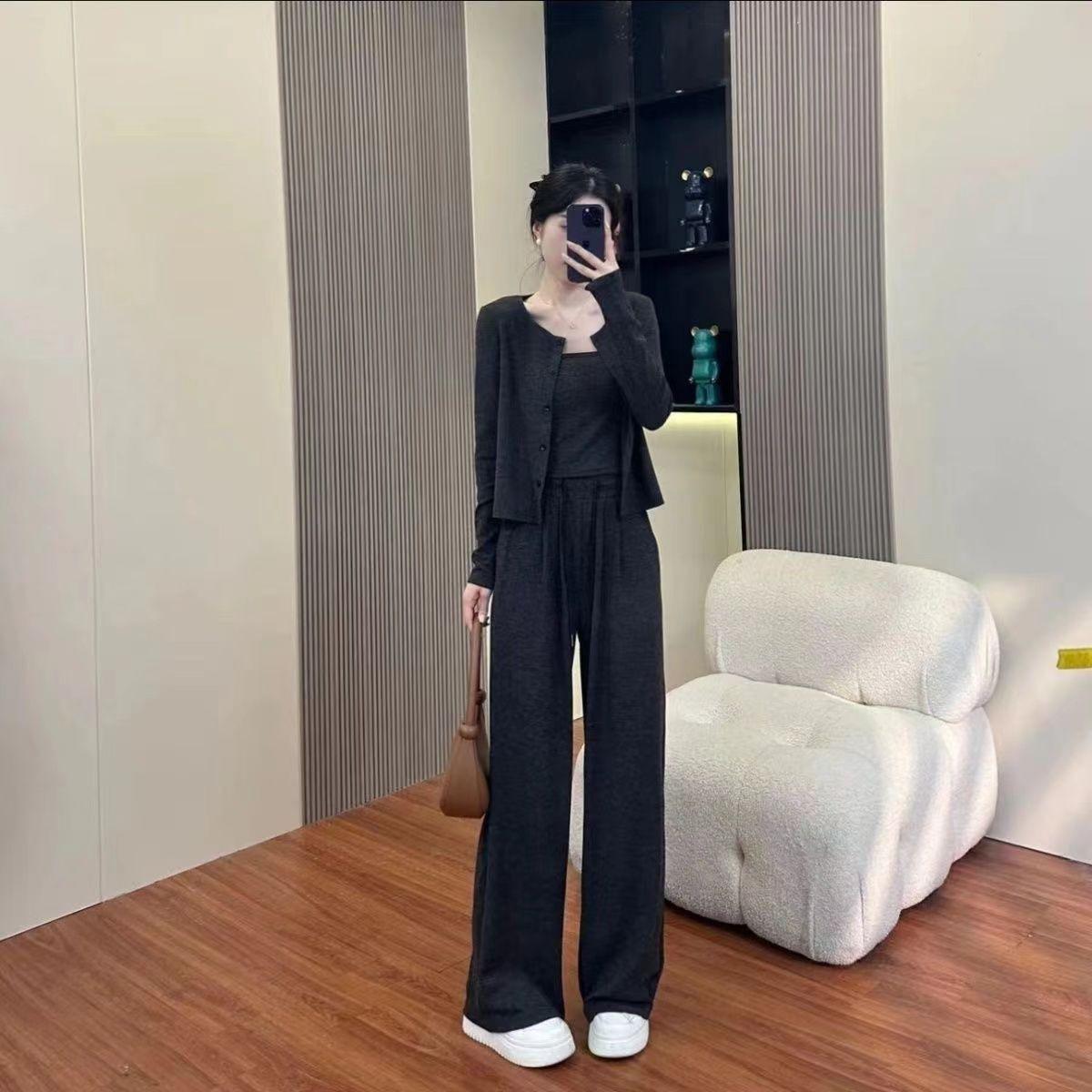 Traje de Tres Piezas de Primavera y Otoño para Mujer, Traje Deportivo Casual, Versátil, Adelgazante, Holgado, Juvenil, Pantalones de Manga Larga, Traje para el Hogar