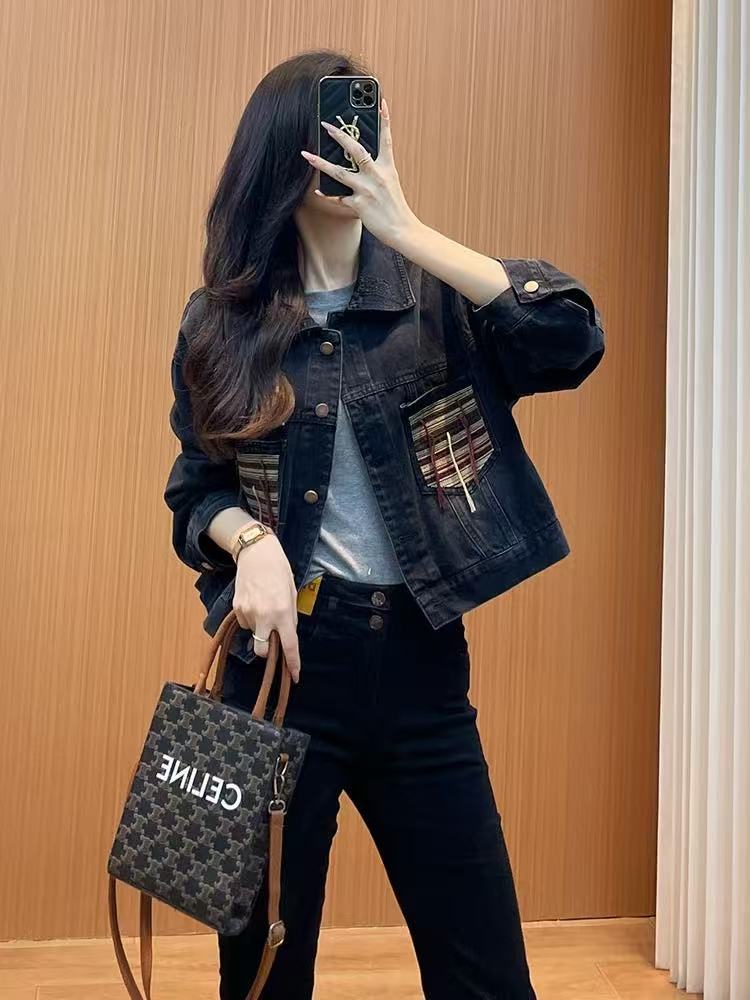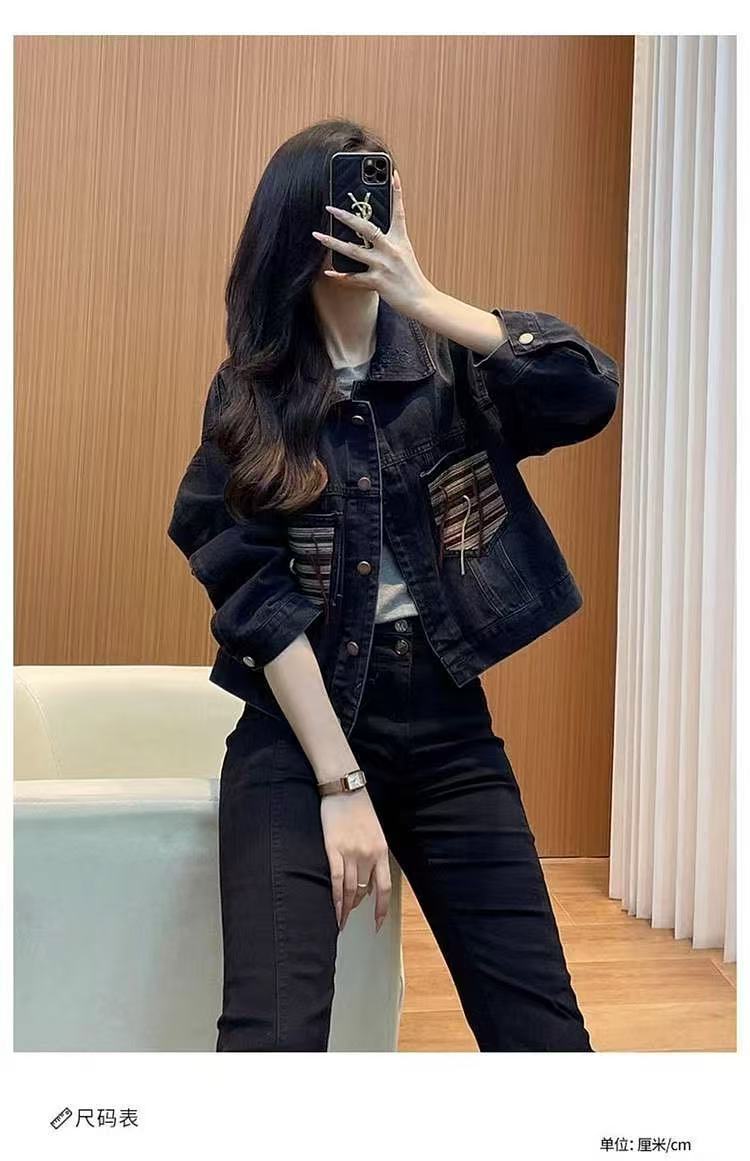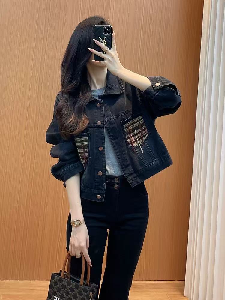 Chaqueta Corta de Mezclilla Negra para Mujer 2025 Primavera Nuevo Estilo Coreano Holgada Versátil Chaqueta Casual Adelgazante Top para Mujer