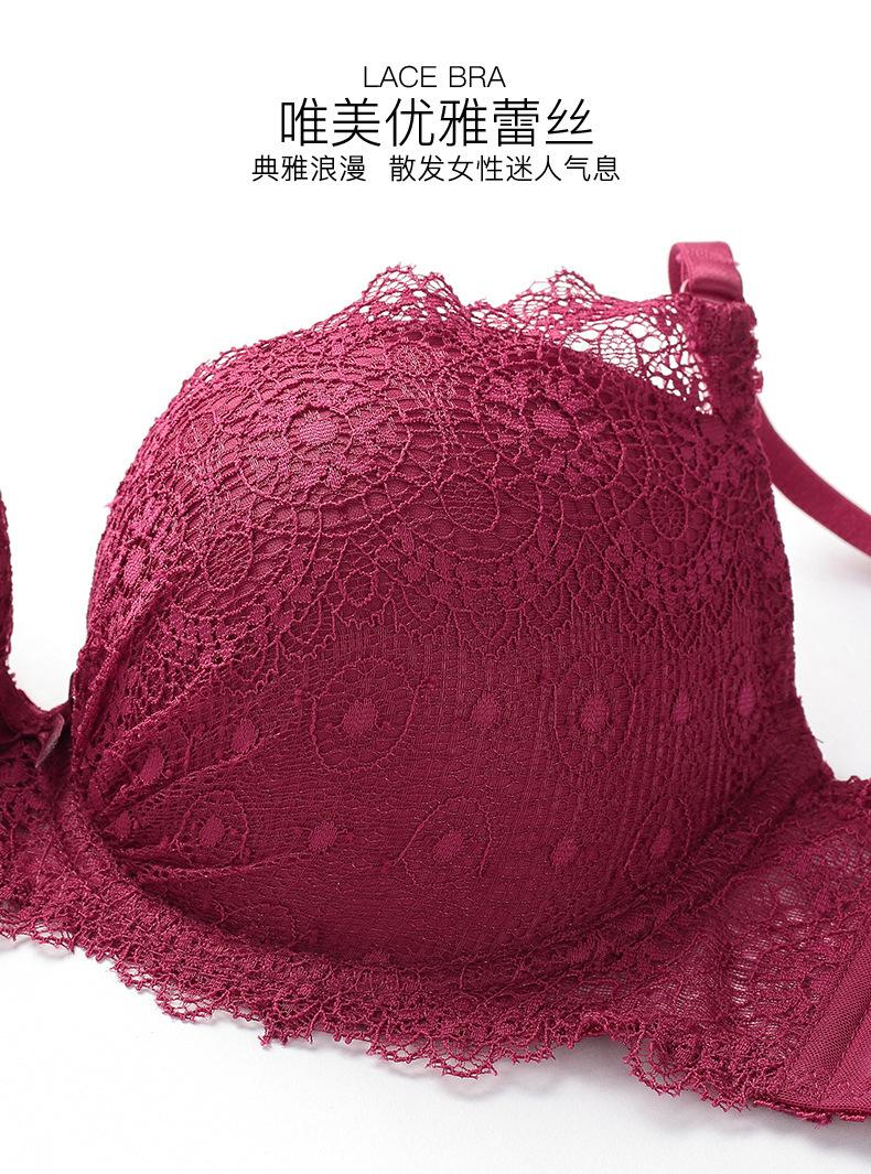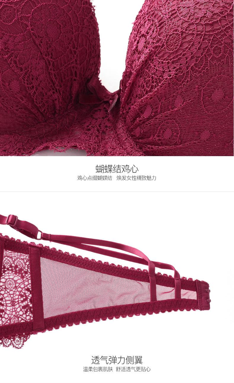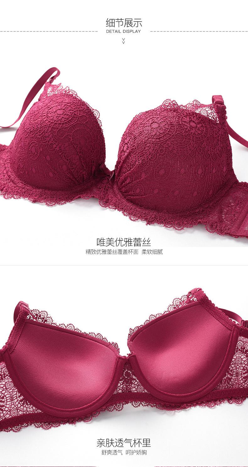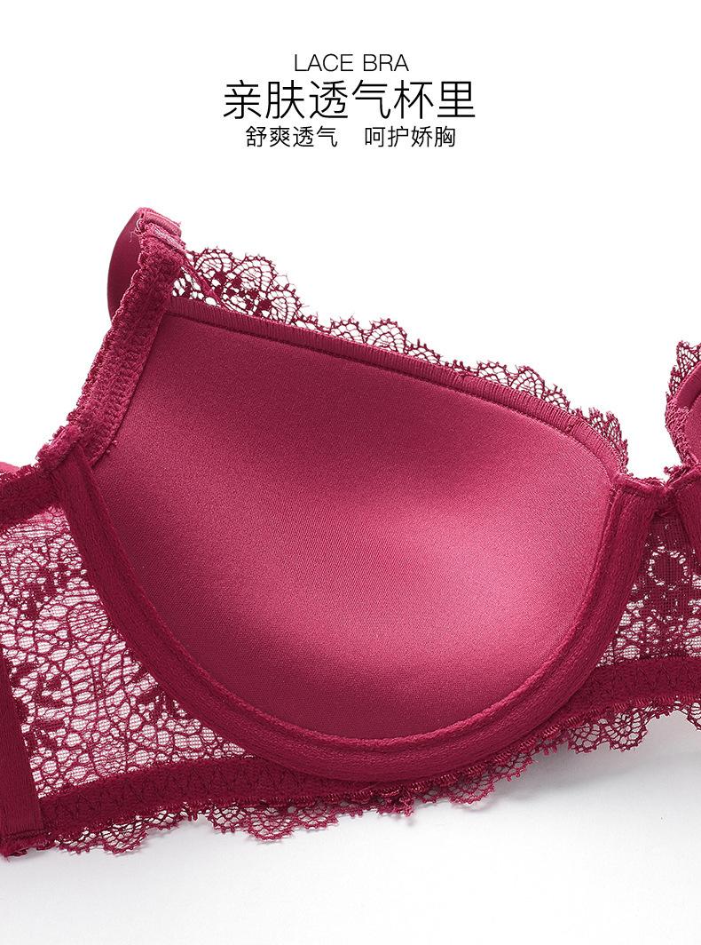 Lencería Sexy de Encaje Europea y Americana Profundo V Realzador de Pecho Pequeño Push-Up Ajustable con Soporte Lateral para Senos Set de Brasier