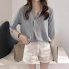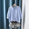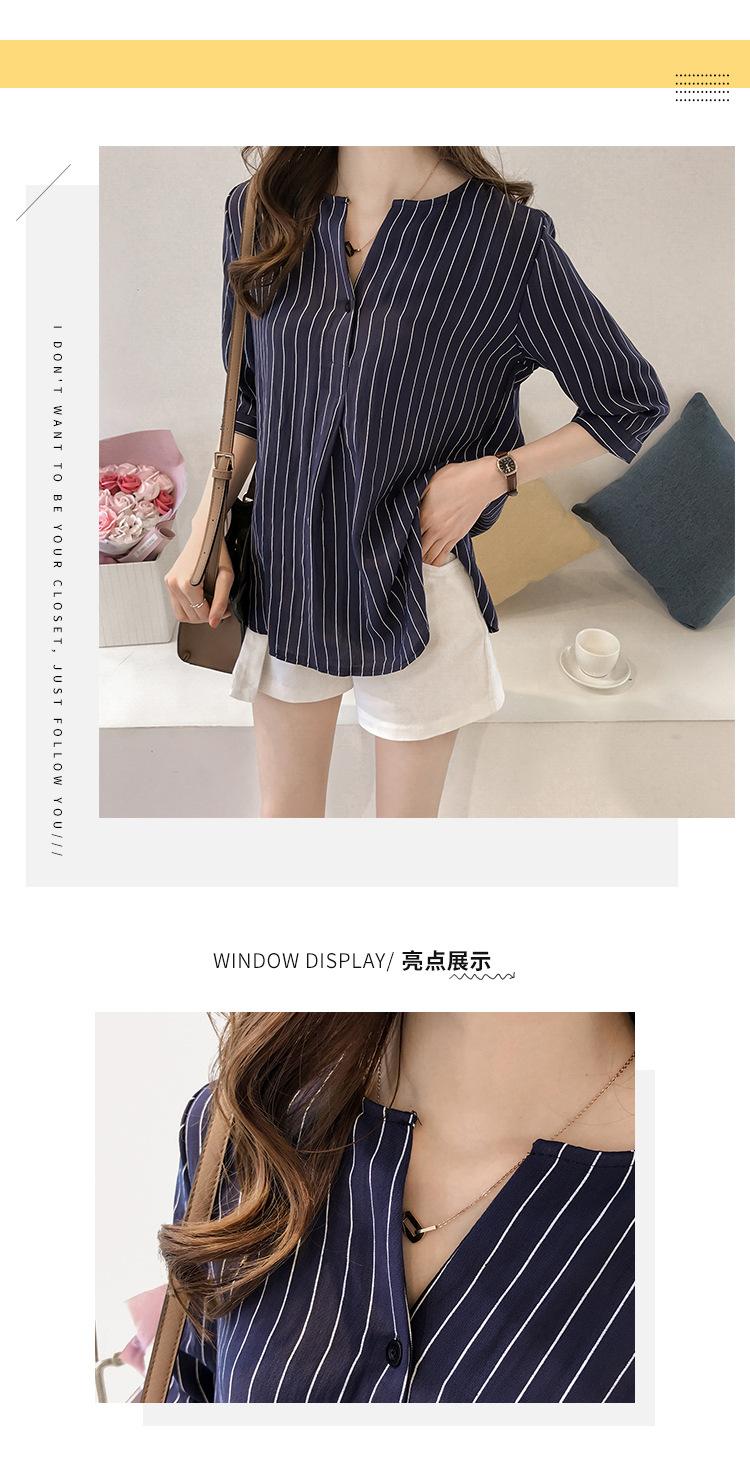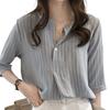 Verano 2025 Nueva Llegada Estilo Coreano Moda Talla Grande Cuello Redondo Camisa Rayada Top de Siete Mangas Camisa Casual Holgada para Mujer