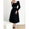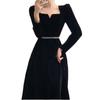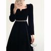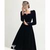 Vestido Negro de Terciopelo Estilo Hepburn Francés Otoño e Invierno 2025 Temperamento Retro Cuello Cuadrado Cintura Vestido Largo