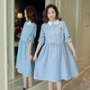 Maternidad 2022 Verano Nuevo Estilo Coreano Adelgazante Cuello de Muñeca Lazo Suelto Moda Talla Grande Vestido para Mujeres Embarazadas