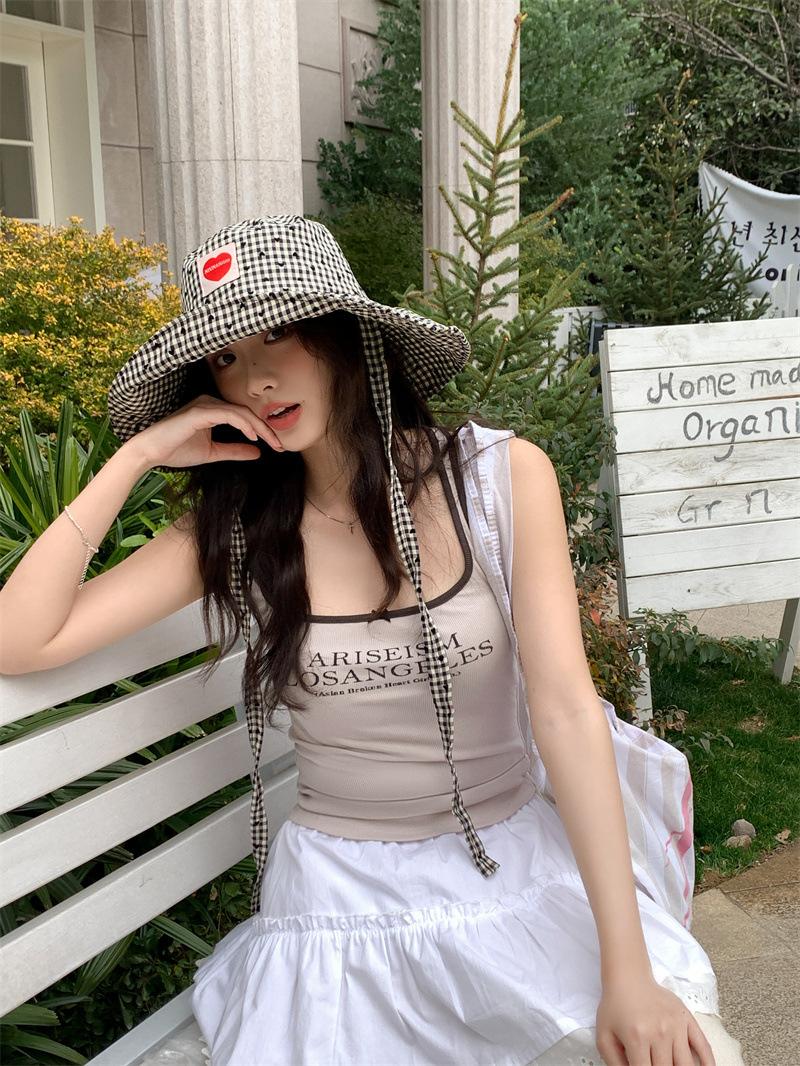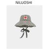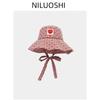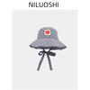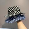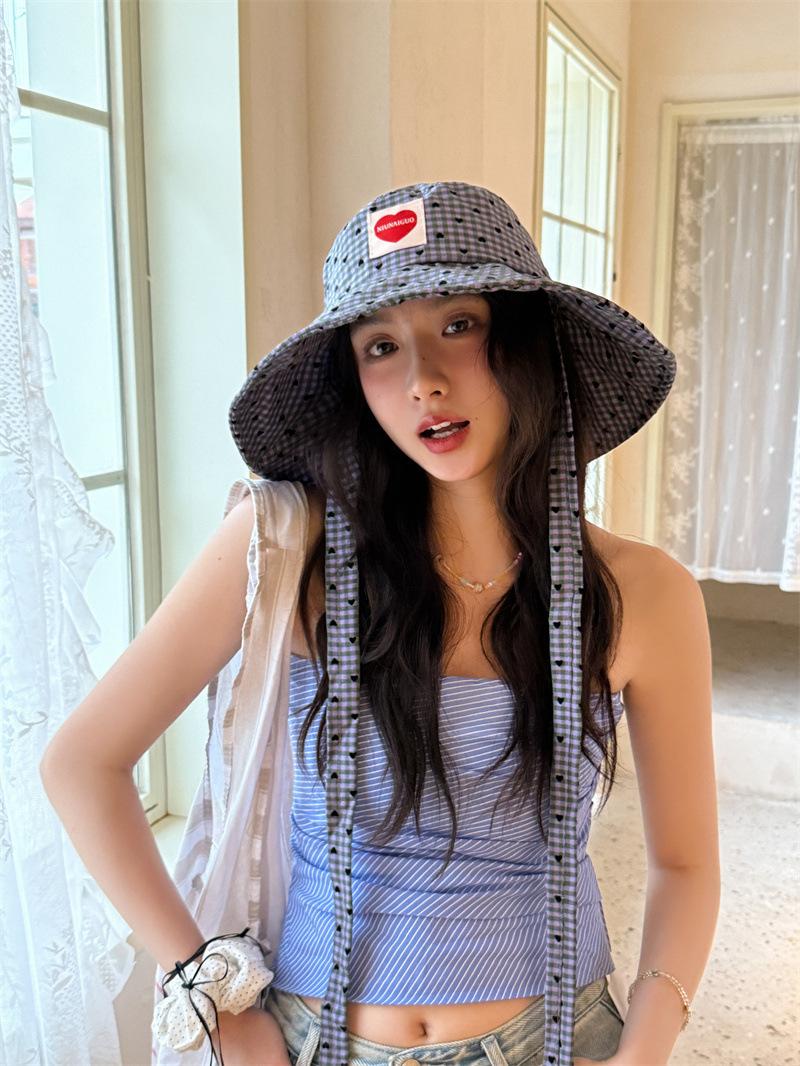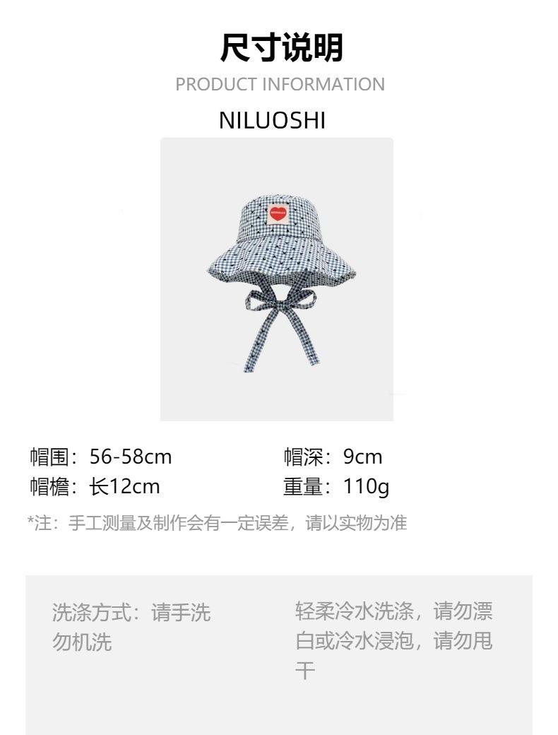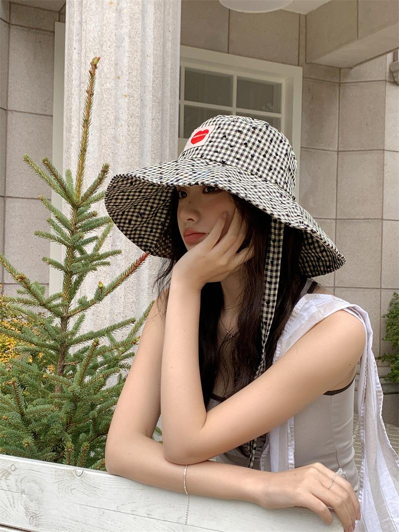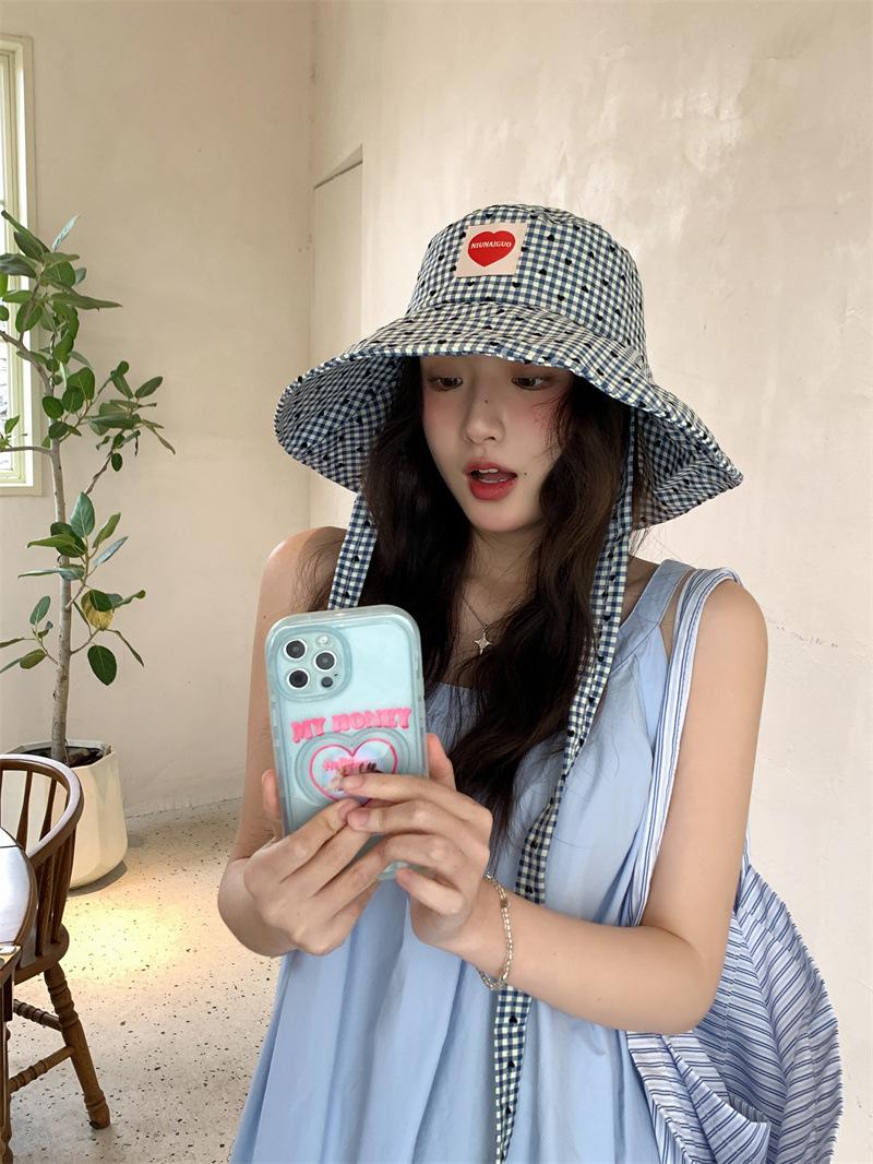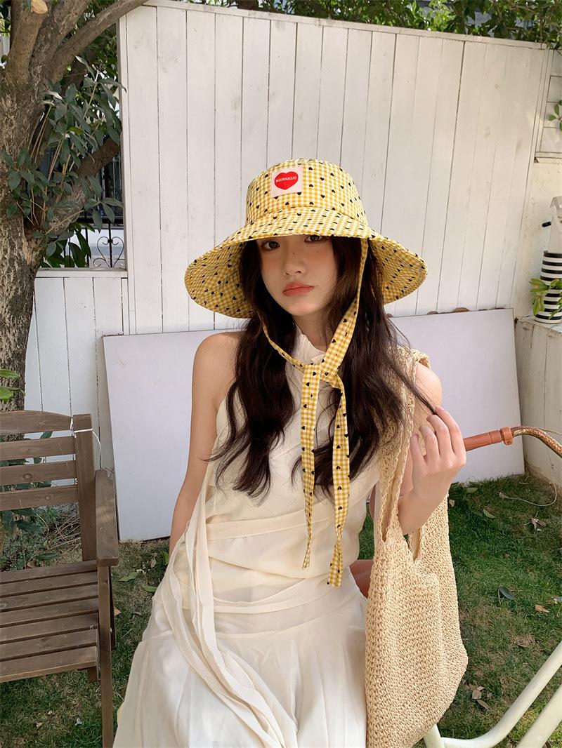 Sombrero de Pescador a Cuadros Dulce Corazón Estilo Japonés para Mujer, Primavera y Verano, Plegable, Ala Ancha, Parasol, Sombrero de Cubo Adelgazante de Rostro