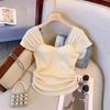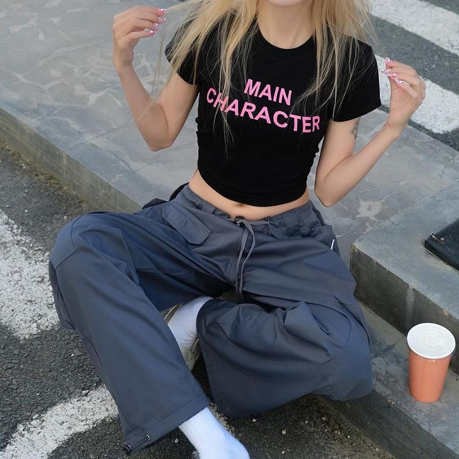 Moda Urbana Sexy Versátil Adelgazante Top Corto Estilo Europeo y Americano Dulce y Picante Estampado de Lazo Delgado Chica Hot