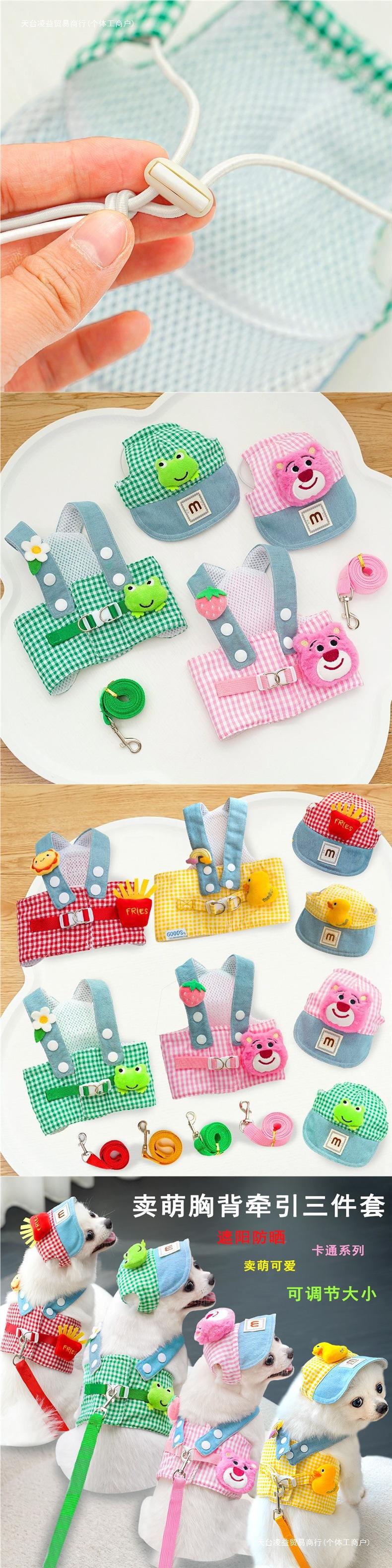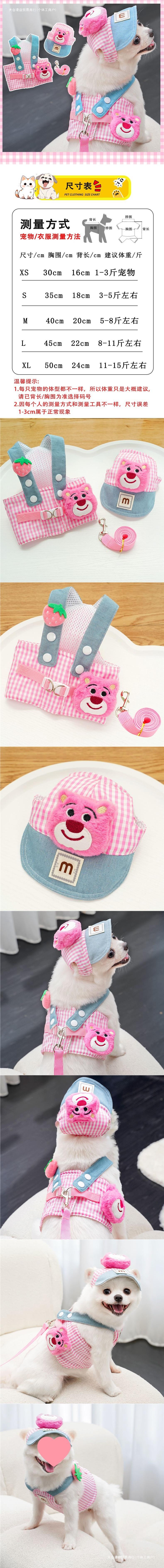 Oso Rosa Primavera Verano Otoño Mascota Correa de Pecho Cuerda de Tracción Traje Sombrero para el Sol Ropa para Gato Perro Suministros para Salir