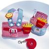 Three piece set pink bear pink plaid, 402b pink bear hat, 402c pink bear two-piece set, Three piece set of fre...